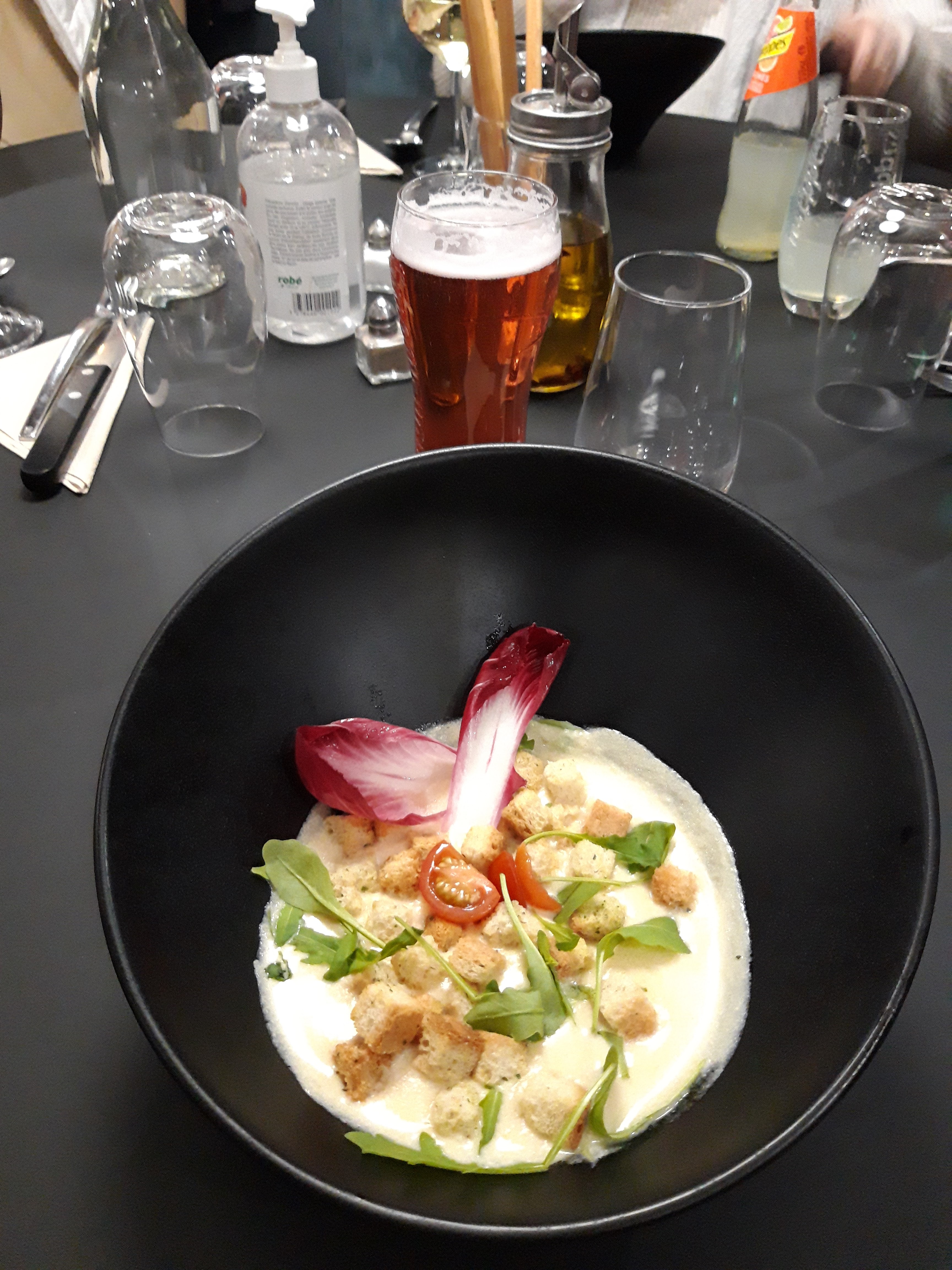 1 peu trop copieux, ce serait bien de diminuer les portions et prix, cadre très sympa, attention à l'accueil avec ces nouvelles règles sanitaires, heureusement sourire serveuse lors de la prise de commandes, avoir 2 tailles de pizza seraient un plus car excellentes...pas possible de prendre un dessert en plus, dommage...