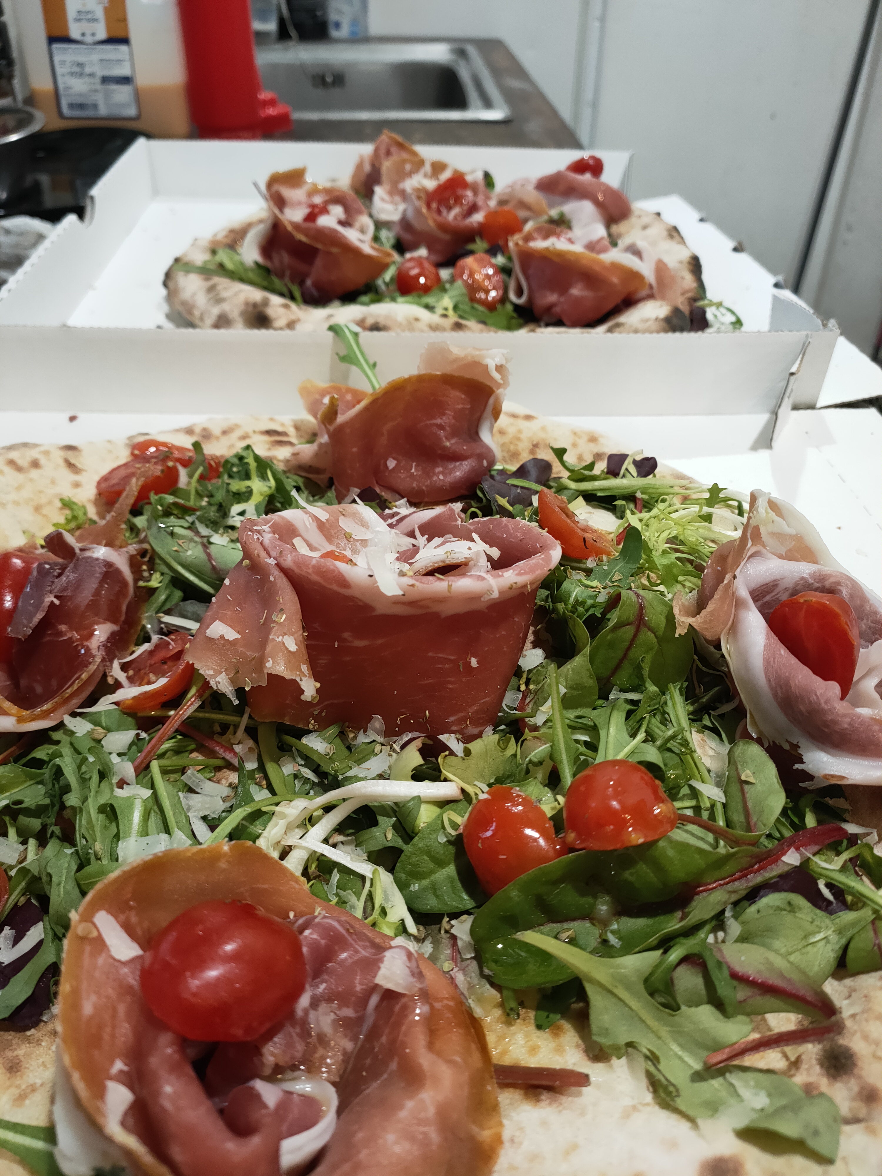 Nous avons commandé 2 pizza à emporter 1h a l'avance, nous avons attendu 20 min une fois arrivée sur place. Imaginez notre déception quand la pizzas buffala dégouline dans la boîte littéralement pleine d'eau. Quand à la speck e brie les morceaux de speck on clairement été juste mis en vrac sur la pizza. Je comprends que vous ayez du monde, mais tout le personnel et clairement dépasser par la situation et ça ce vois. Bref nous avons finalement mangé tacos c'était toujours mieux.
