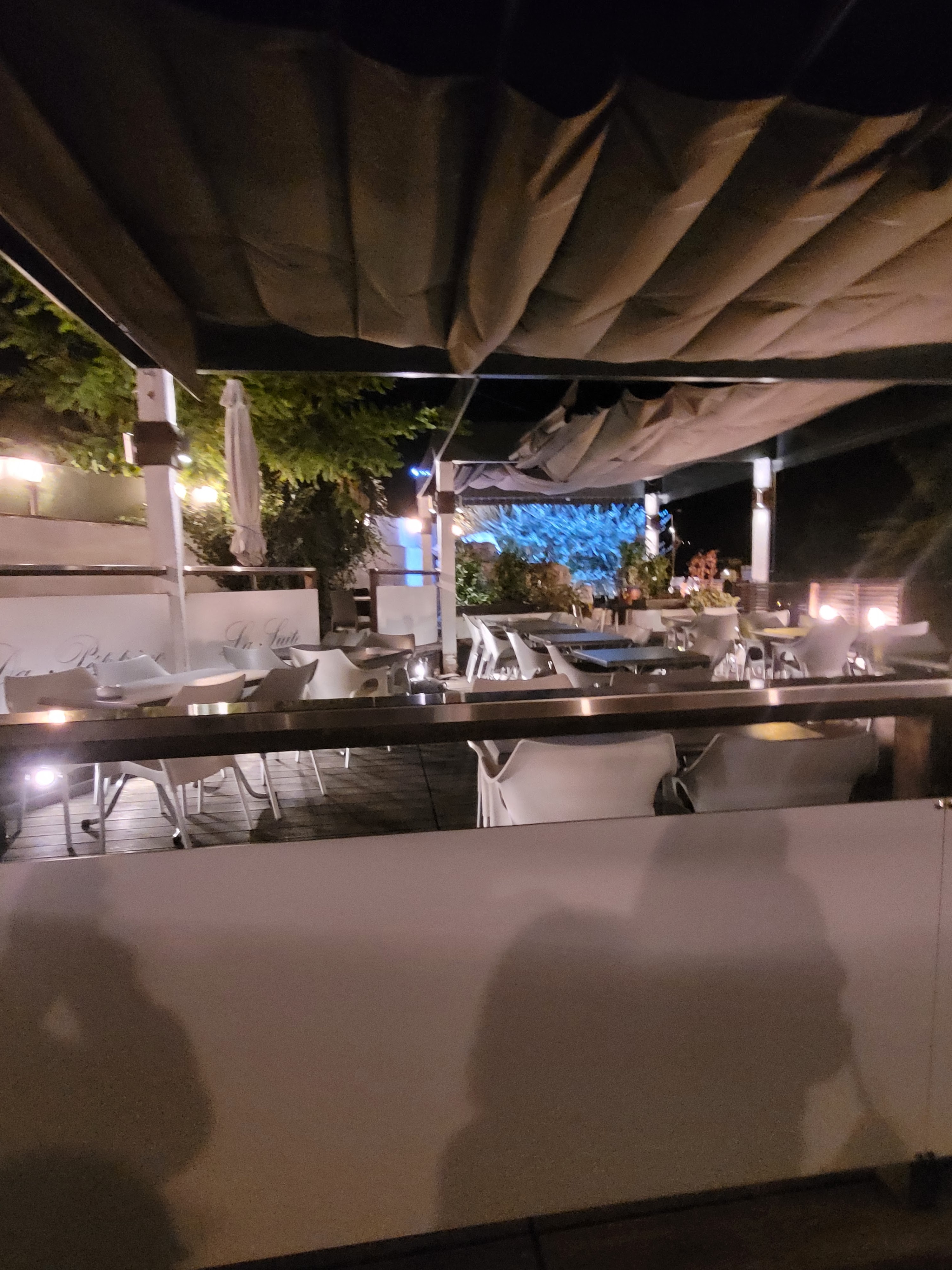 Le soir belle ambiance réalisée par l'éclairage et l'emplacement du resto. Bon repas bon moment passe.