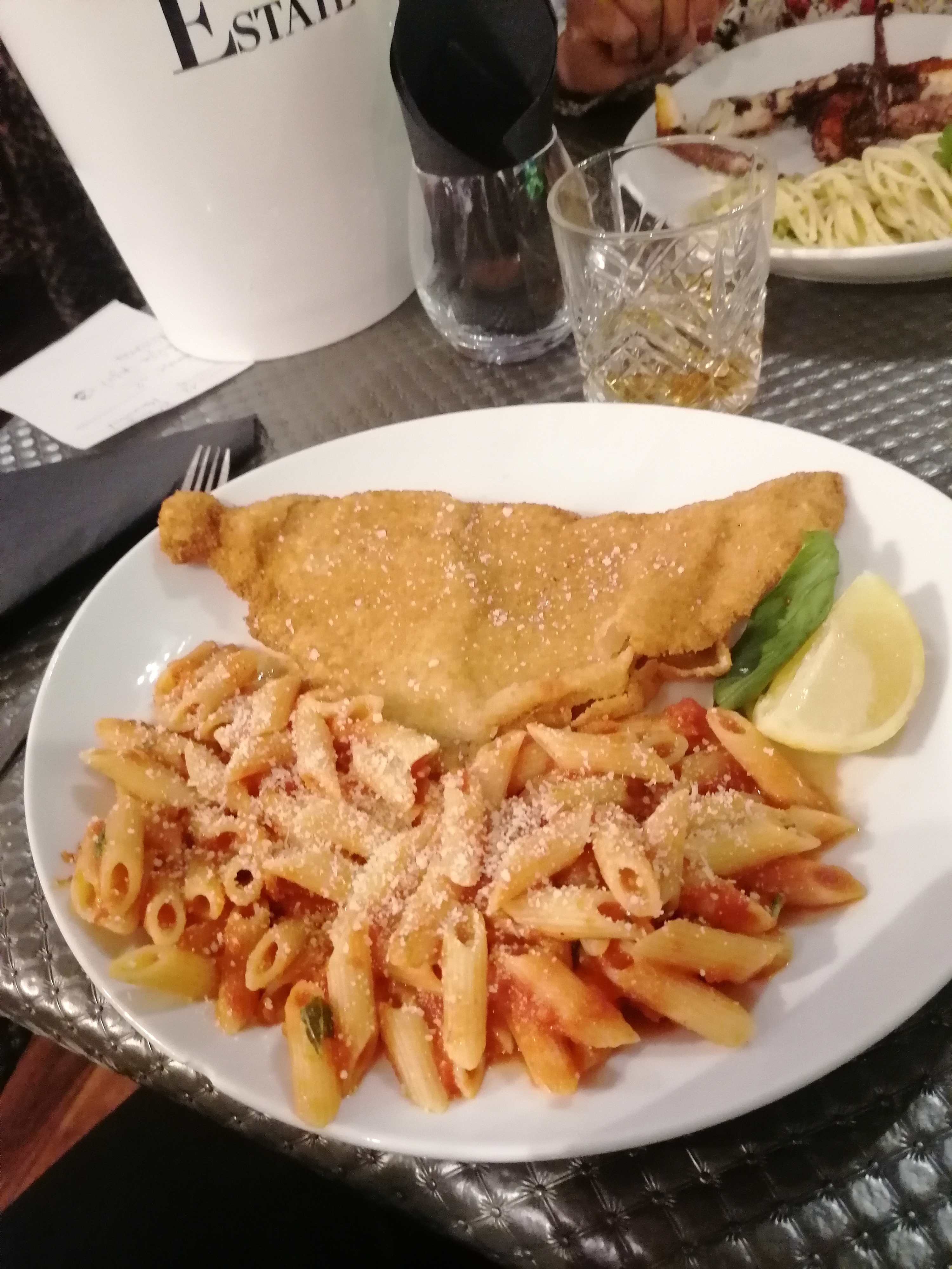 Cuisine italienne pas mauvaise mais rien d'exceptionnel et à 17 euros l'assiette de pâtes faudrait voir à respecter le client en ne le servant pas dans une vieille assiette toute ébréchée.
