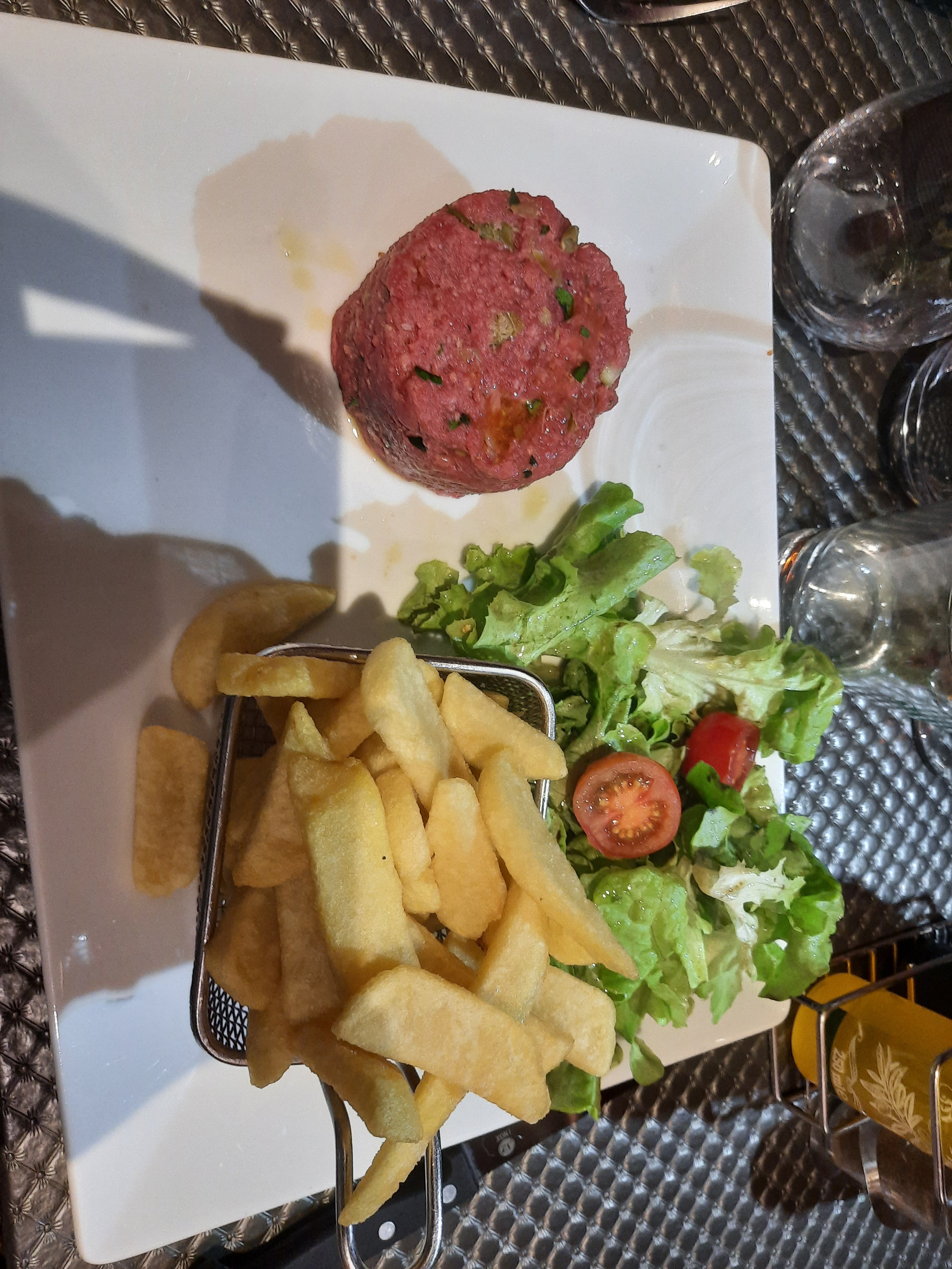 Nous avons été ce soir dans ce resto en invitant 5 personnes ... Service hyper rapide ... assiettes servies après 10 minutes ... au niveau des plats ... dans l’ensemble des plats ... les pâtes arrivent quasiment froides et nos invités sont déçus. En allant payer l’addition, voyant qu’on ne me demande pas si nous avions été satisfaits ... j’indique par moi même que je m’étonne que pour un restaurant qui affiche tant de prestance .. je m’interroge sur le fait qu’on me demande pas si on était satisfaits.. en précisant que D’ailleurs ce n était pas le cas ... en réponse .. la responsable m’encaisse une jolie somme d argent par carte bleue ... en me précisant si elle regrette que nous lui avons pas signalé le problème à réception des plats car elle aurait pris soin de nous réchauffer nos assiettes (sans aucun geste commercial et avec un certain dédain) ... bizarrement ... avec un minimum de sérieux ... est ce qu’un client va au restaurant pour manger un plat réchauffé ... mais de qui se moque t-on ???? Aussi Avez vous déjà vu un steak tartare cuit ??? Moi jamais mais dans ce restaurant ça existe ! Pour ces élément je ne recommande pas cet établissement ... c’est juste honteux !