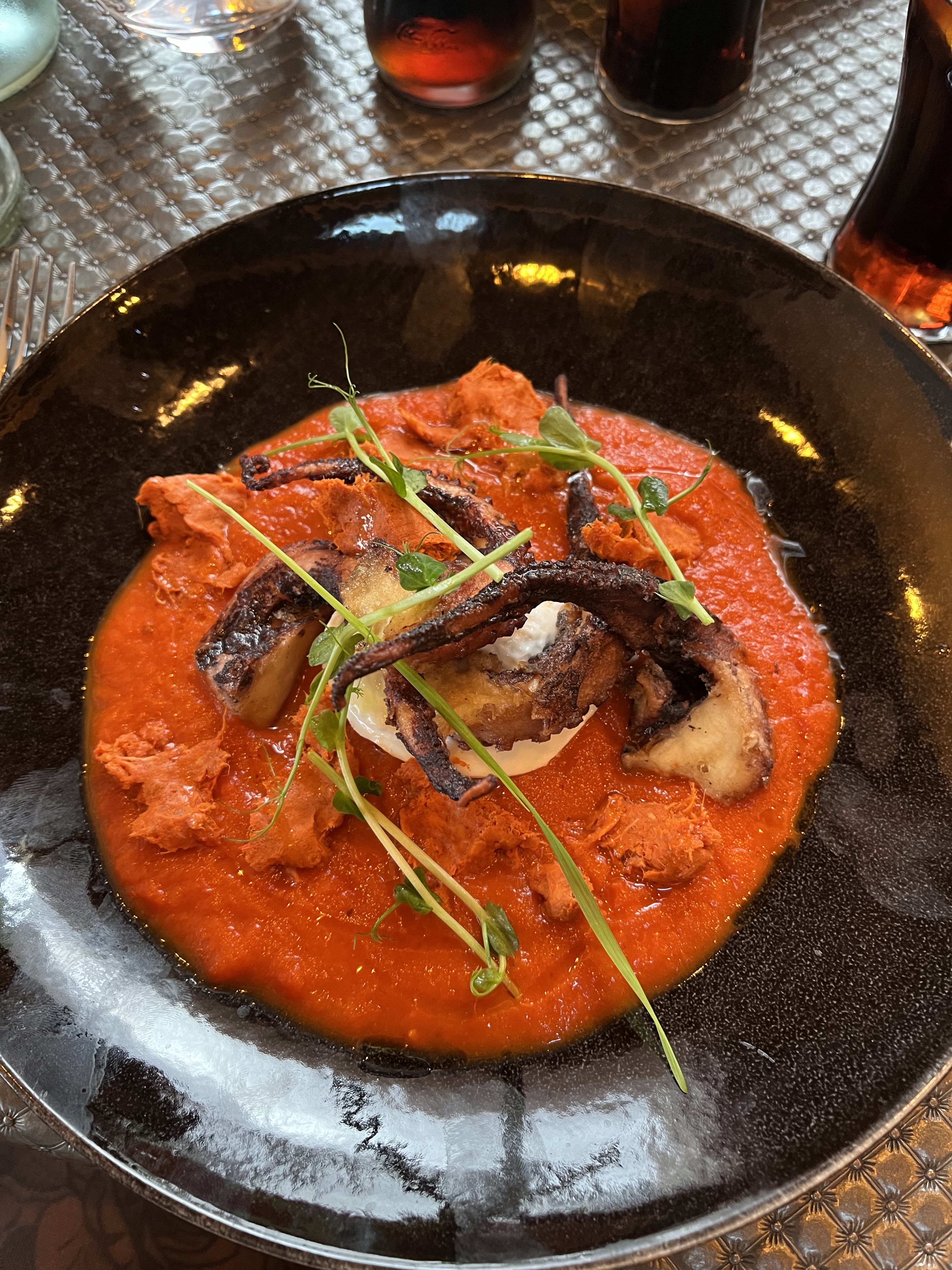 Franchement très déçue.le seul avantage est que nous ayons été pris le soir de la st Valentin suite à un désistement... Un poulpe trop salé. Moyennement chaud...le clou du spectacle est que la patronne se permet d exposer ses états d ame au téléphone à coté de nous sur le fait que de nombreuses personnes n étaient pas venues et donc à critiquer la clientèle ça ne se fait pas. La note hyper salée pour manger un italien très moyen Allez plutôt dans un gastronomique pour le prix.on y retournera plus.on déconseille
