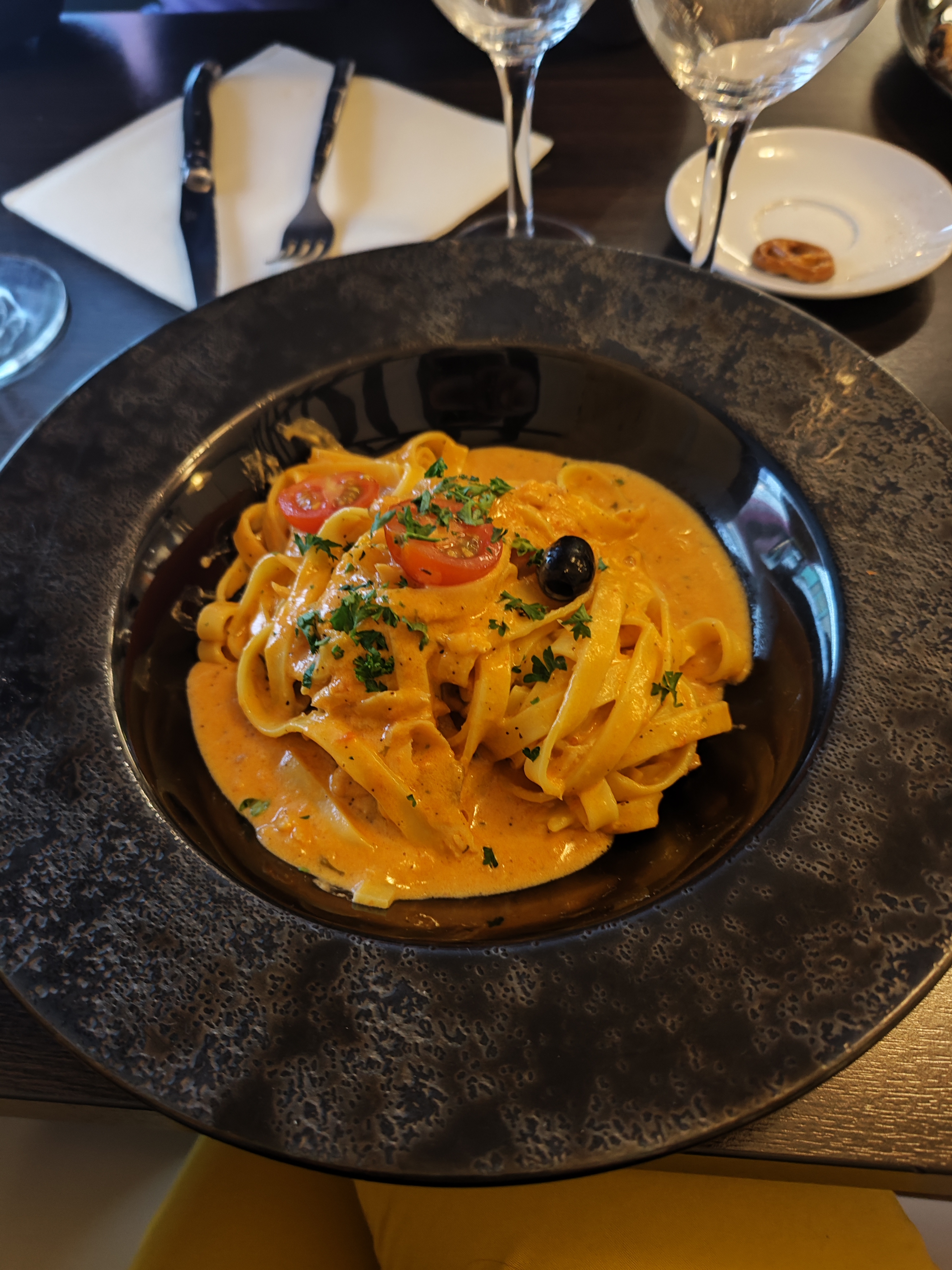 Venu dîner par hasard un dimanche dans ce restaurant Italien. Superbe déco, serveur fort sympathique, mais mauvais choix sur mes tagliatelles aux noix de st Jacques, par contre celles au saumon, rien à redire. Service rapide.
