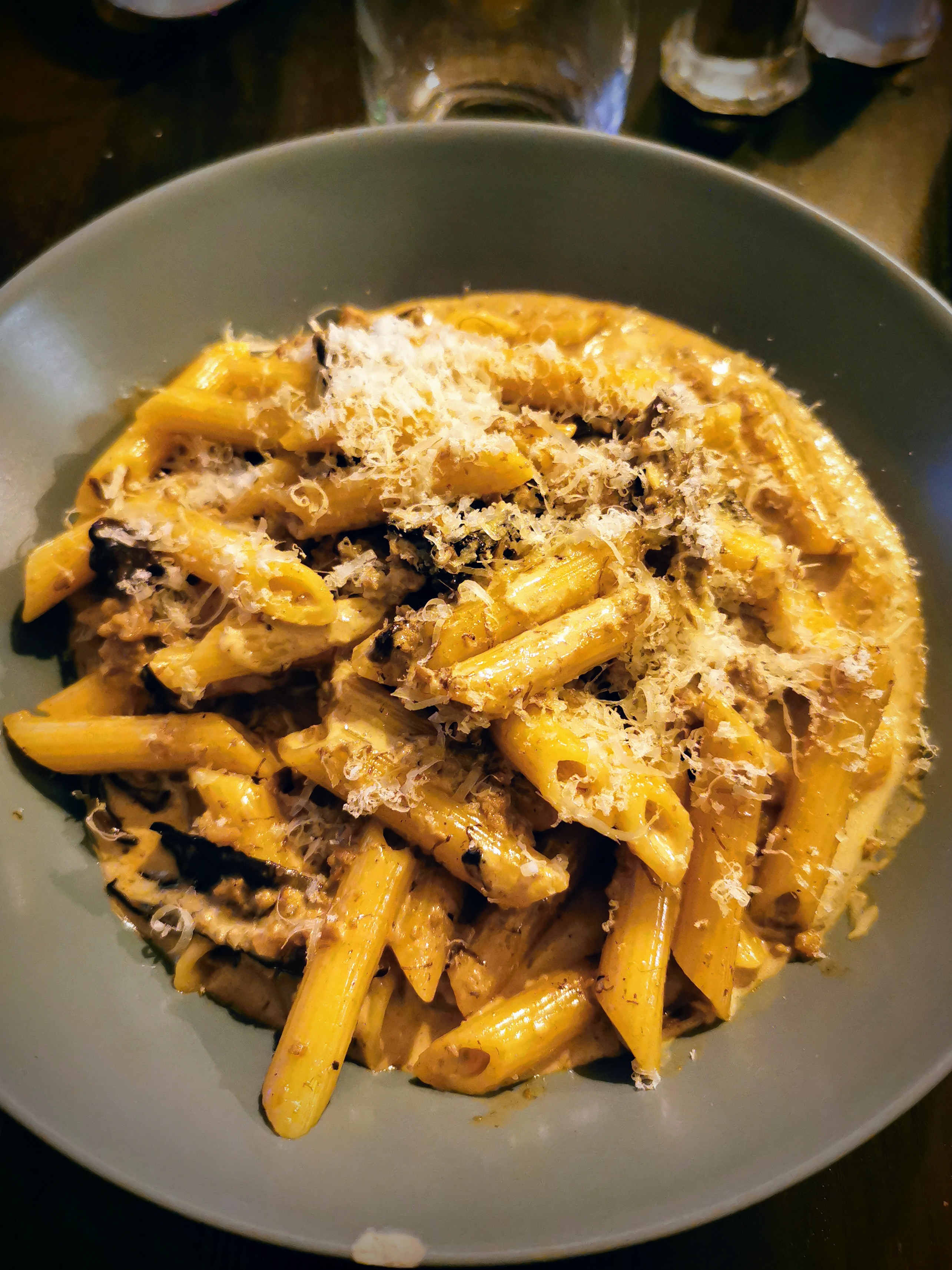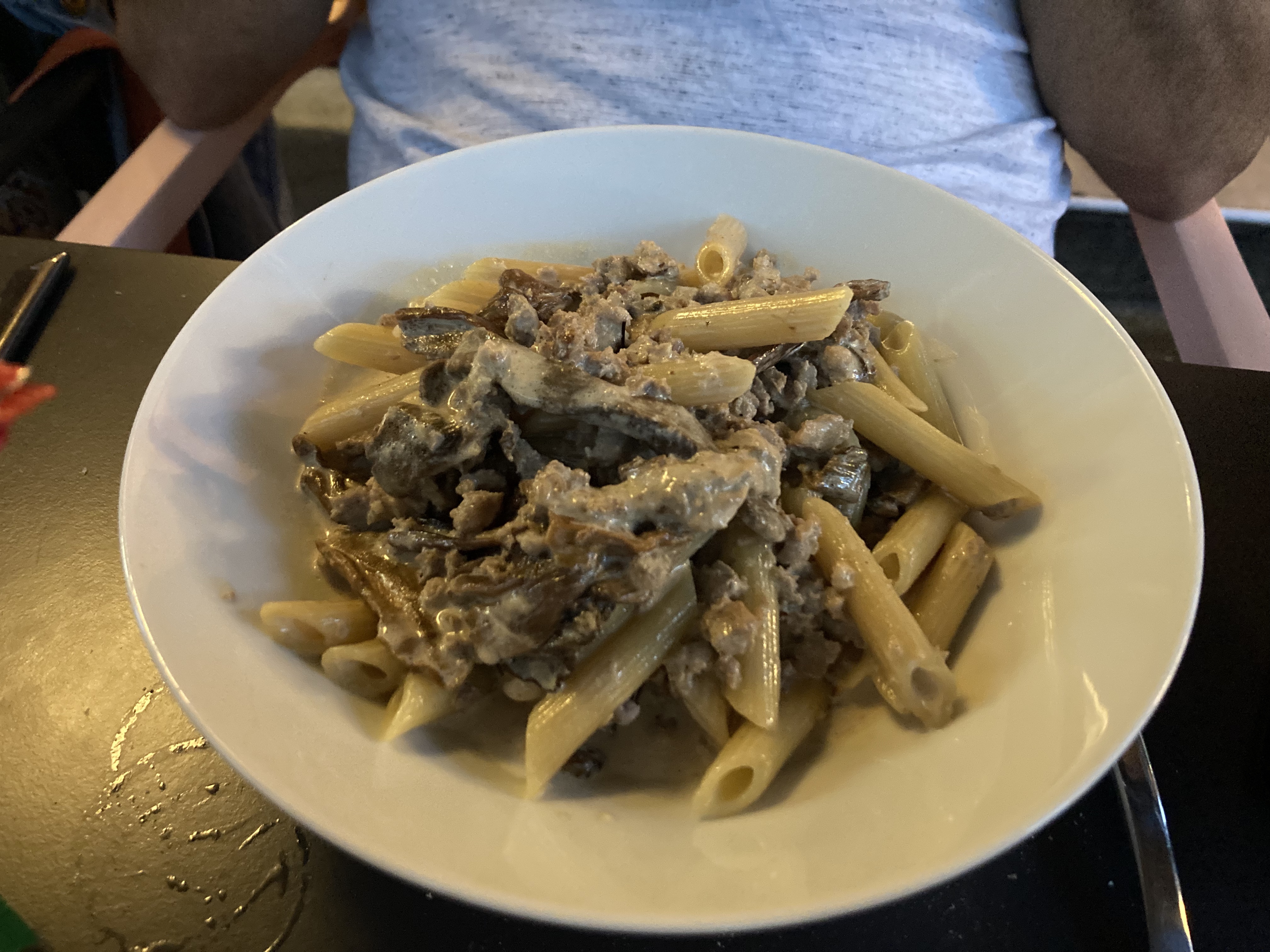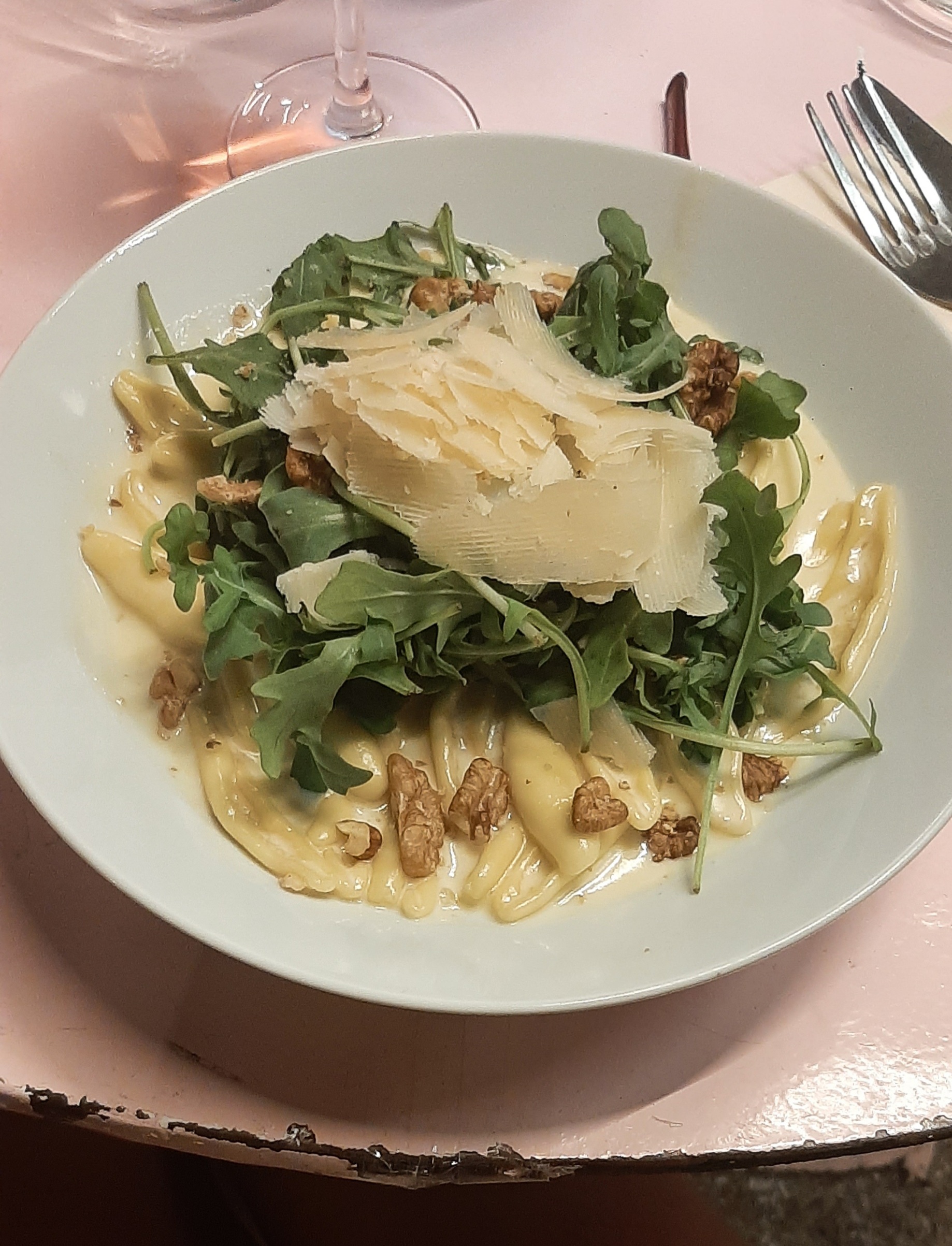 Pennes spécialité de la maison très bonne. Un peu déçu par le tiramisu. Trop de crème fraîche par rapport au mascarpone. Personnel au top et visite du patron. 👍