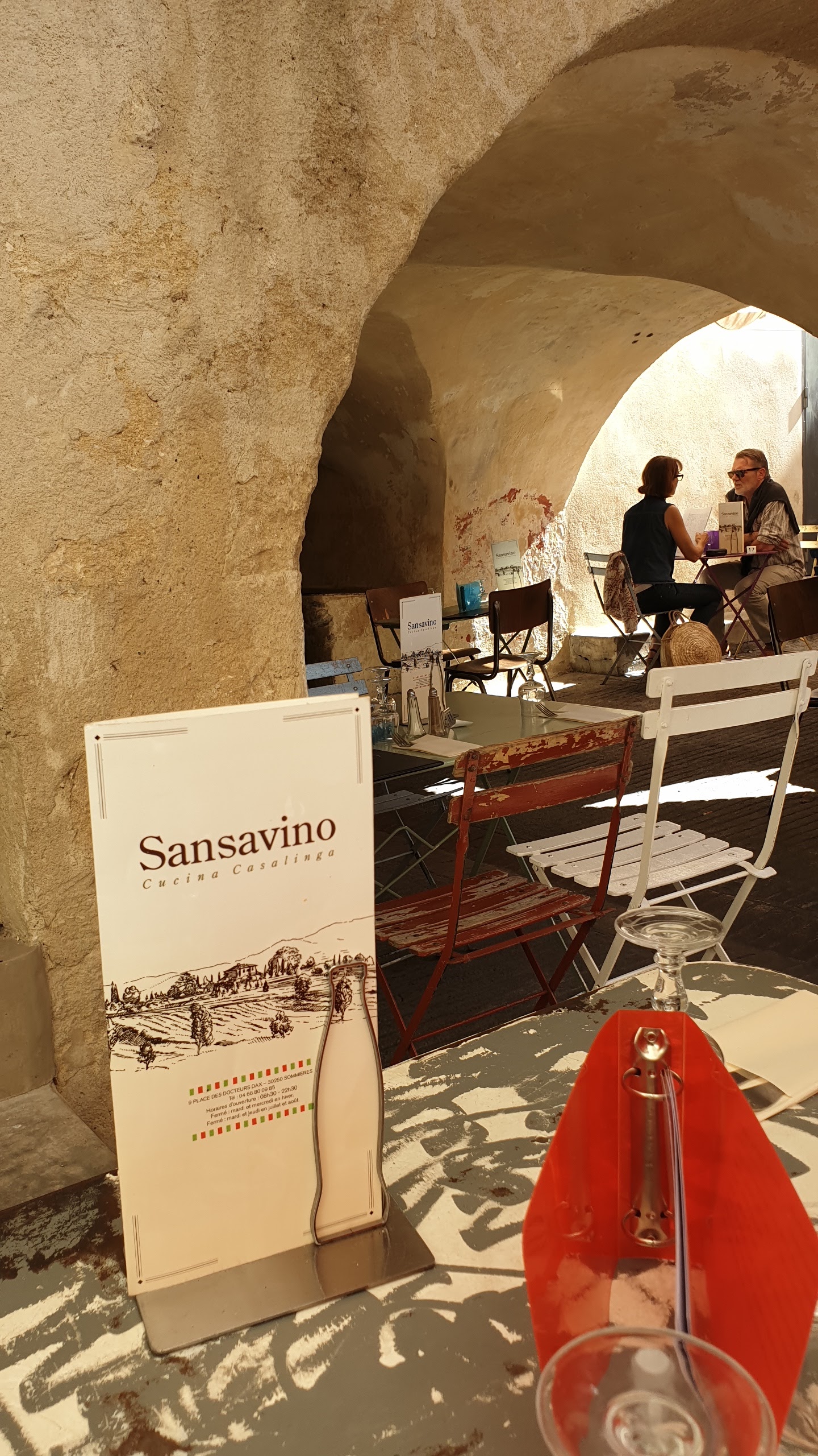 Nous avons passé 2 semaines de vacances du coté de Sommieres et nous y sommes allés 3 fois auSansavino tellement nous avons apprécié! La qualité des produits est excellente, les serveurs et l'accueil en général est au top. Bref, allez y les yeux fermés, ce restaurant est incontournable! Le seul hic, victime de son succès, il vous faudra réserver si vous voulez une table, surtout en saison ! Pensez aussi à l'épicerie ! Notamment la burrata, la mozza, le parmesan et les vins italiens homme un délice !