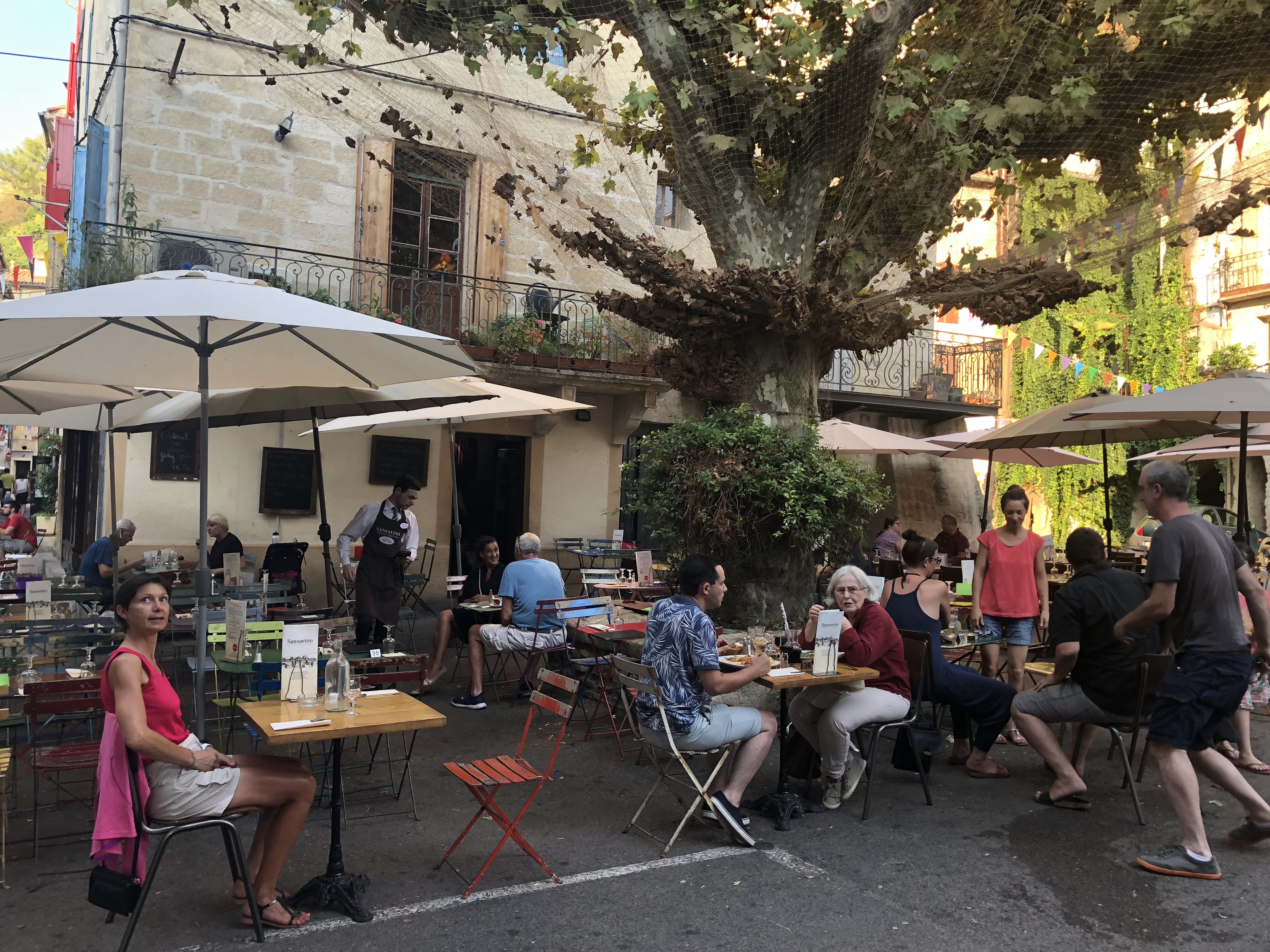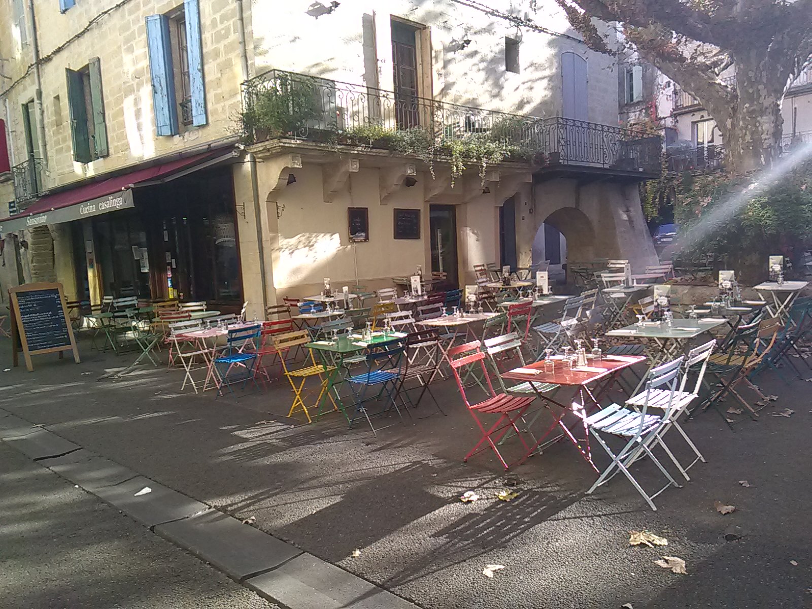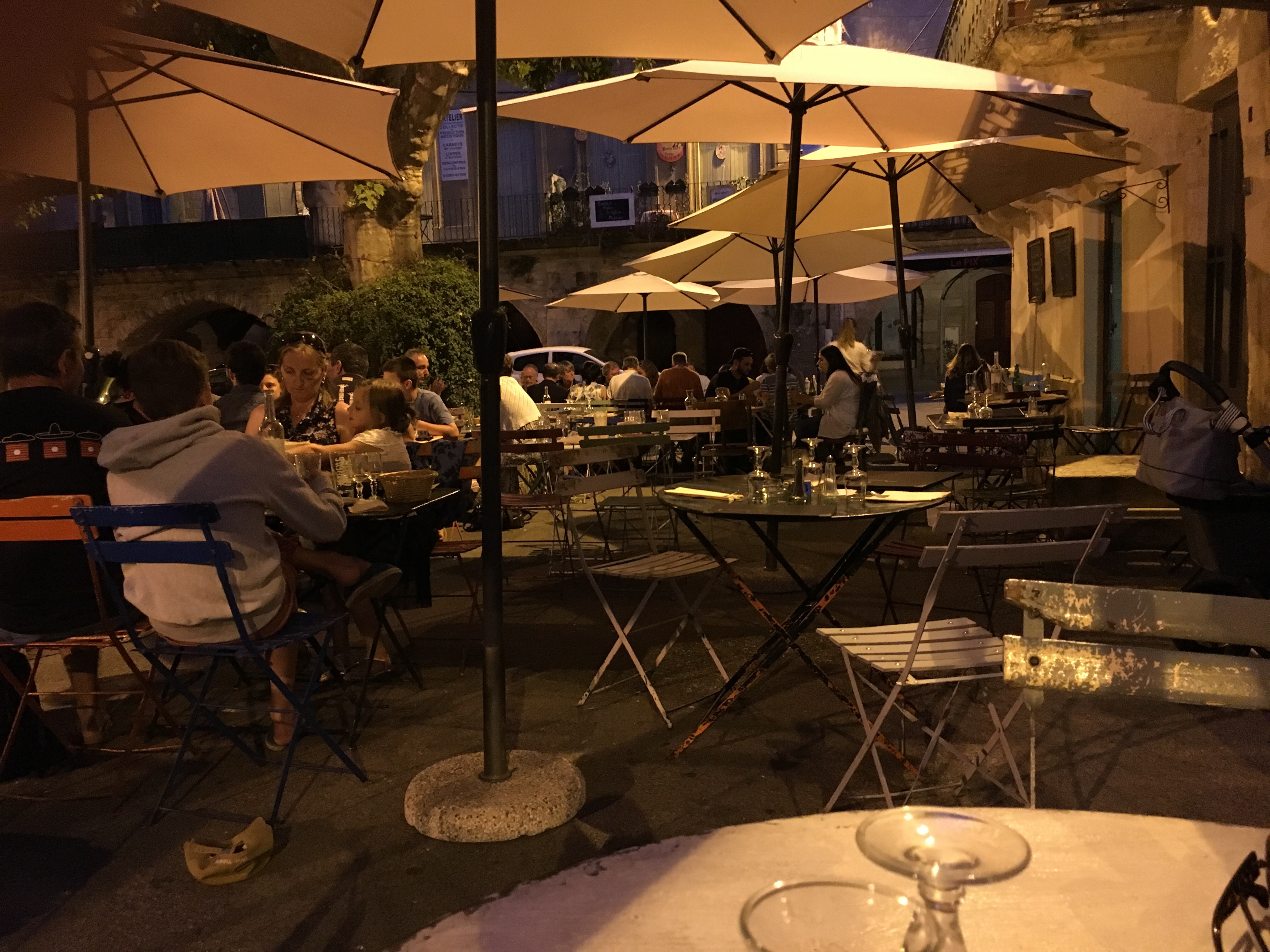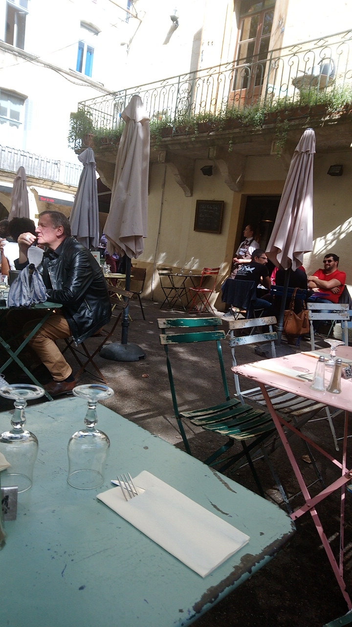 Nous avons déjeuné hier sur la place à l’heure du marché à Sommieres. Quel restaurant ! L’accueil, les serveuses, la cuisine, tout n’était que sourire ! Nous avons voyagé en Italie jusqu’au café servi avec un petit gâteau amaretti. Bref un moment d’enchantement ! Merci aux cuistots que l’on ne voit jamais et qui ont régalé nos papilles !