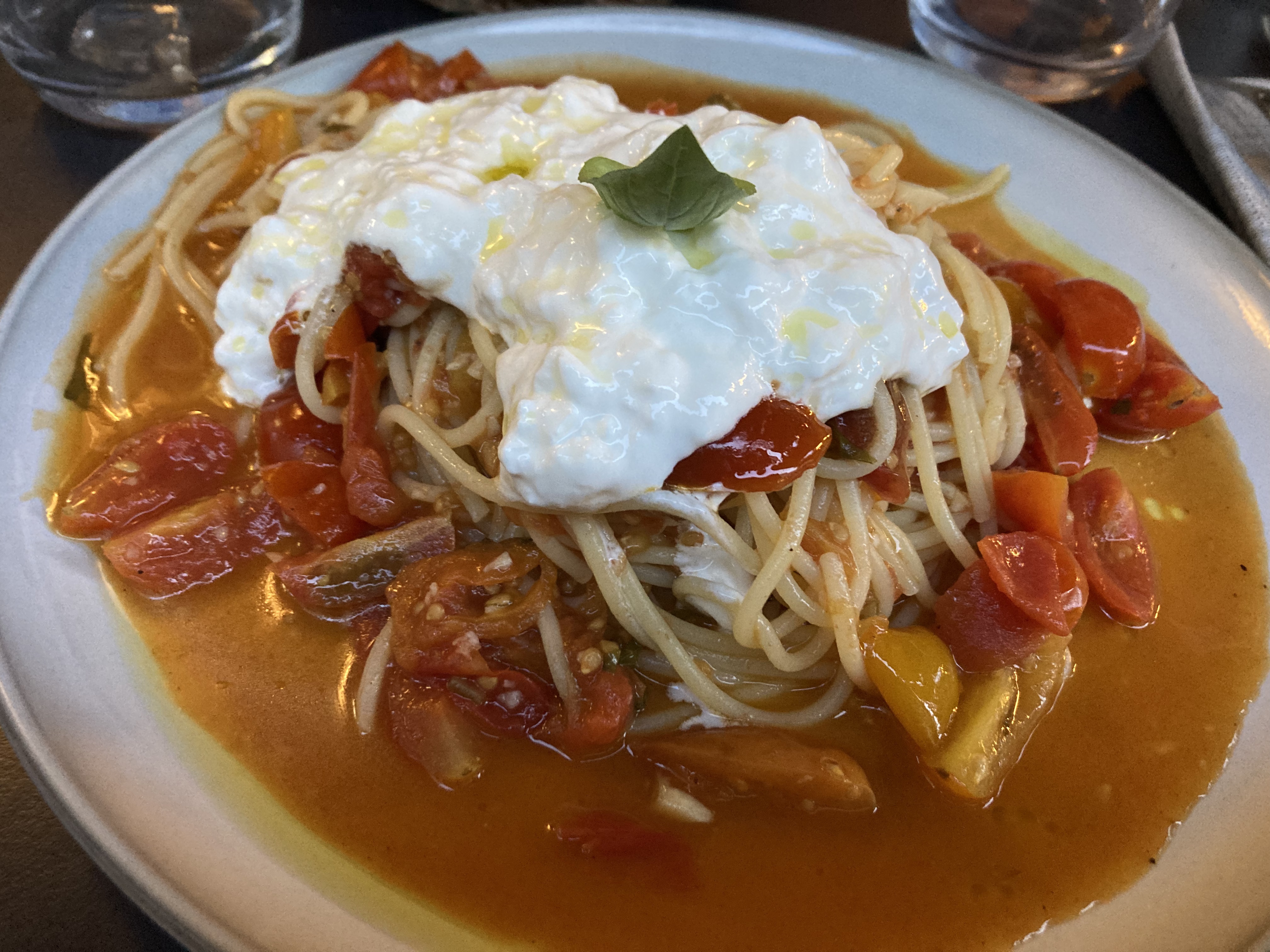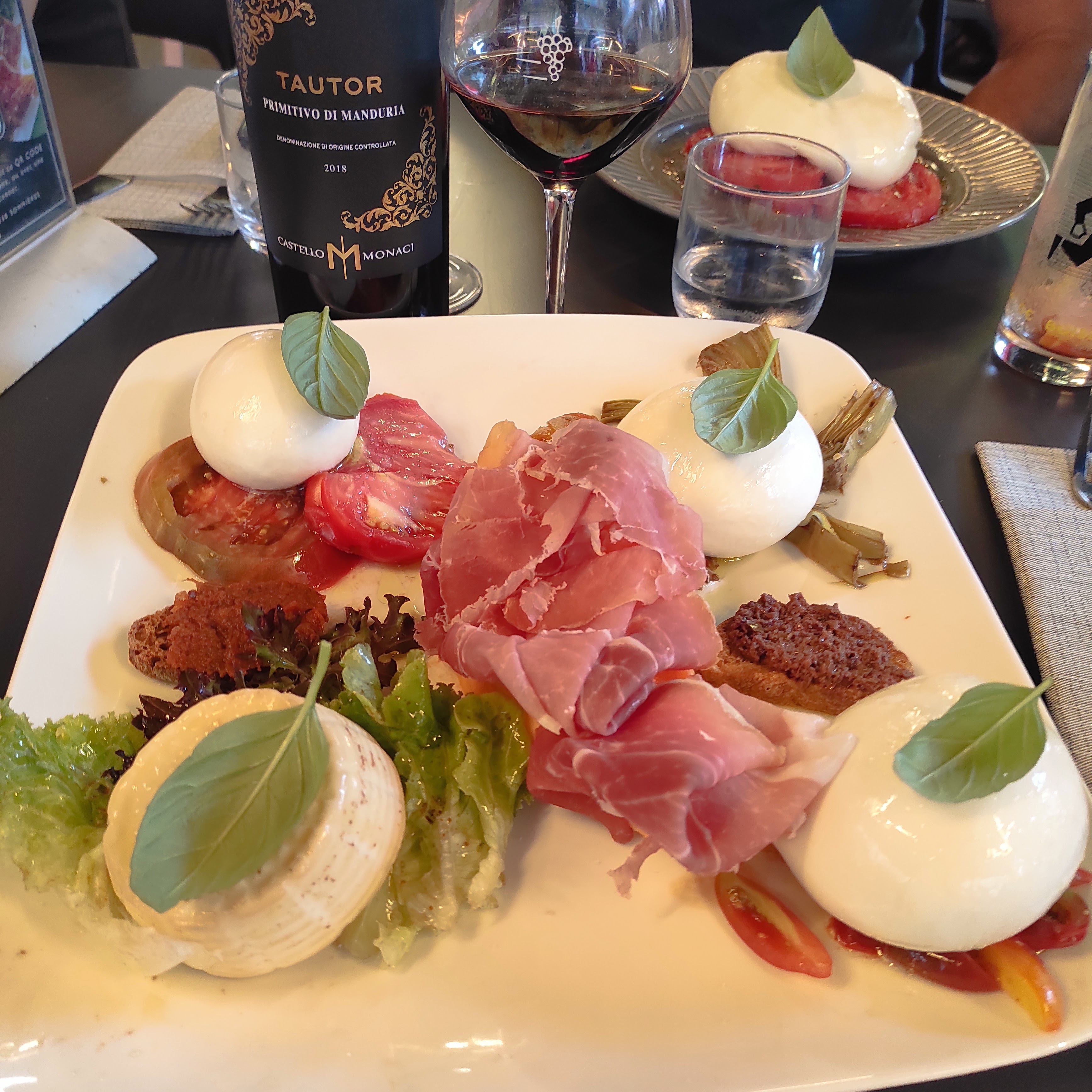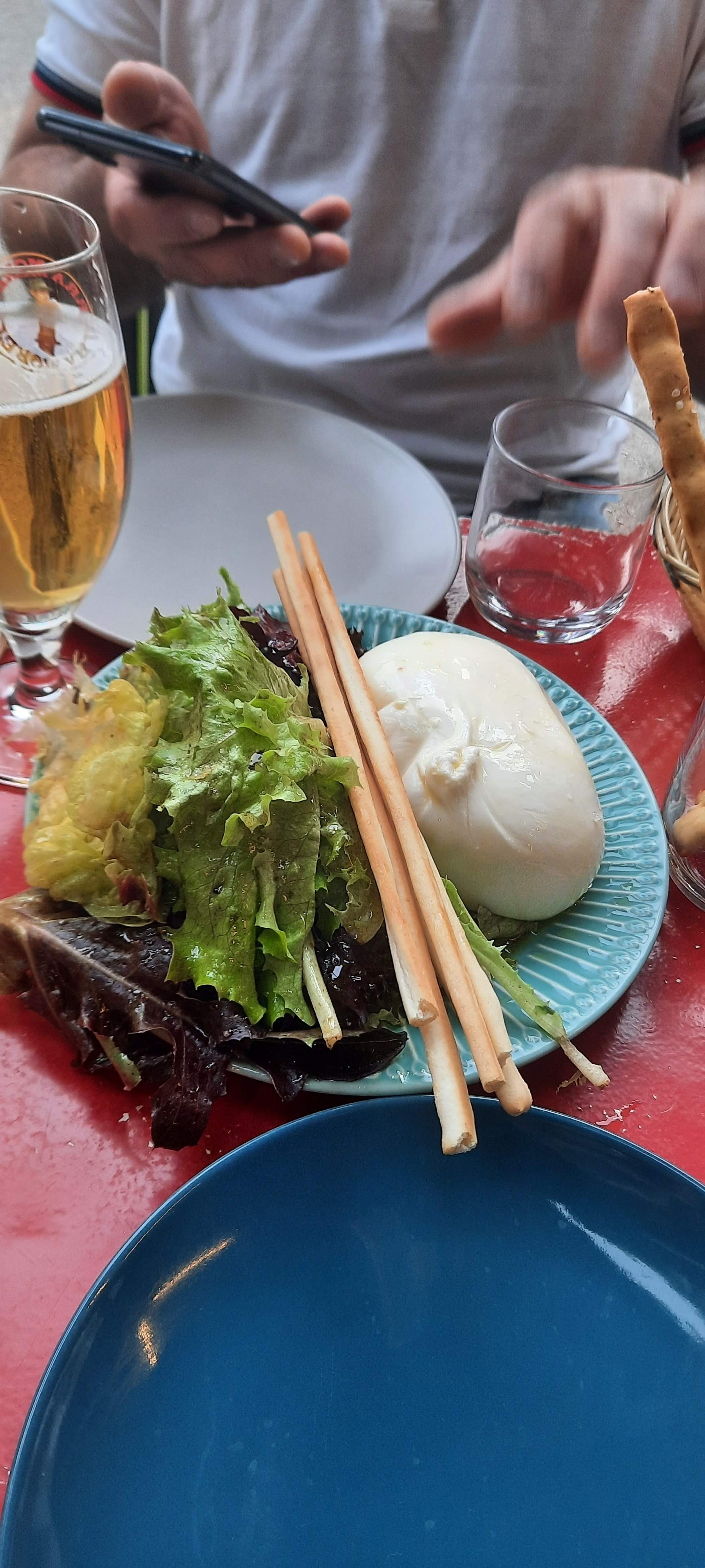 Restaurant sympa, nous avons pris une burrata avec ses 4 pauvre tranches de tomates, celle-ci était très bonnes. Le carpaccio était bon mais il y avait trop d'huile d'olive, ça baigné dedans et l'huile était amer... c'est dommage.