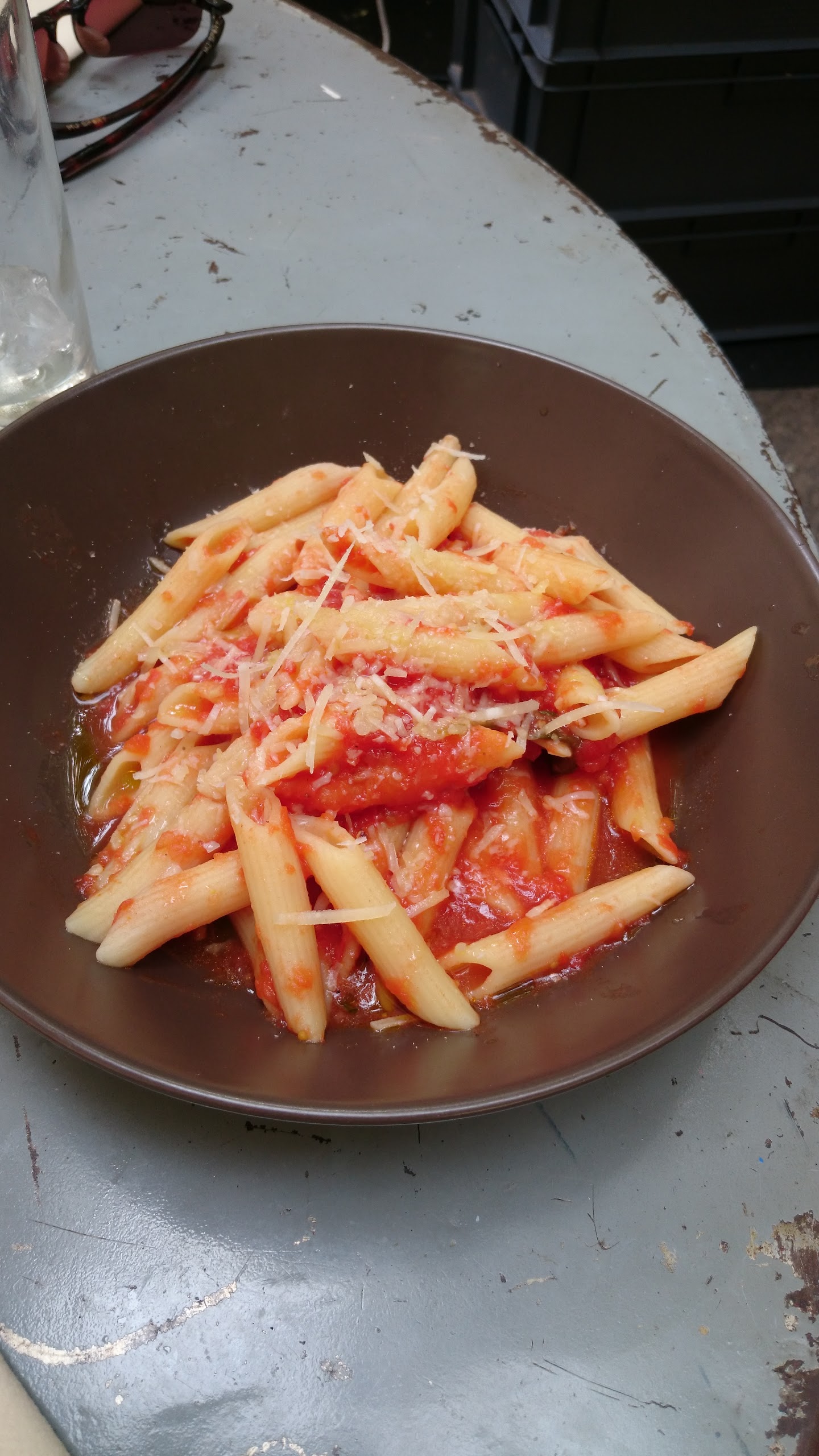 À notre arrivée, la terrasse était vide mais nous n’avons eu que très peu de choix pour s’installer pour deux personnes alors que quelques minutes plus tard, les personnes suivantes pouvaient s’installer à leur choix. Par la suite, nous avons choisi des pâtes aux truffes, assez chères pour des spaghettis. Les pâtes nous ont été servies tièdes, la truffe avait un goût de carton.