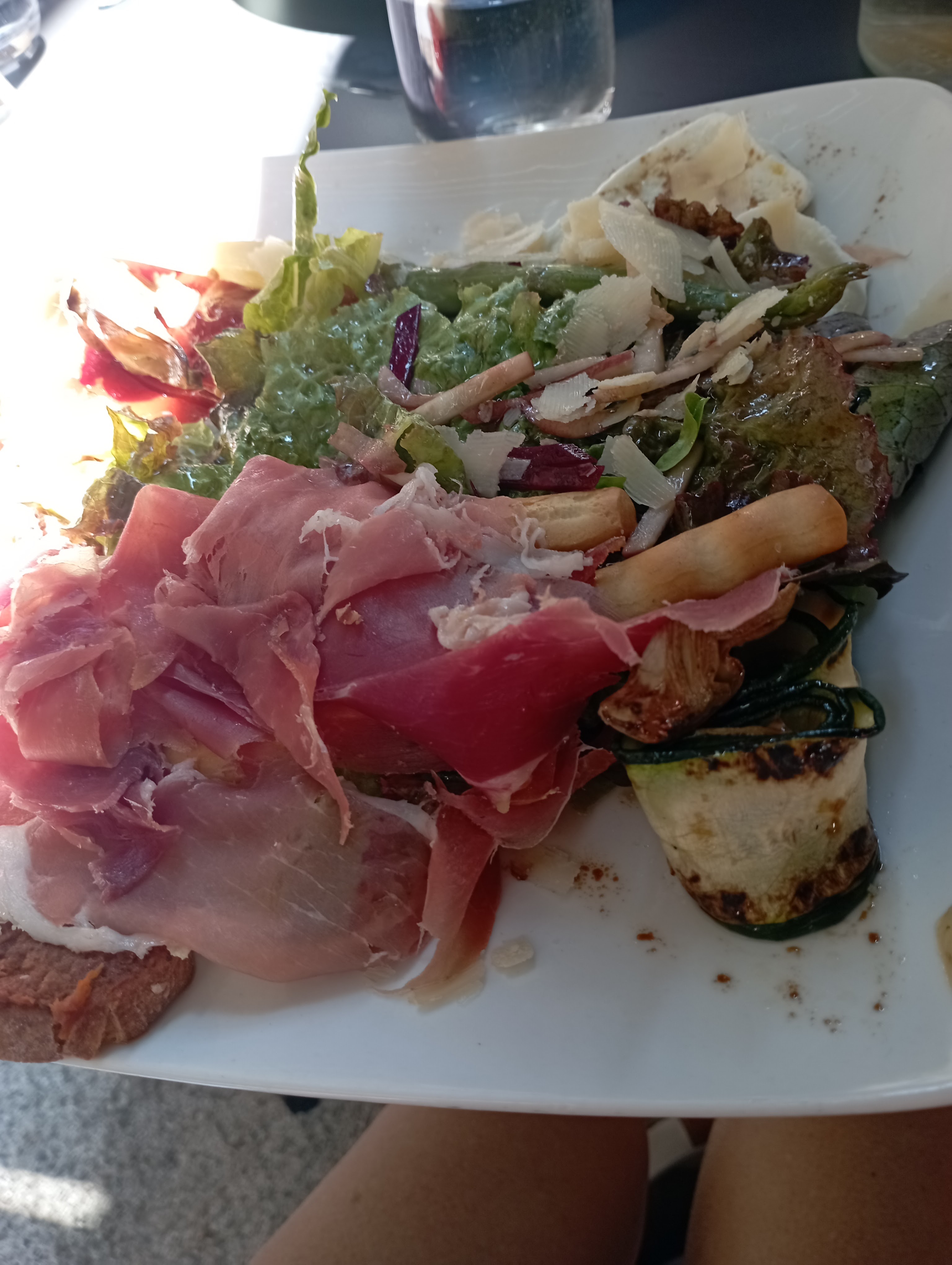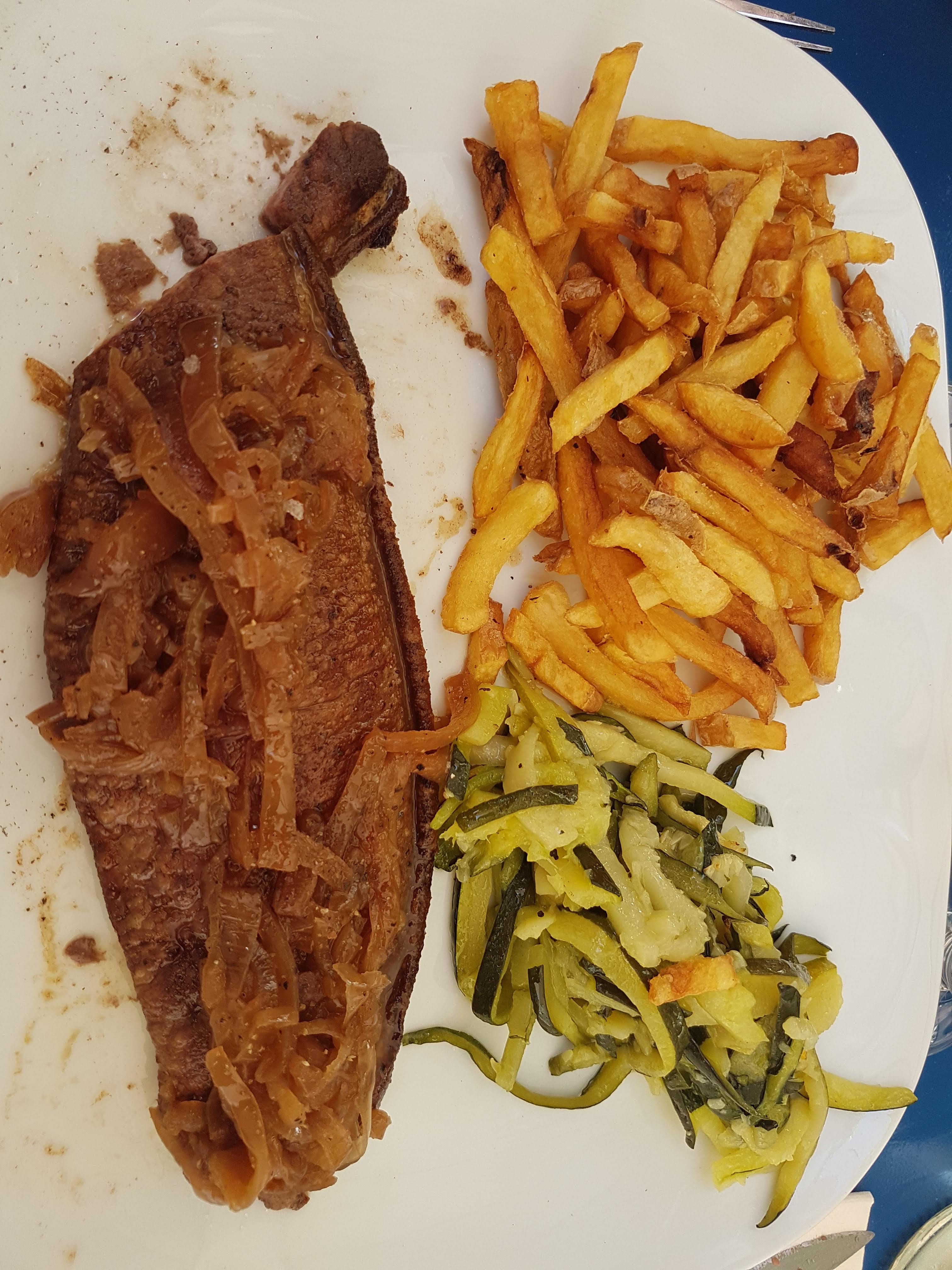 Prise de la commande inattentive, j'ai précisé que je ne mangeais pas de jambon, l'assiette est arrivée avec jambon, j'ai précisé que je n'en voulais pas, l'assiette est repartie, revenue ...avec un gros morceau de gras sur le melon, renvoyée en cuisine et tout le reste était fadasse ! Nous devions avoir un parasol, nous l'avons attendu...tout le repas. Nous étions mal assis- Bref, à fuir !