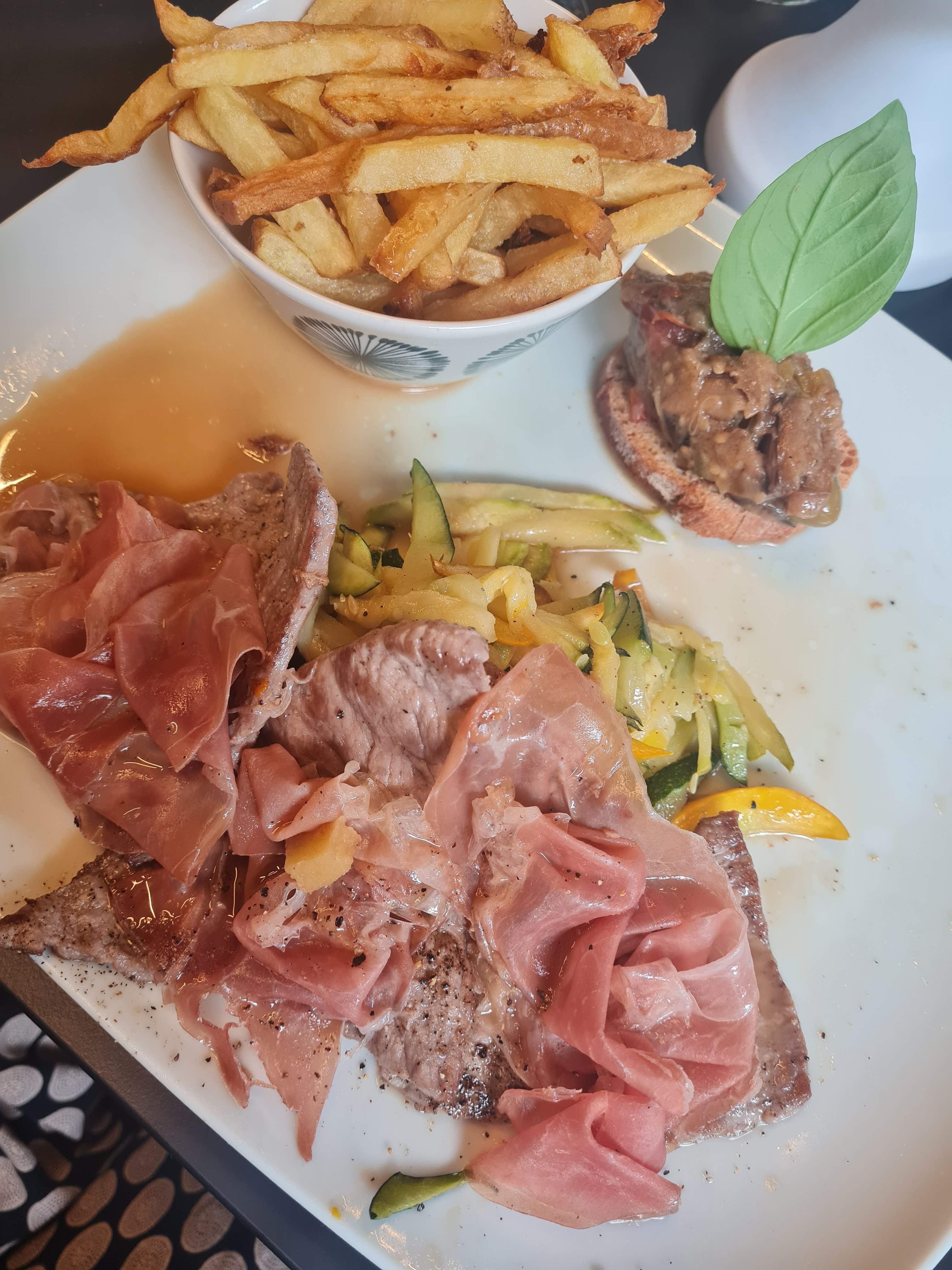 Incroyable meilleur qu en Italie ! Jambon de parme coupe à la trancheuse à jambon et surtout une carte des plus typiques . On se sent en confiance avec accueil et service remarquable Je recommande vivement
