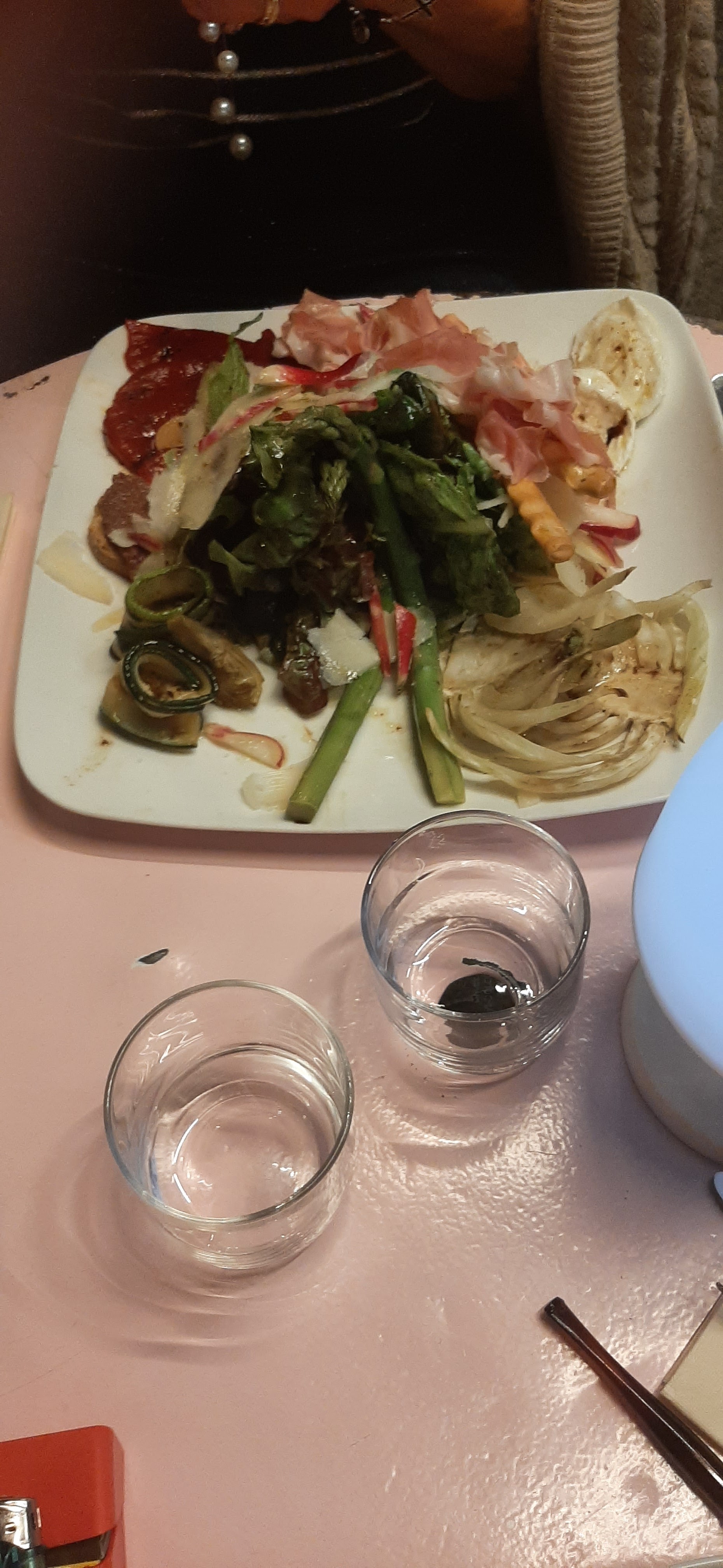 Très bon antipasti, le choix du boulanger est un grand succès car le pain est très très bon, ce n'est pas souvent qu'il y en a d'aussi bon au restaurant. Carte orale, pas très bien si on veut connaître les tarifs, sûrement une technique de vente.
