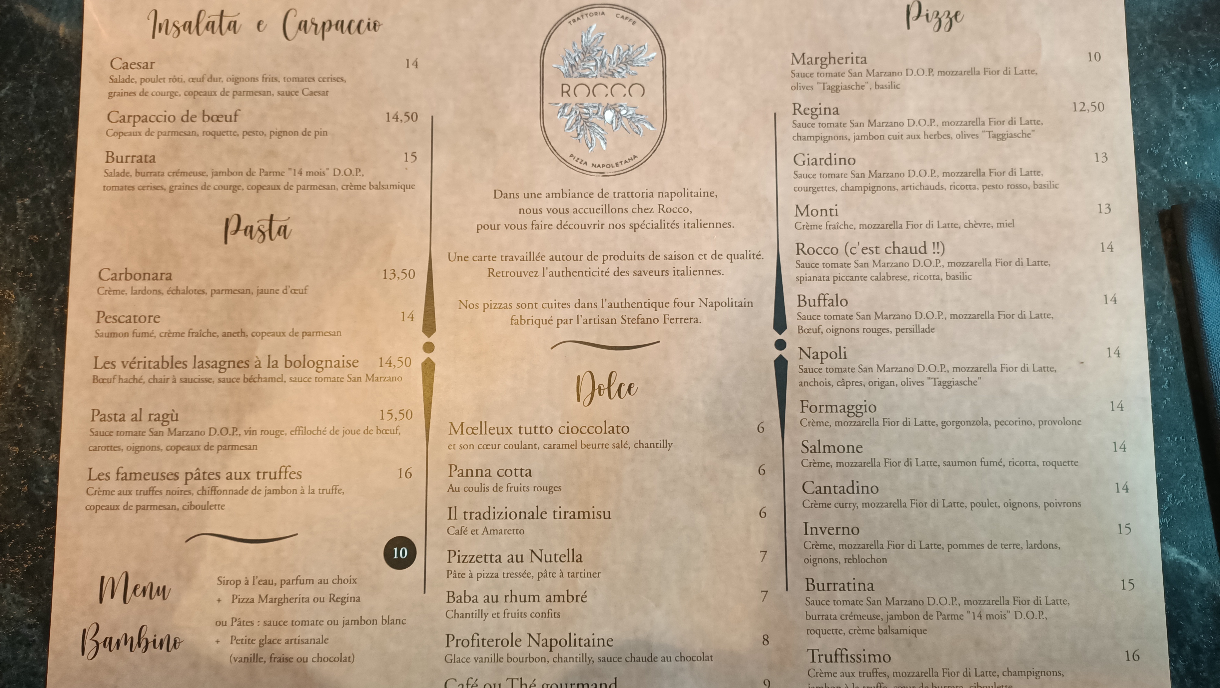 Vous aimez l'Italie ?! Si oui alors passer la porte de chez Rocco ! Leur pizza 🍕 sont excellentes pareille pour les pâtes et salades. Personnel toujours agréable et souriant, nous passons toujours un excellent moment en couple ou quand la famille est là.