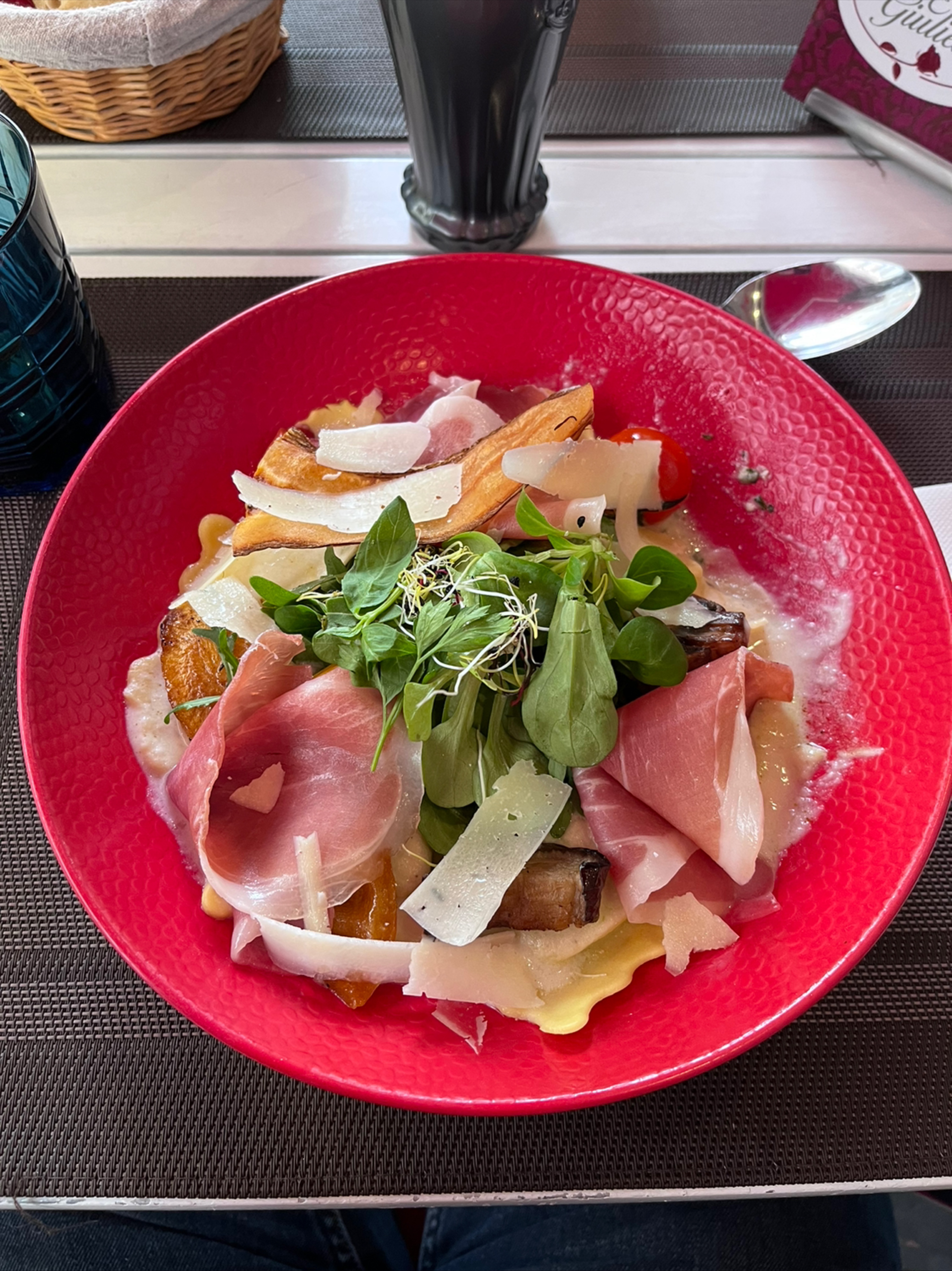 De passage à Verdun pour le travail, un accueil chaleureux, une belle salle, des olives pour me faire patienter avant de commander. J’ai pris des grantortelli ricotta et épinards, velouté pois chiche et huile de sésame, légumes grillés et jambon San Daniela. Le tout agrémenté d’un verre de blanc. Je vous recommande ce restaurant !