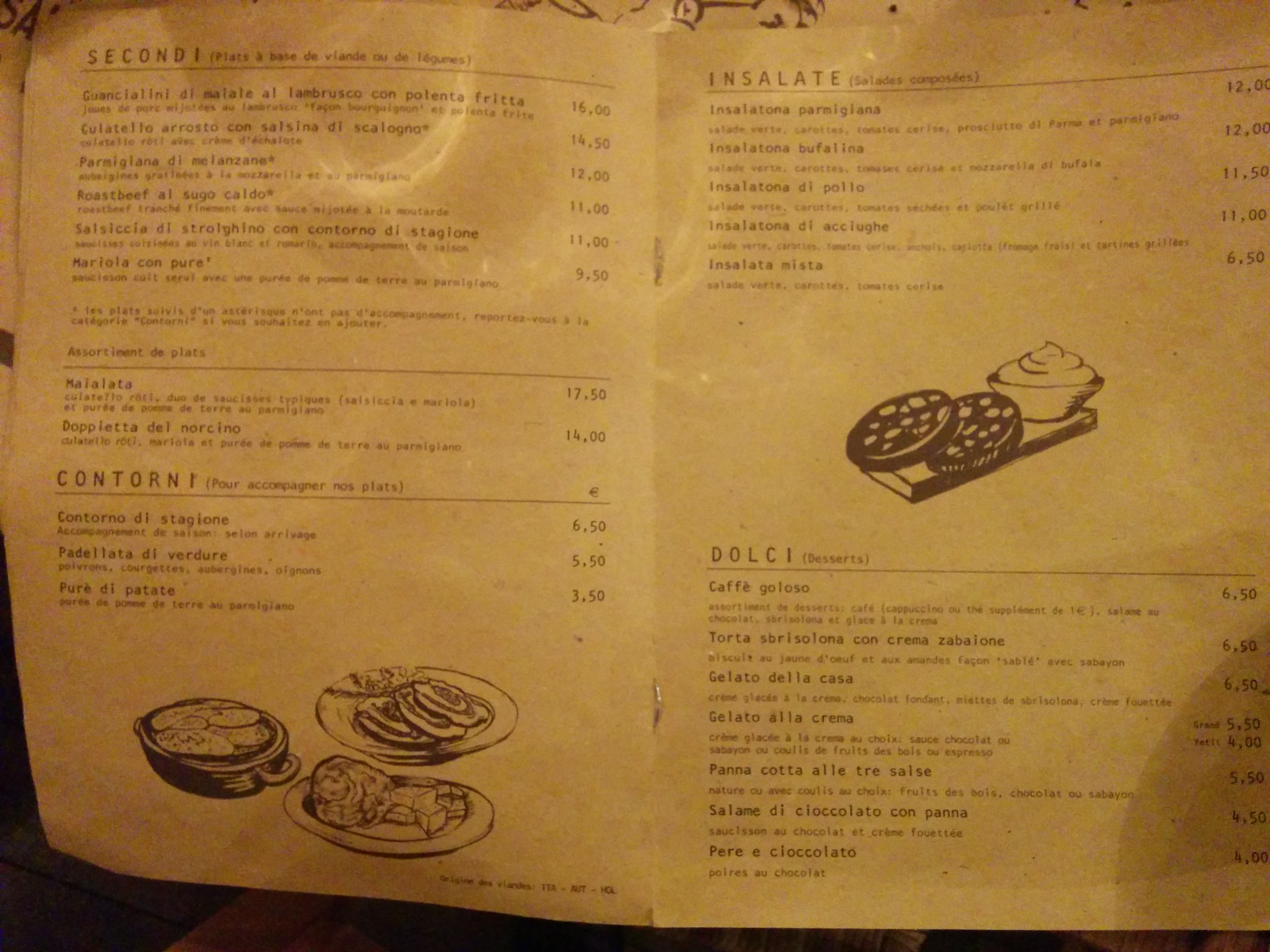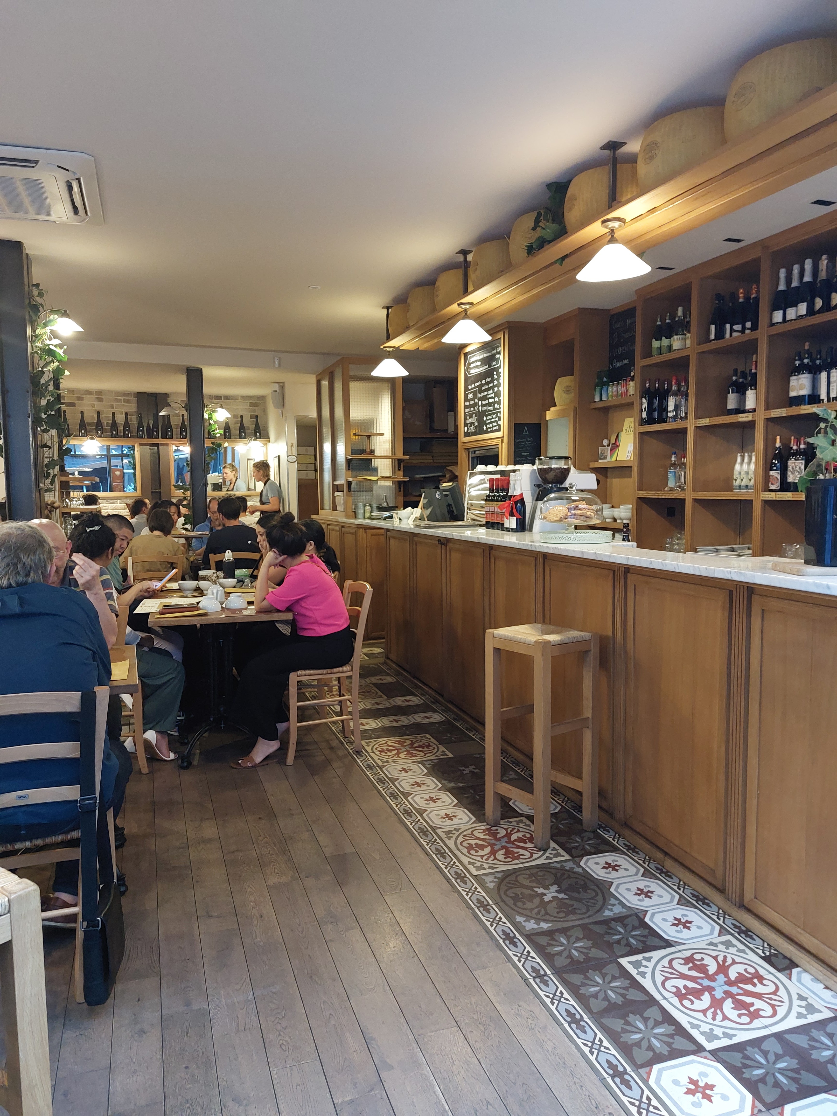 Cadre typique italien, accueil sympathique. A 20h30 plus de plat de saison ! . Les portions sont petites. Rapport qualité/prix pas très favorables. Nous n avons pas essayé ma partie épicerie...