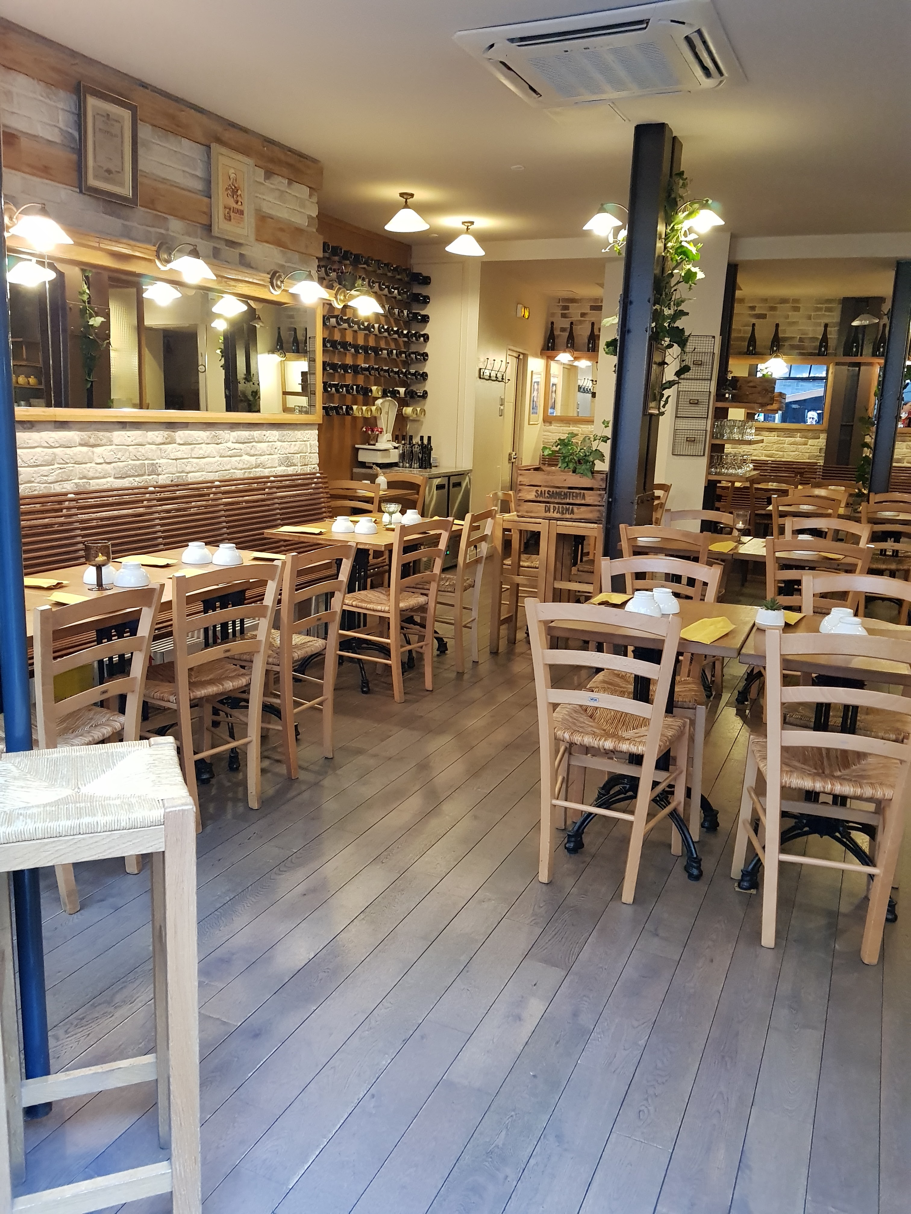 Grande amatrice de gastronomie italienne, j'ai été déçue par les prestations de ce restaurant. Les prix sont très élevés pour un simple plat de raviolis. J'avais choisi une suggestion du jour sans comprendre ce que le serveur avait énoncé. Je n'ai malheureusement pas été capable de reconnaitre les ingrédients qui composaient la farce... Grosse déception, la portion est aussi un peu juste. C'était fade. Le tiramisu était trop sucré et fade encore. Concernant la salle, elle est assez grande et la déco est agréable, cette grande verrière en façade apporte de la lumière et de la chaleur au lieu. Un restau à l'image du quartier : bien trop cher pour la qualité servie.