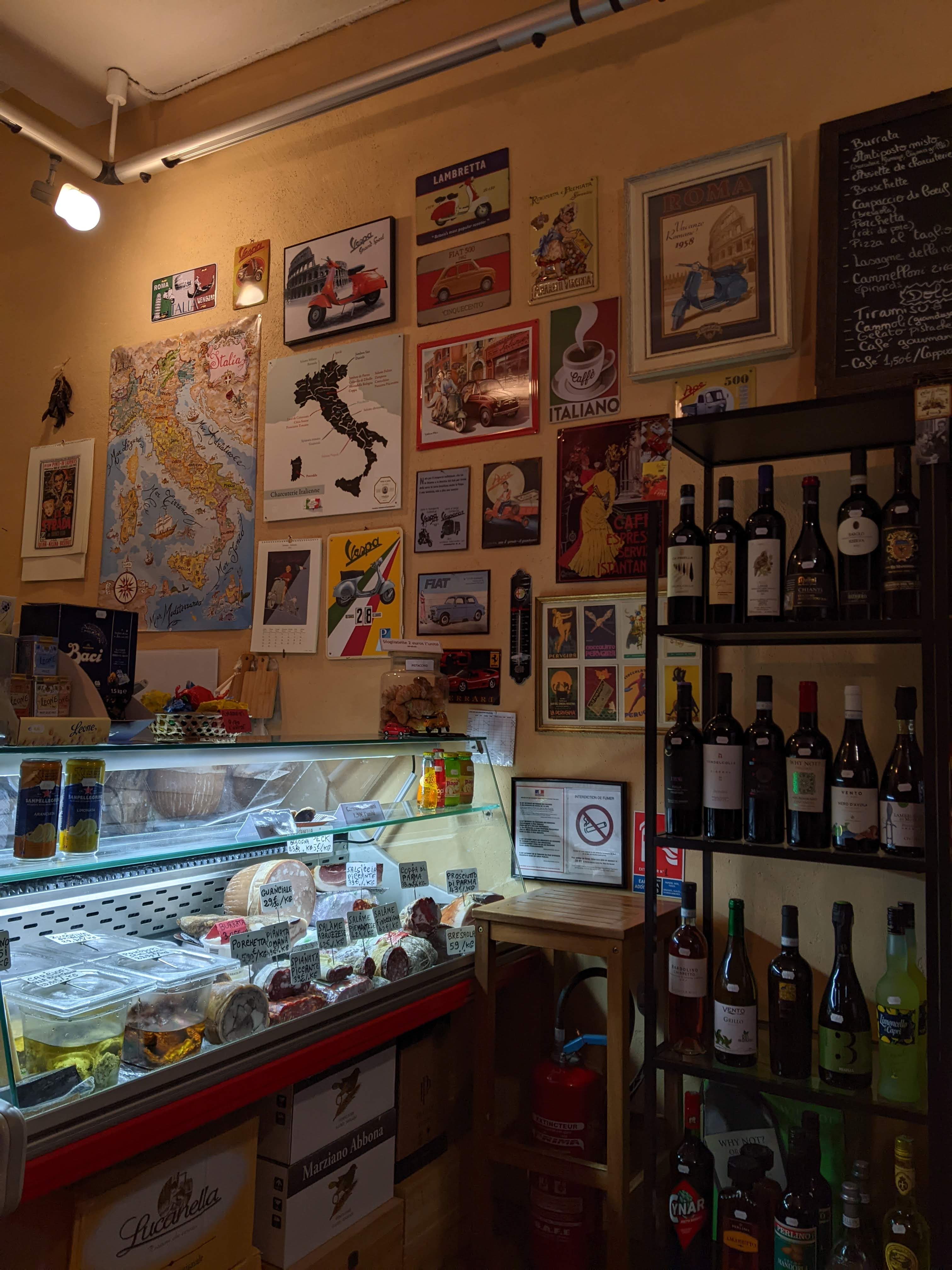 Épicerie italienne où trouver du vin italien en ville ! Et d’autres produits d’Italie comme des gâteaux apéritifs, des pâtes et de la charcuterie, italienne bien sûr. Service de qualité. A recommander.