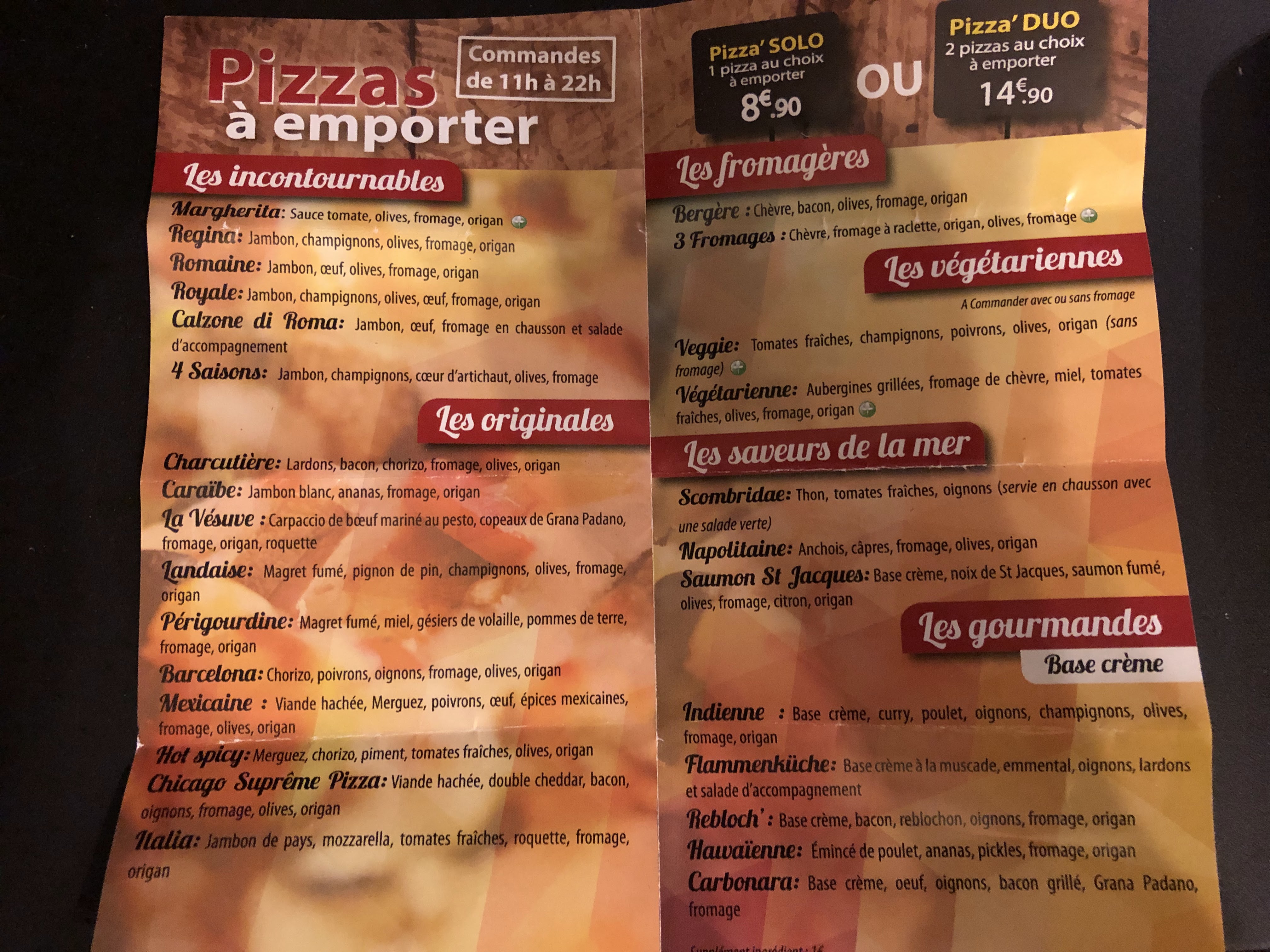 Ouah les pizzas !!!! Super bonnes. A refaire sans problème mais lorsque les touristes seront partis. Mdr
