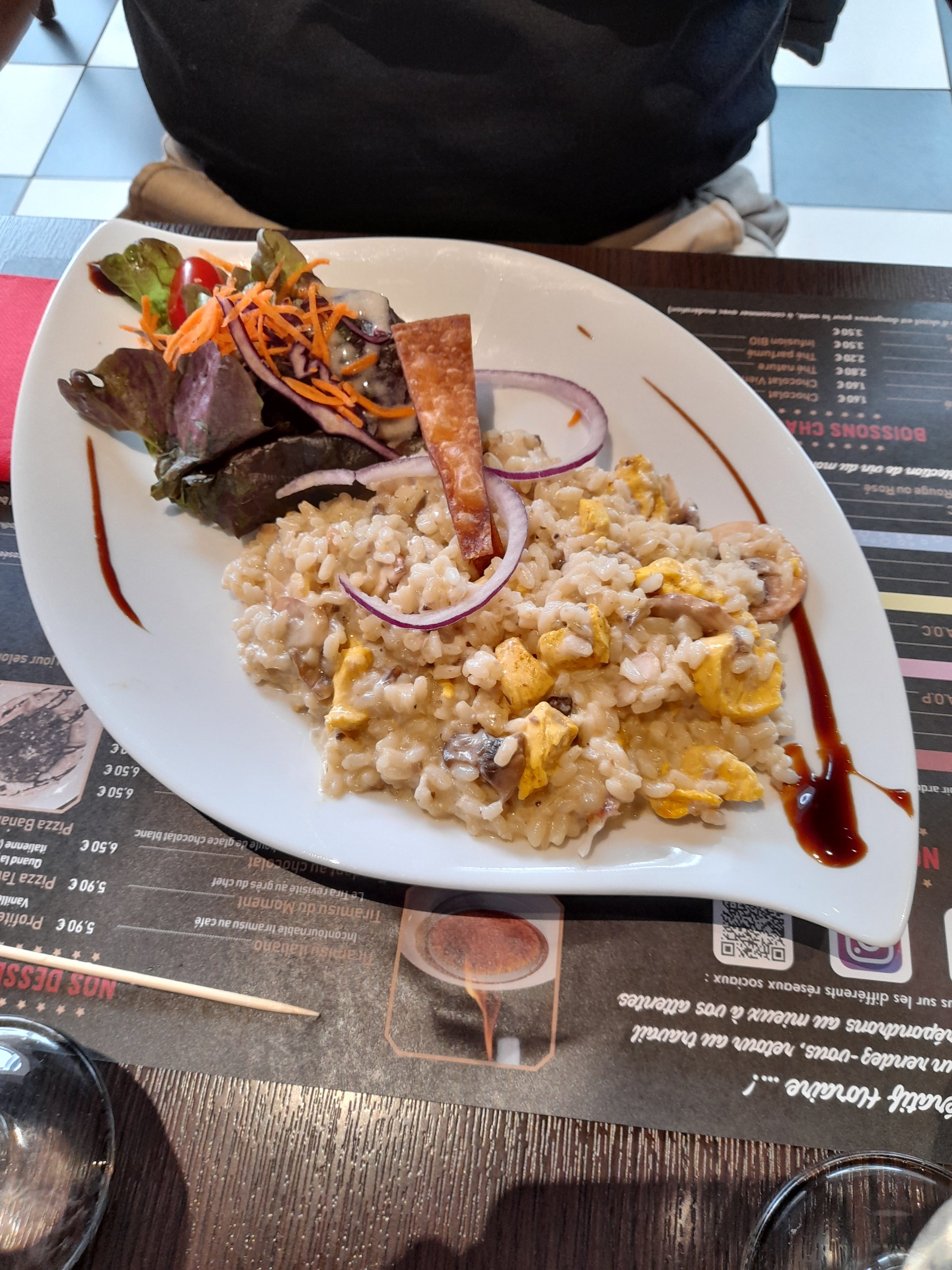 Reparti le ventre vide ma elle a manger du poisson congelé et moi ma viande était congeler dans l’assiette retour en cuisine mais ma femme a eu le temps de manger que mon assiette n’était très pas de retour….donc nous sommes reparti sans mon plat Ils serait normal de noter sur la carte les produits qui sortent du congélateur….