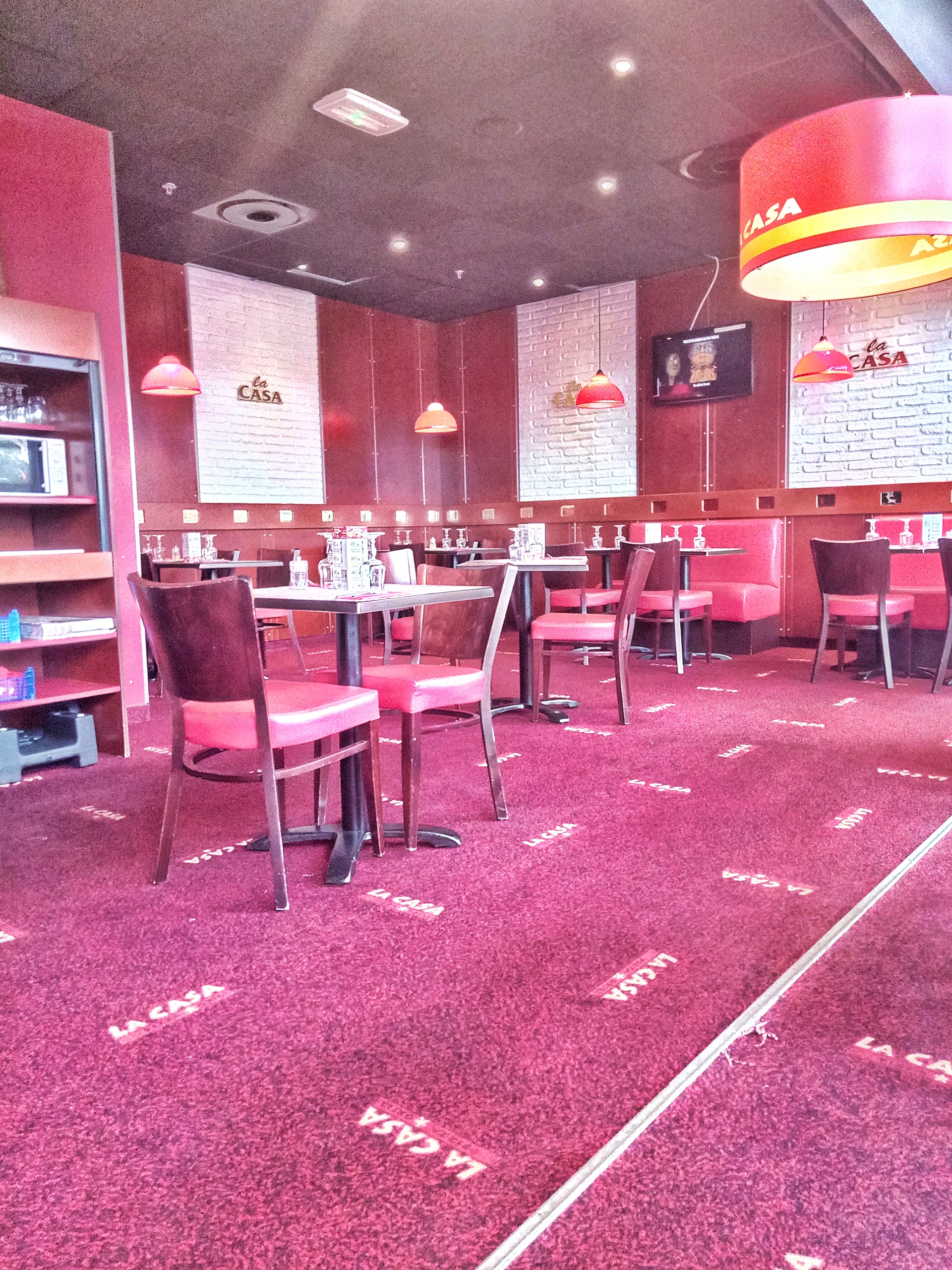 Décor ressemblant énormément à Casa... Nous avions prit plusieurs variétés de plats afin de goûter.. Les pizzas n'étaient pas si mauvaises que les commentaires le disaient, cependant elles étaient effectivement pas suffisamment garnies. Le plat saumon/épinards était quant à lui pas mauvais, mais alors... la quantité de sel et poivre dans les épinards, c'était immangeable... Pour finir, une salade de la mer, avec un oubli de crevette, cela peut arriver, ne soyons pas négatif! Nous ne reviendrons pas, vraiment déçus