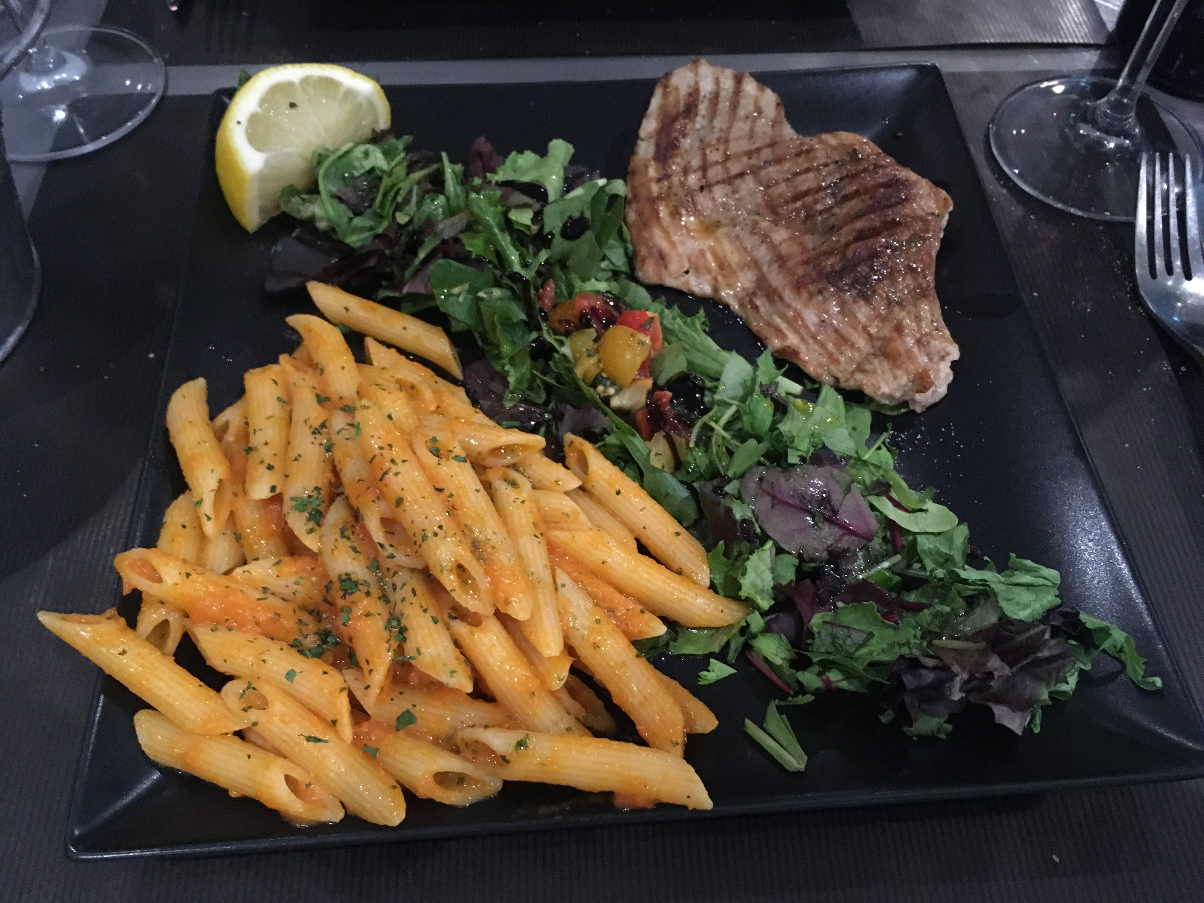 Avec la chaleur j'ai pris une salade, ce n'était pas mauvais mais très basique, aucun assaisonnement un filet de balsamique et c'est tout. La qualité est moyenne, un effort dans la présentation pourrait être fait.