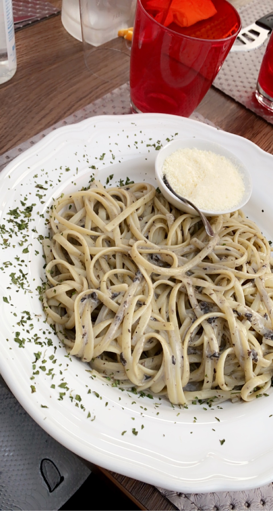 Bof, service très sympa mais tagliatelles carbonara qui étaient en fait des penne rigate à la crème fraîche (très aqueuse) et lardons ☹️