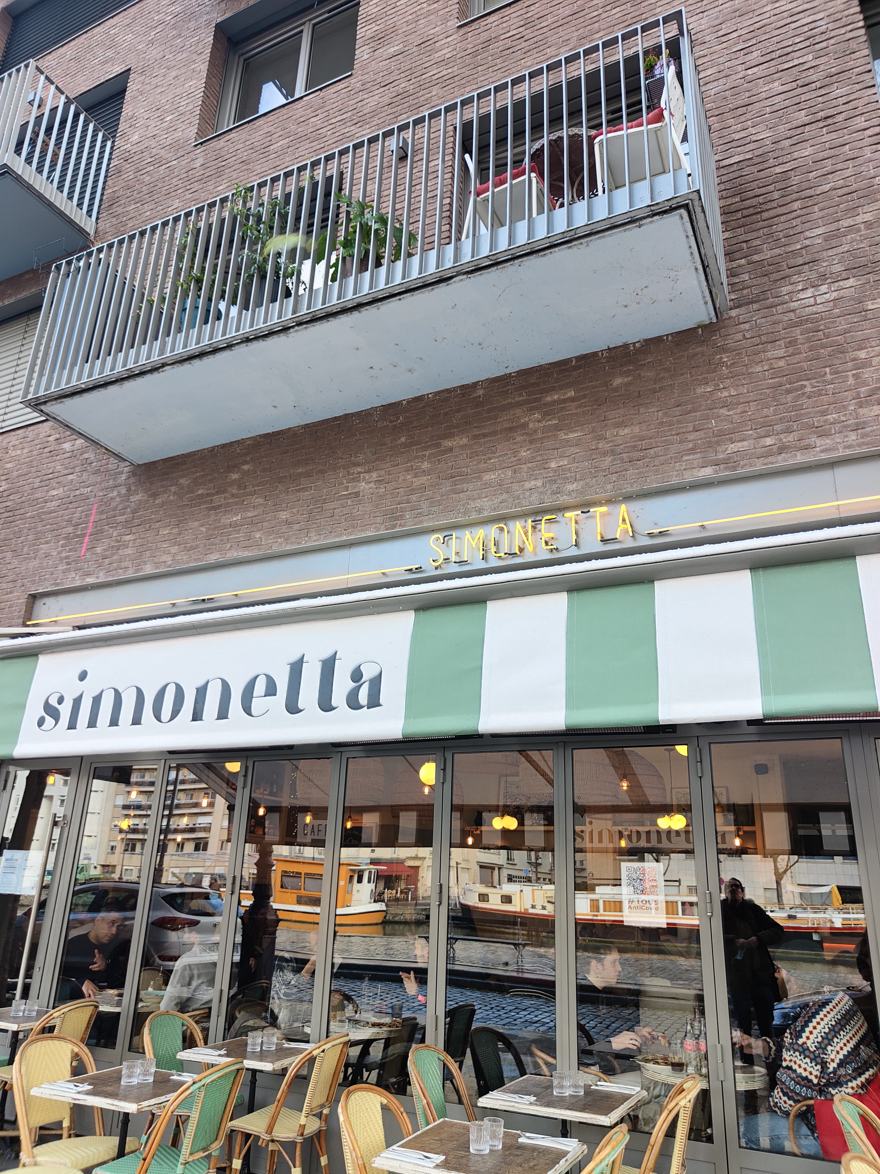 Je ne connaissais pas la Simonetta. Une vraie belle découverte ce soir avec des amis. Cadre très sympa avec décoration travaillée, proximité du canal, cuisine nickel, vin bio adapté et tarifs raisonnables. Bref aucune raison de ne pas y retourner et de ne pas recommander l’adresse !