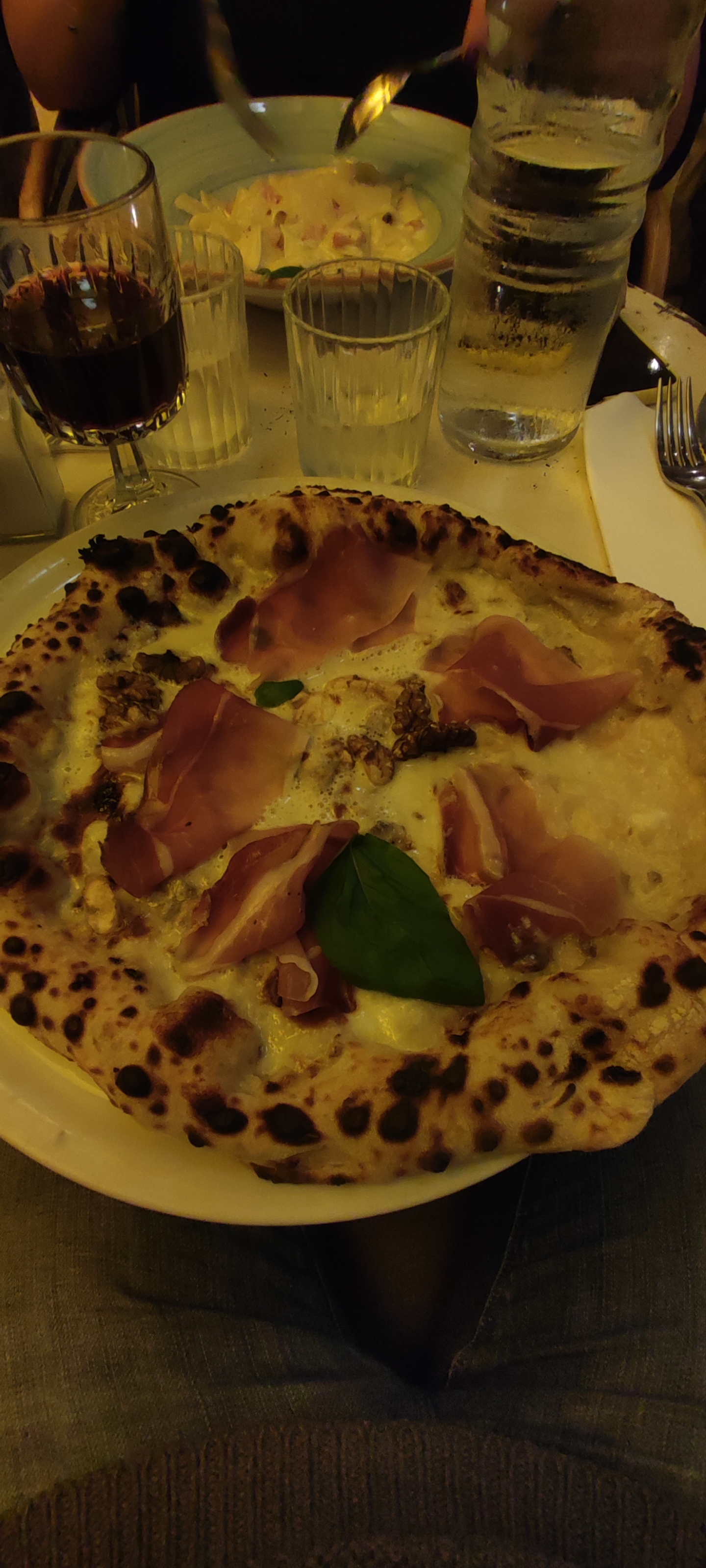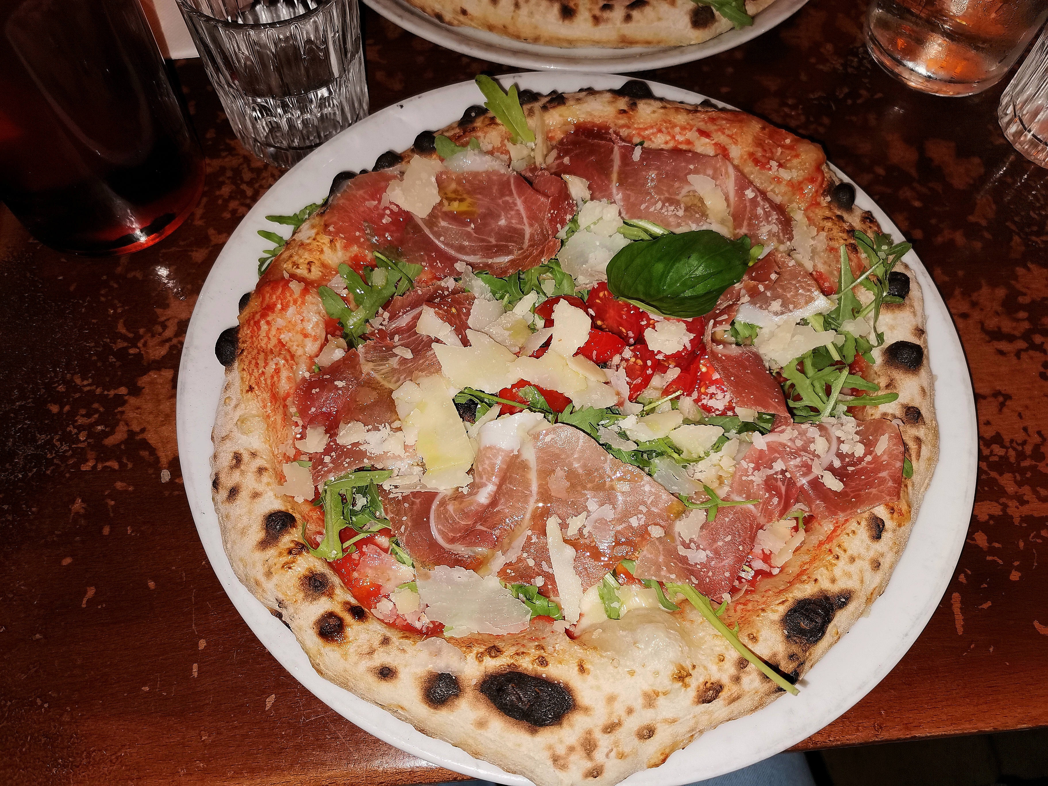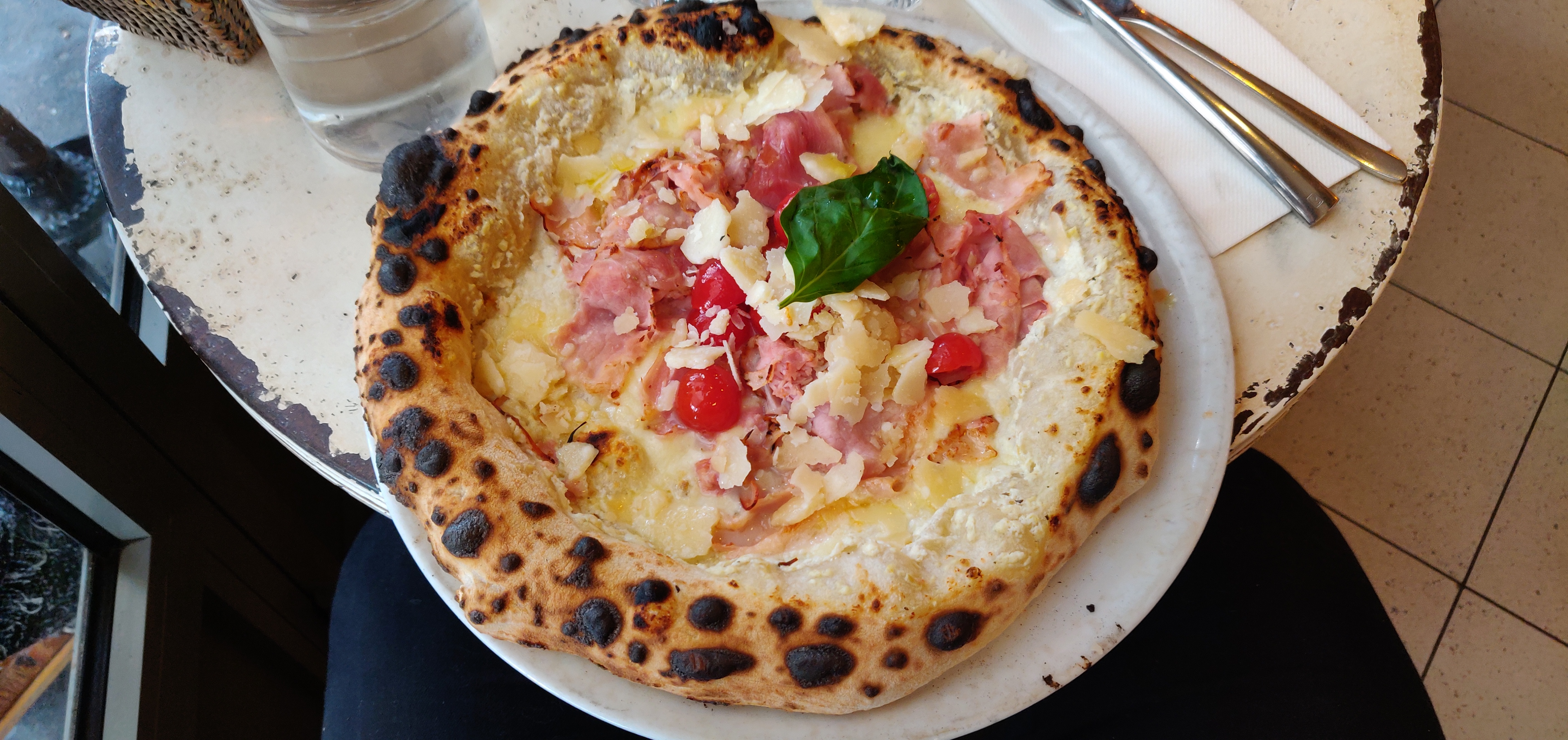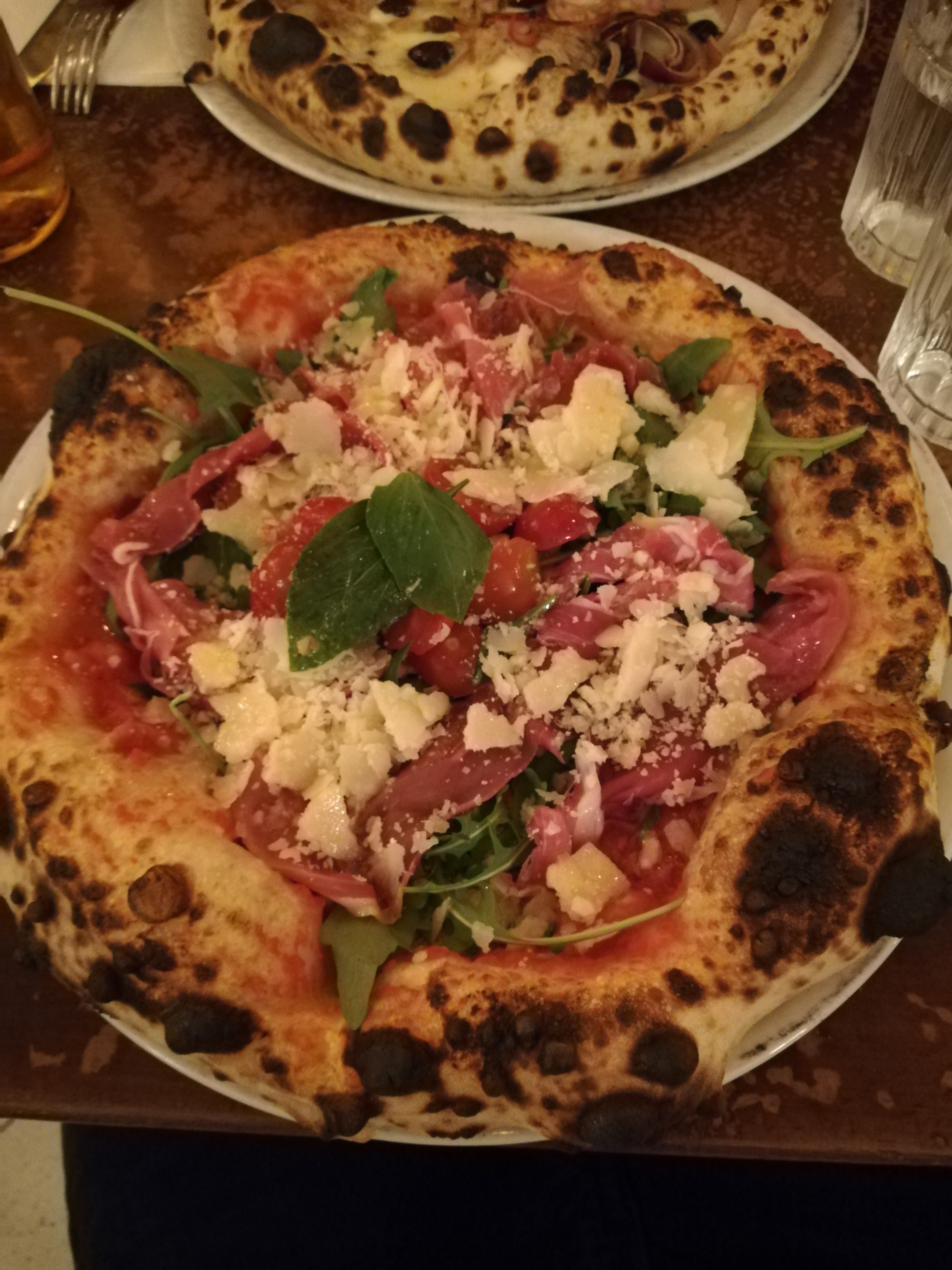 Meilleur pizza que j'ai pu manger. Le restaurant est très accueillant, la pizza homonyme, est vraiment excellente, jambon de qualité, le fromage savoureux, la pâte est croustillante et élastique, cuite au four napolitain. La taille de la pizza est vraiment généreuse, je n'ai pas pu tester les dessert qui avait l'air très appétissant. Je recommande, et je reviendrais.