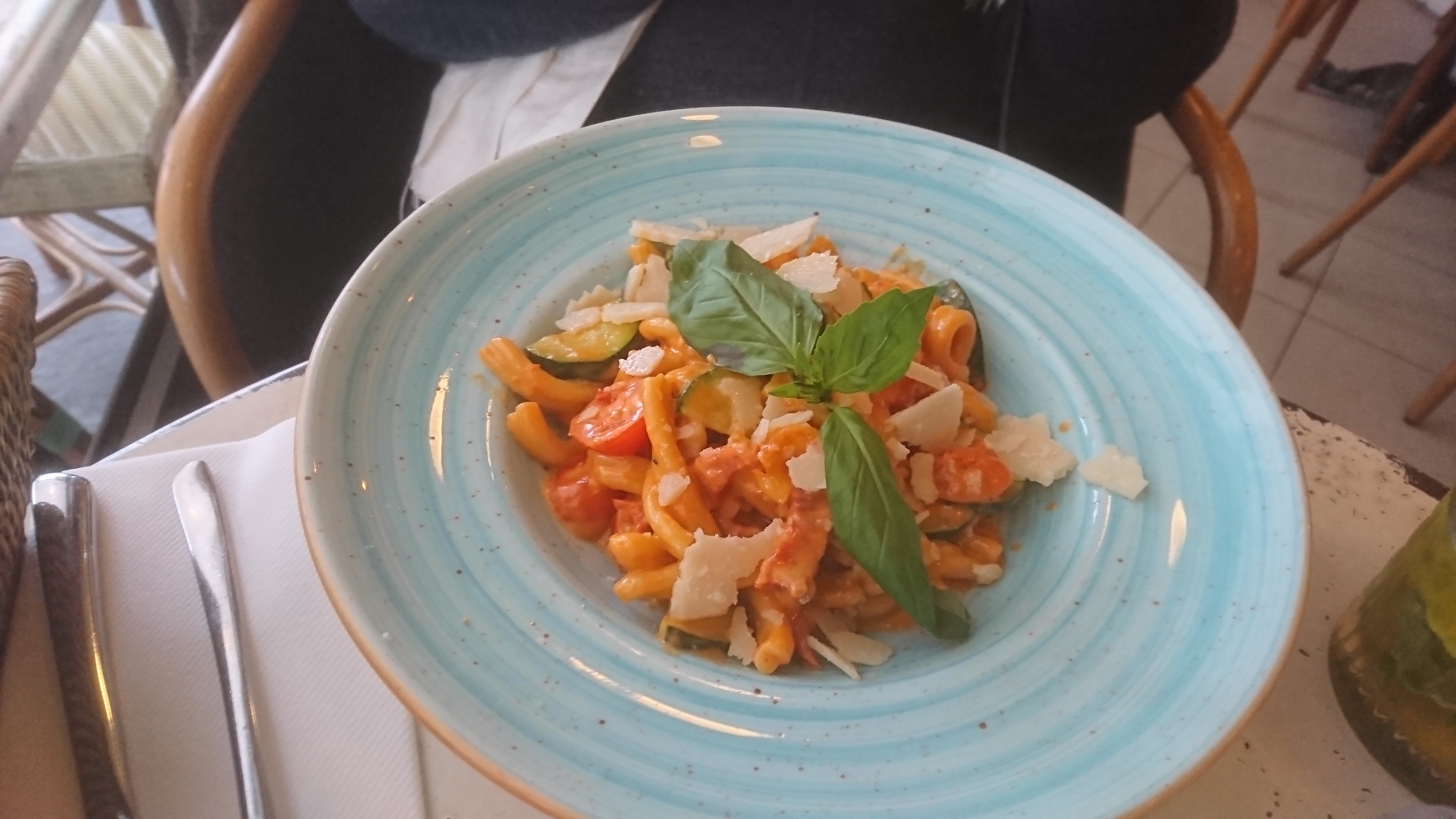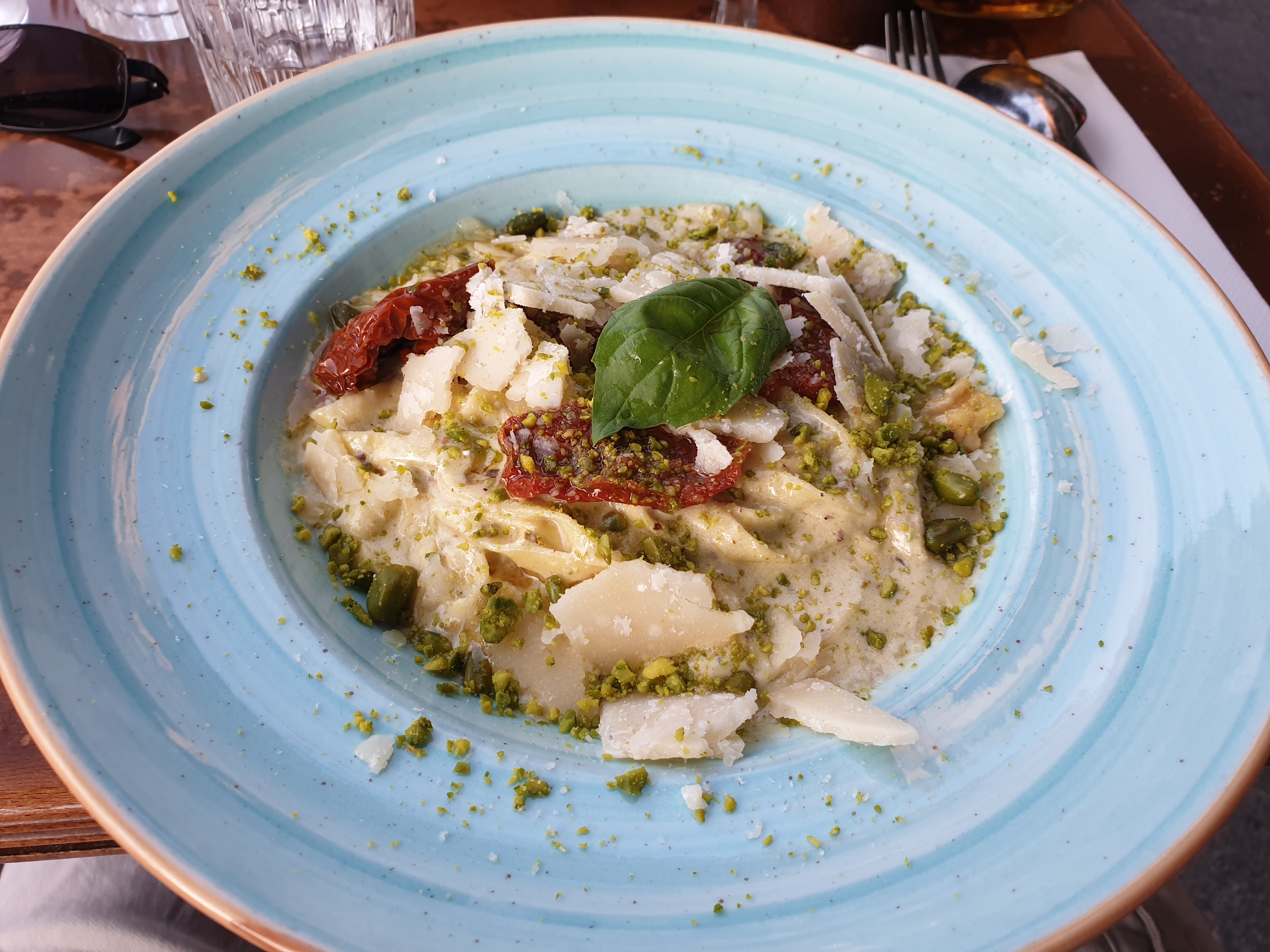 Des pâtes à la pistache…mais servies en petite portion, manque de générosité ! Crise oblige peut être, mais se sont des pâtes donc pas si chères quand même ! Et le goût n’est pas fou ! Encore un resto de bobos…positif: le tiramisu excellent …