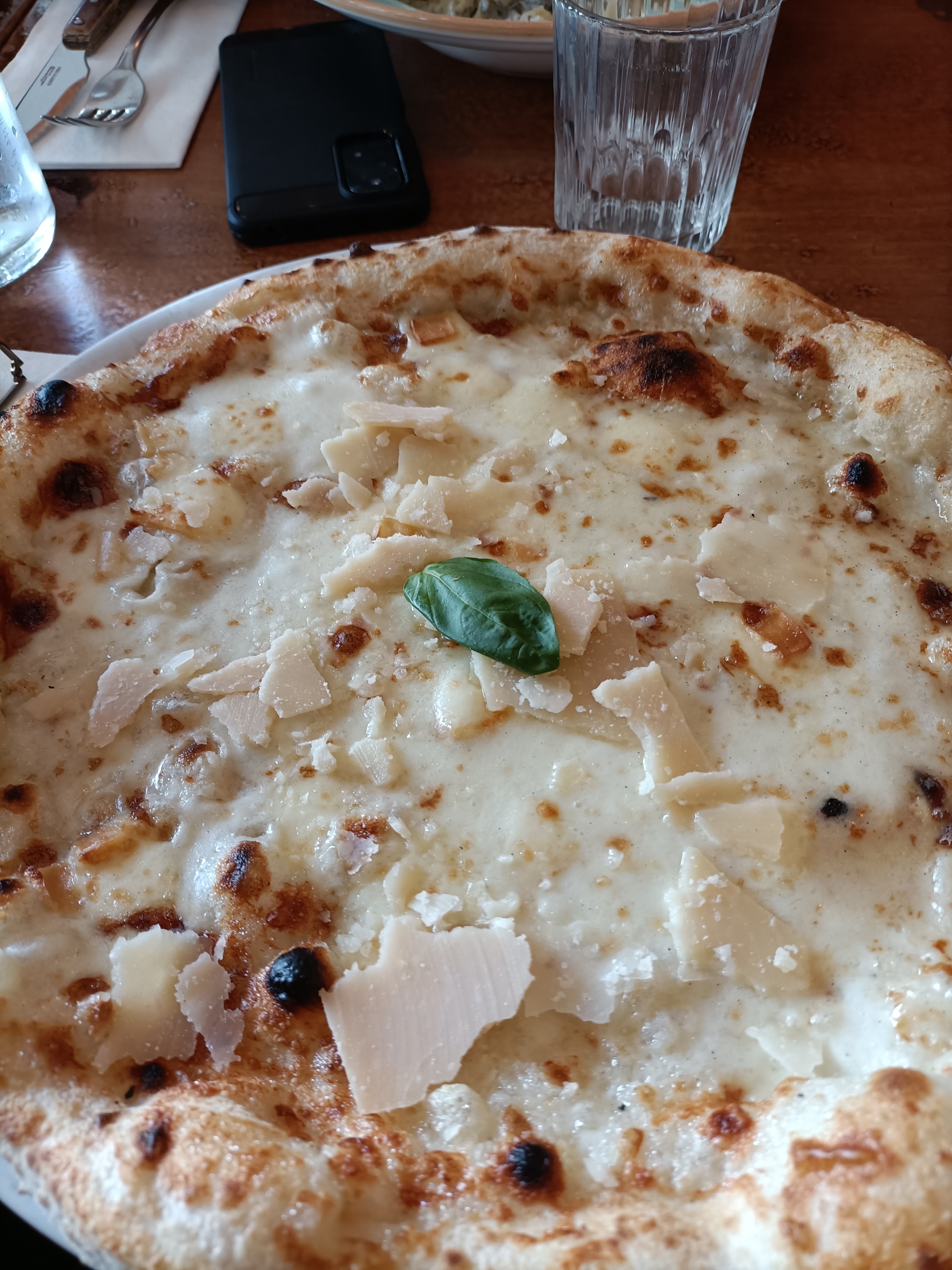 J'ai été décu par le goût de ma pizza aux 4 fromages, ma fille a pris une margarita, le fromage était très compact en refroidissant. Sinon le cadre est sympa et le service aussi.