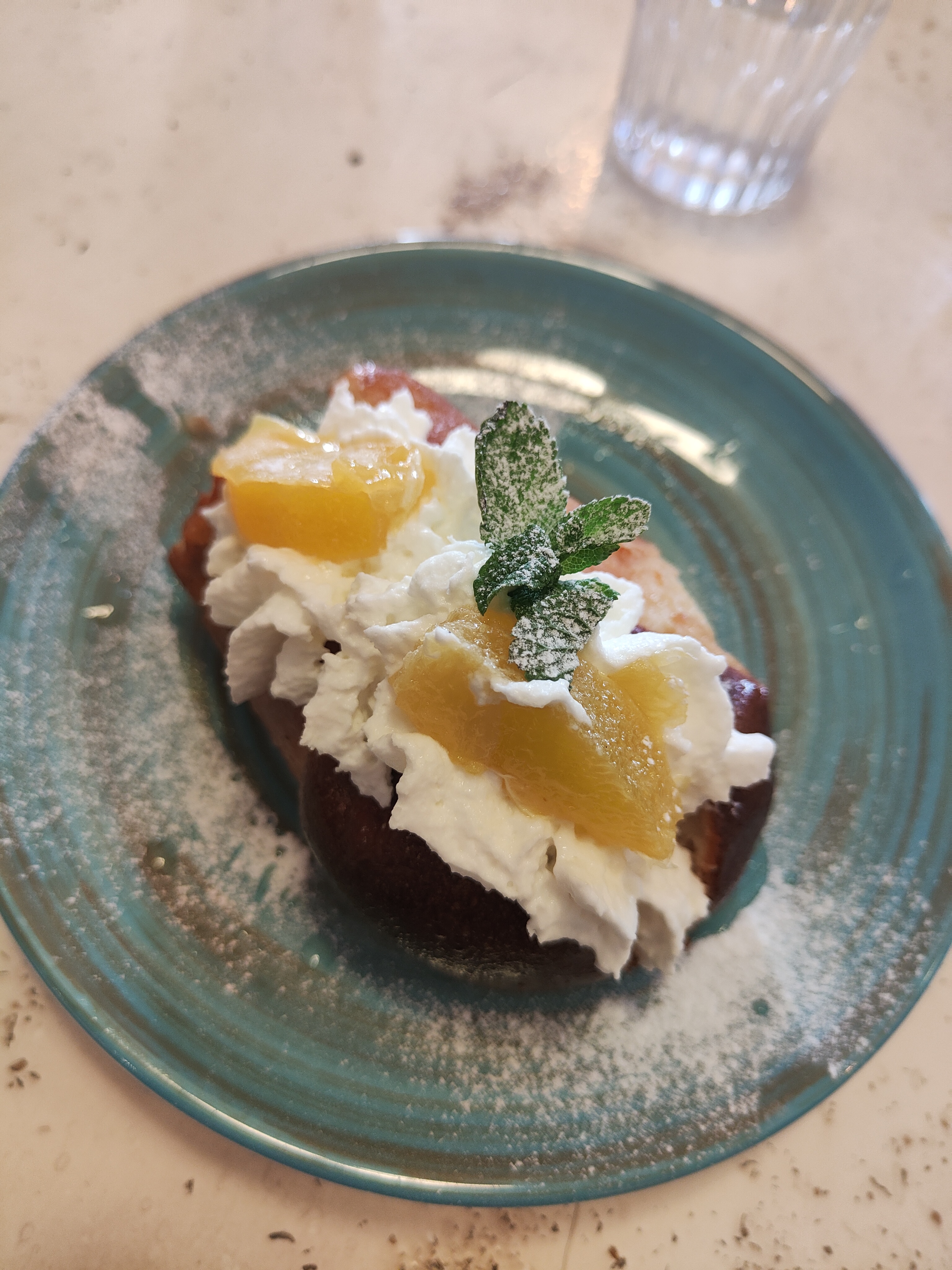 Spritz pas bon du tout, pas pétillant. Pizza et service corrects Le baba au rhum très sec, même pas imbibé. Je n’y retournerai pas.