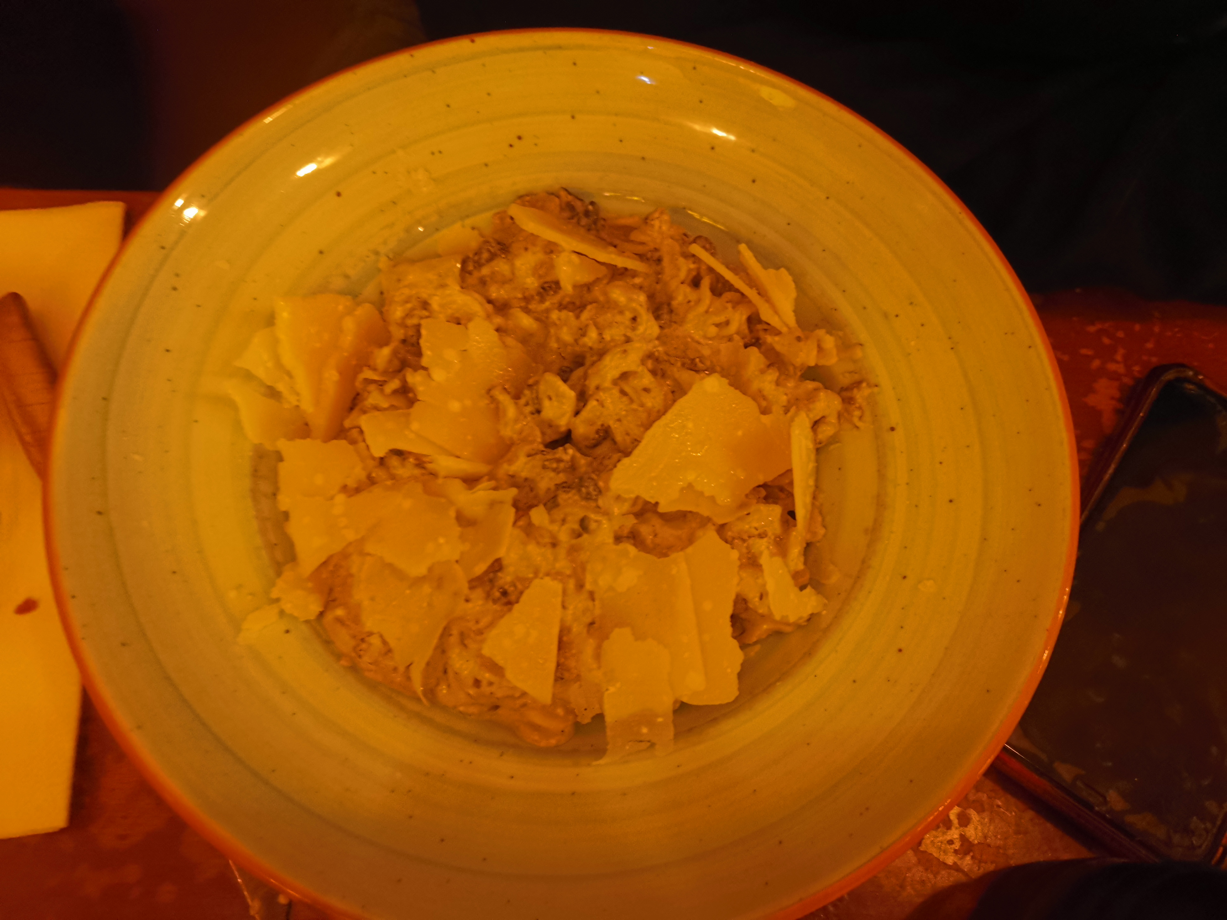 Mes toutes premières VRAIES pâtes carbonara !! Un vrai délice et quand c'est bon... On n'en a jamais assez. Pensez à réserver parce que c'est vite rempli (nous étions 14 et le service fut très pro et super rapide si besoin). Je trouve tout de même un peu cher mais quand ce sont des produits de qualité... On ne regarde pas trop. Je recommande 😉