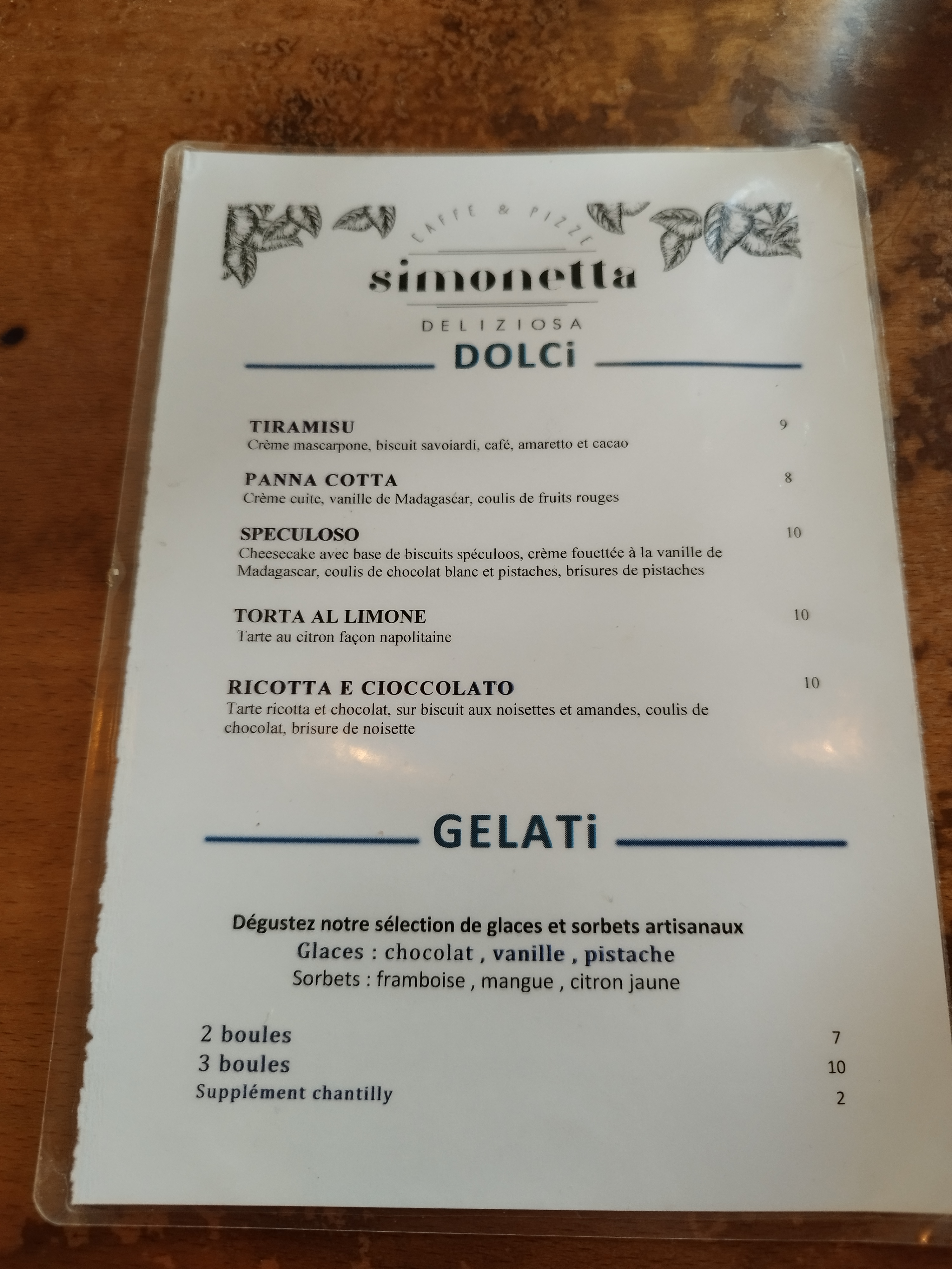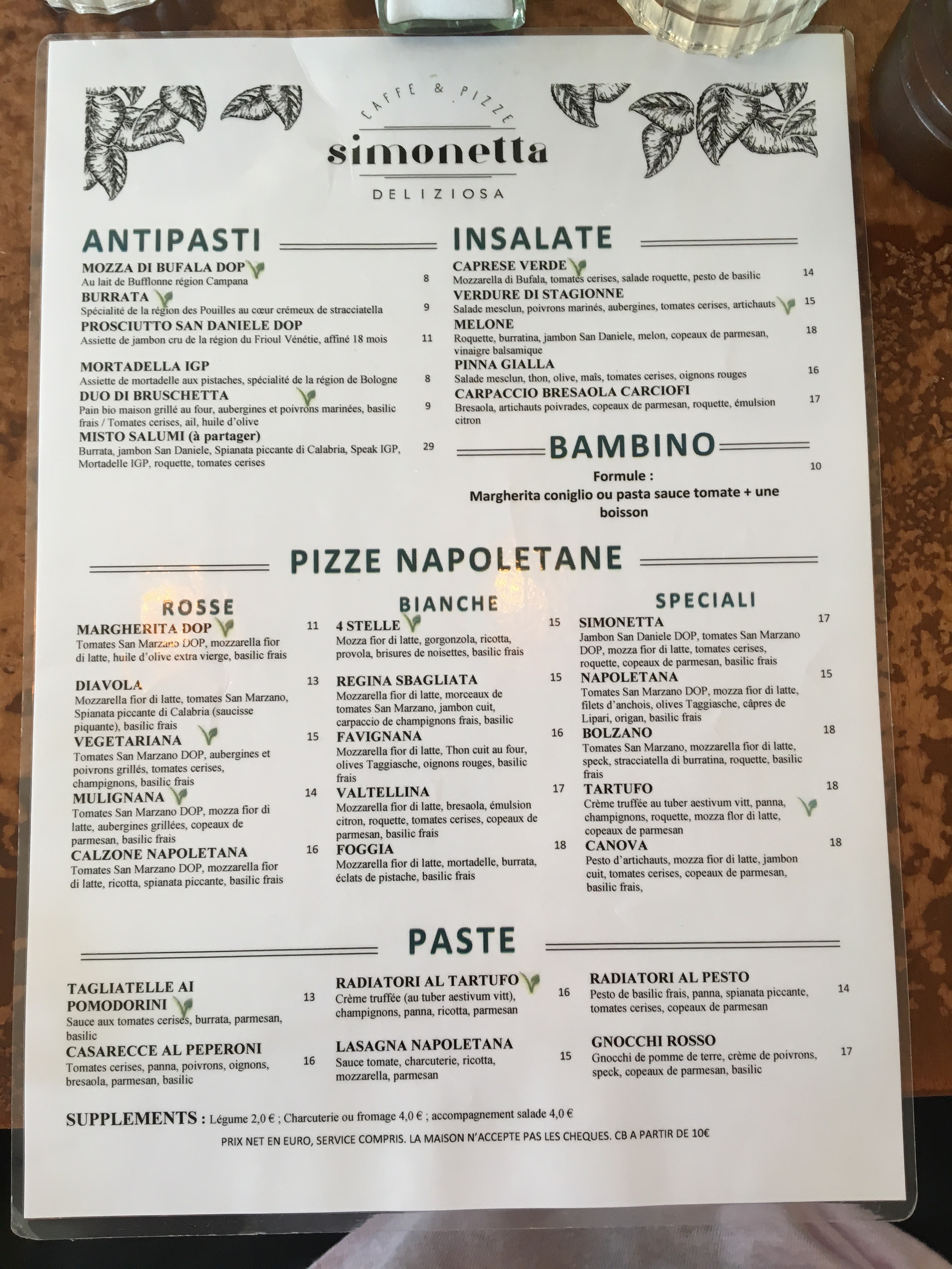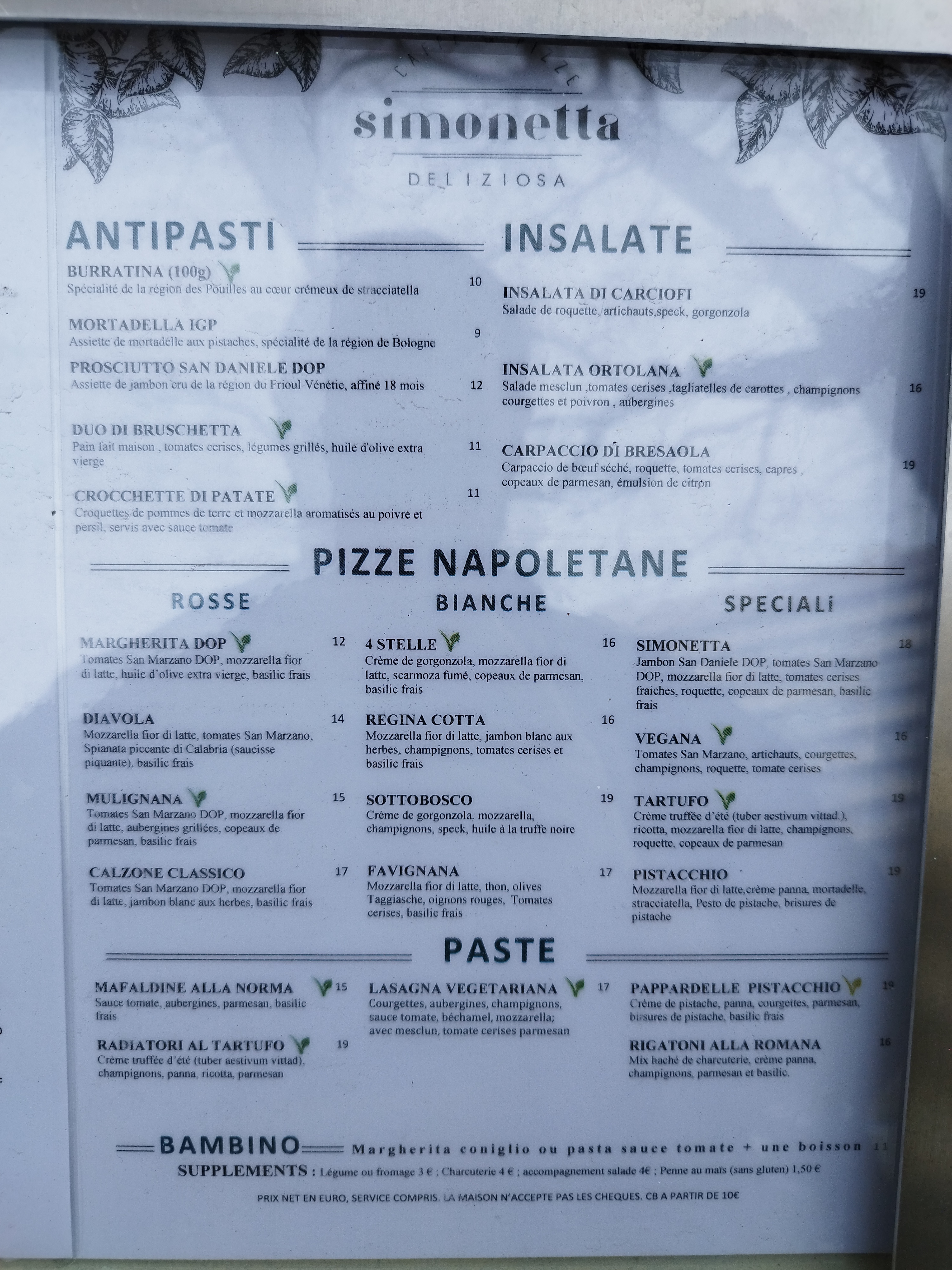 On se régale toujours chez Simonetta ! Les « pizze » sont justes délicieuses ! Évidemment le restaurant est victime de son succès il y a donc vraiment besoin de réserver et si vous avez besoin de silence et de tranquillité ça risque d’être compliqué ! Venez y pour au moins goûter une bonne pizza