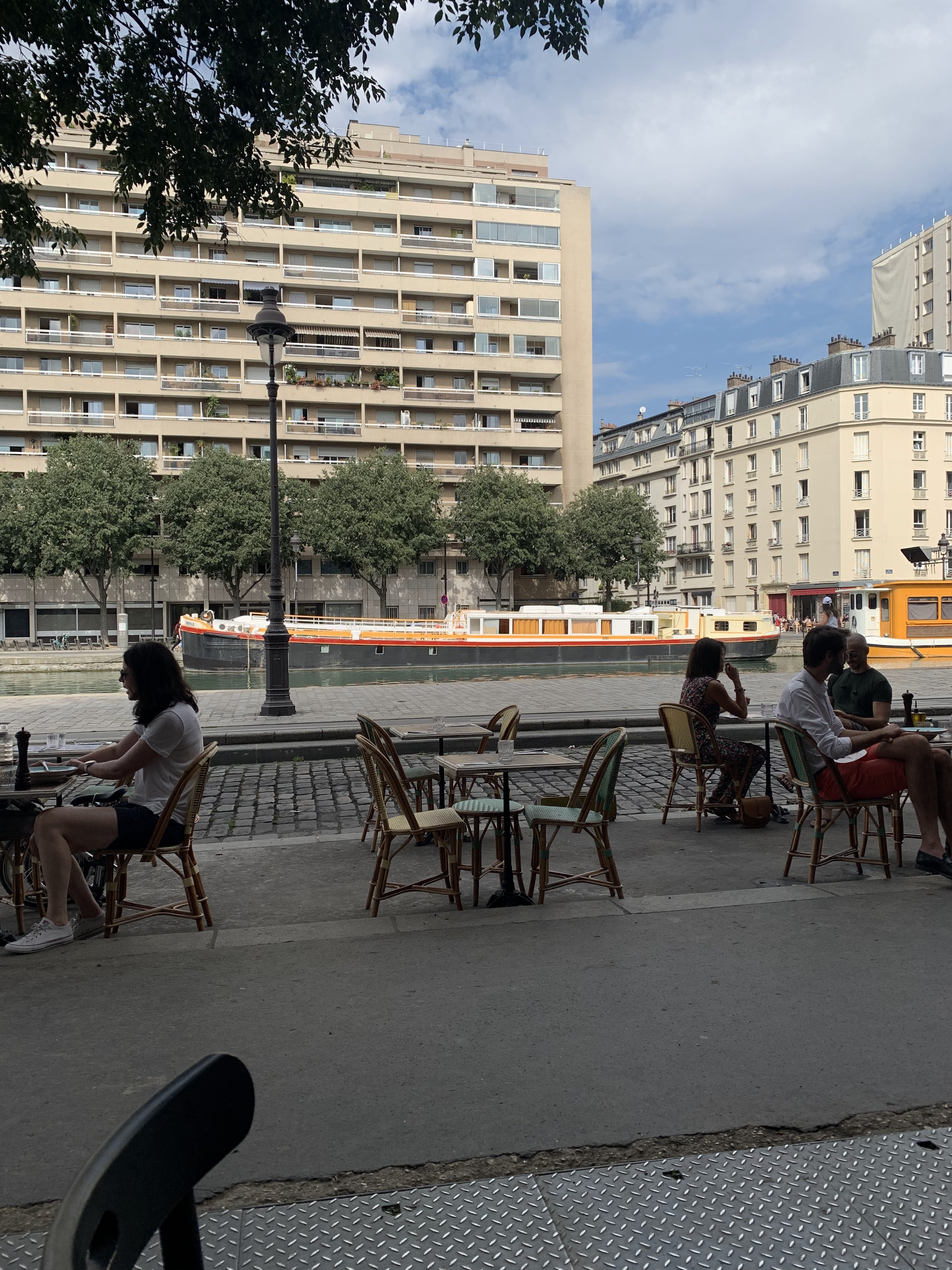Sympathique sur le bord du bassin de la Villette. Service un peu rapide, j'ai apprécié les pâtes bolognaises. Superbe point de vue.
