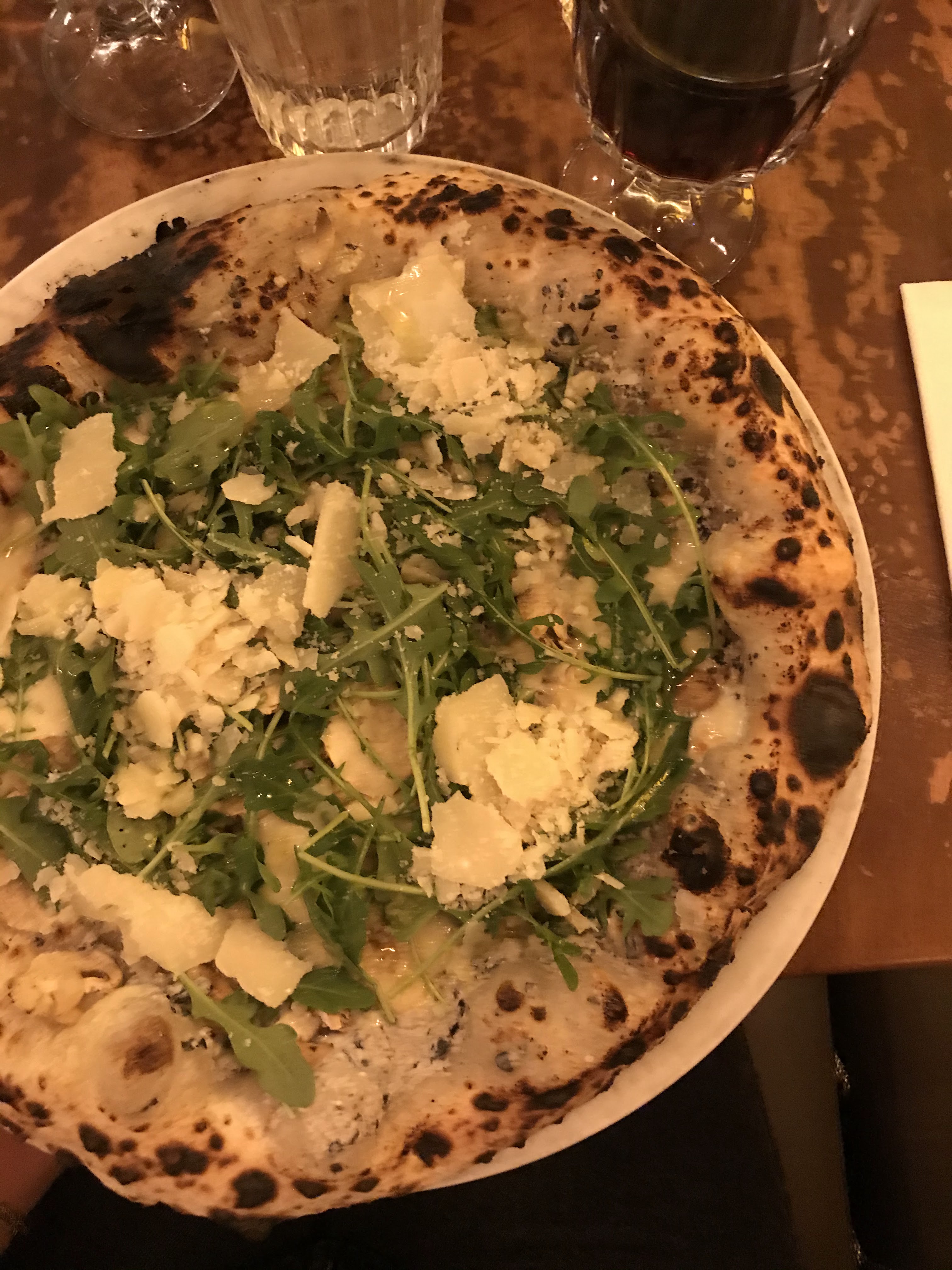 L'accueil est vraiment bien ; sympathique et efficace. Apéro entre amis au bar en attendant notre table. Le lieu est joliment décoré, dans le thème. J'ai pris une pizza Diavola, très bonne avec pâte généreuse. Vous trouverez également des pizzas blanche à la carte et aussi de très bonne pâtes (j'ai goûté une sorte al tartuffo plutôt pas mal !)