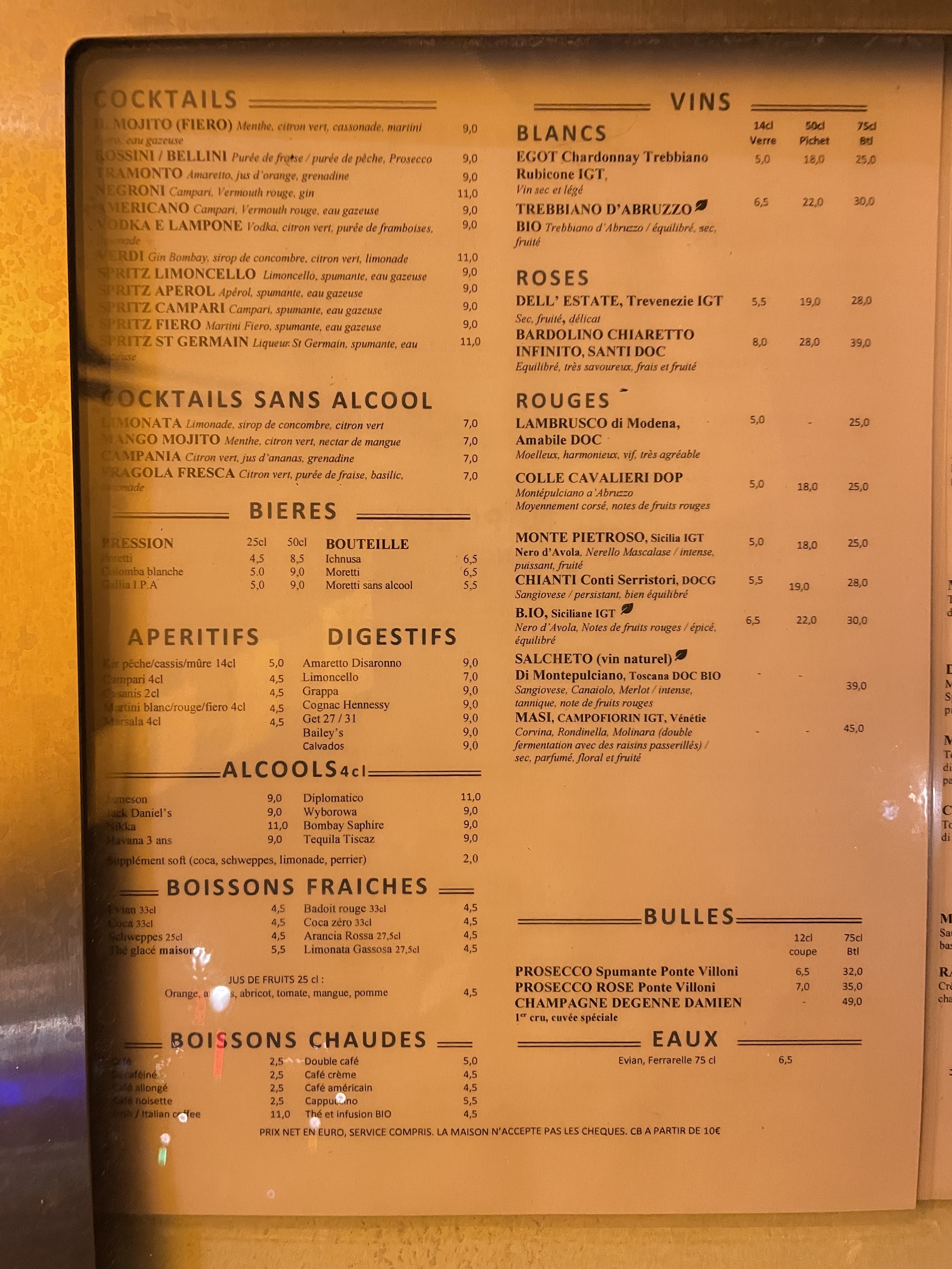 Belle découverte! Le cadre est cosy. L’accueil et le service super sympa! Et dans l’assiette plein de saveurs! Mention plus pour le petit shot de Limoncello au bar avant de repartir .., à pieds un peu en zigzag… super soirée À refaire si de passage à Paris Merci