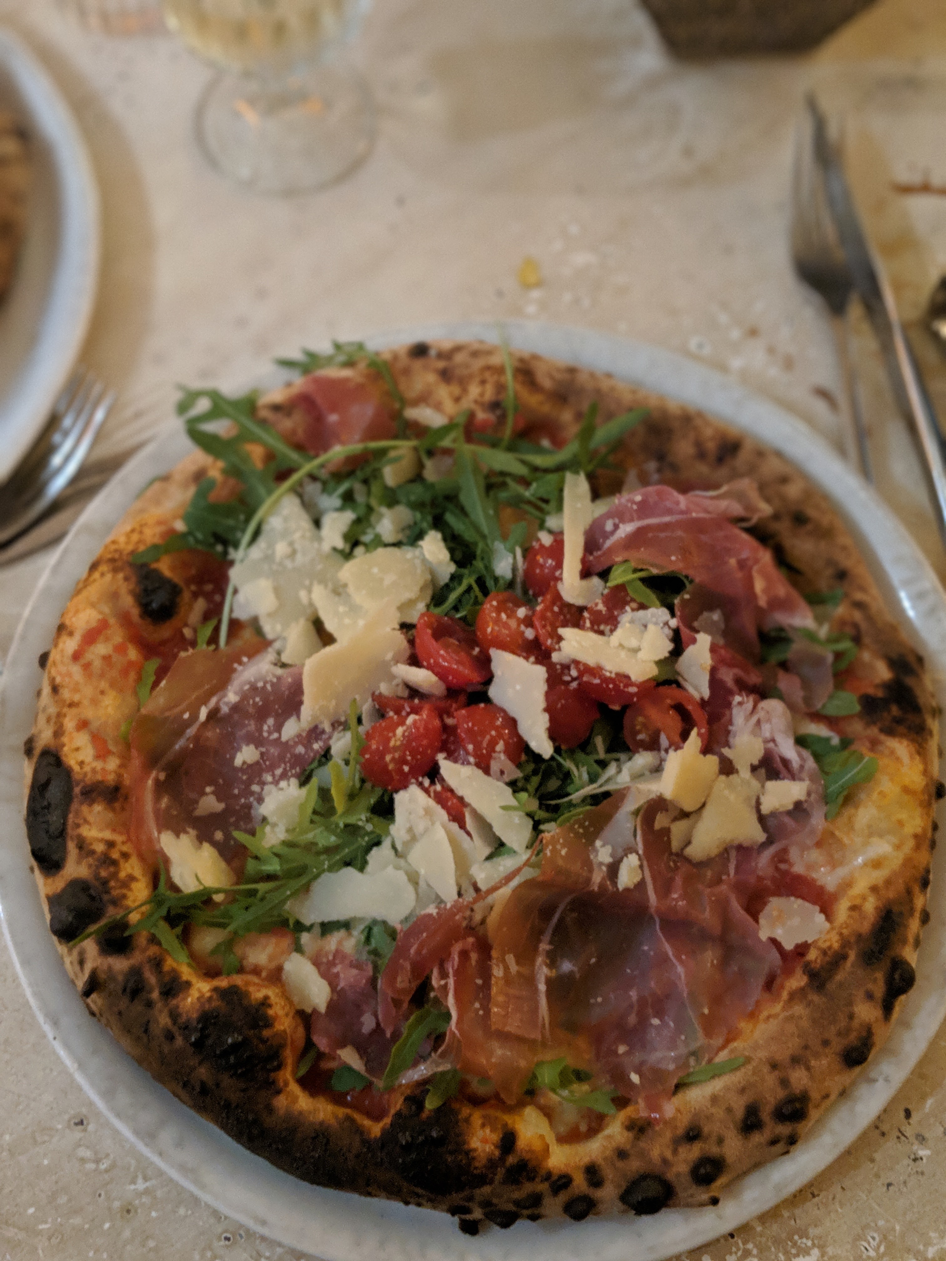 Excellent restaurant italien ! Les pizzas cuites dans un four napolitain sont extraordinaires et rappellent vraiment la pizza traditionnelle de Naples! Le jambon en entrée valait le coup ainsi que la burrata Le cocktail prosseco / fraise n'avait pas plus d'intérêt que ça, le goût du vin passant au dessus du fruit mais le tout reste excellent pour un tarif correct !