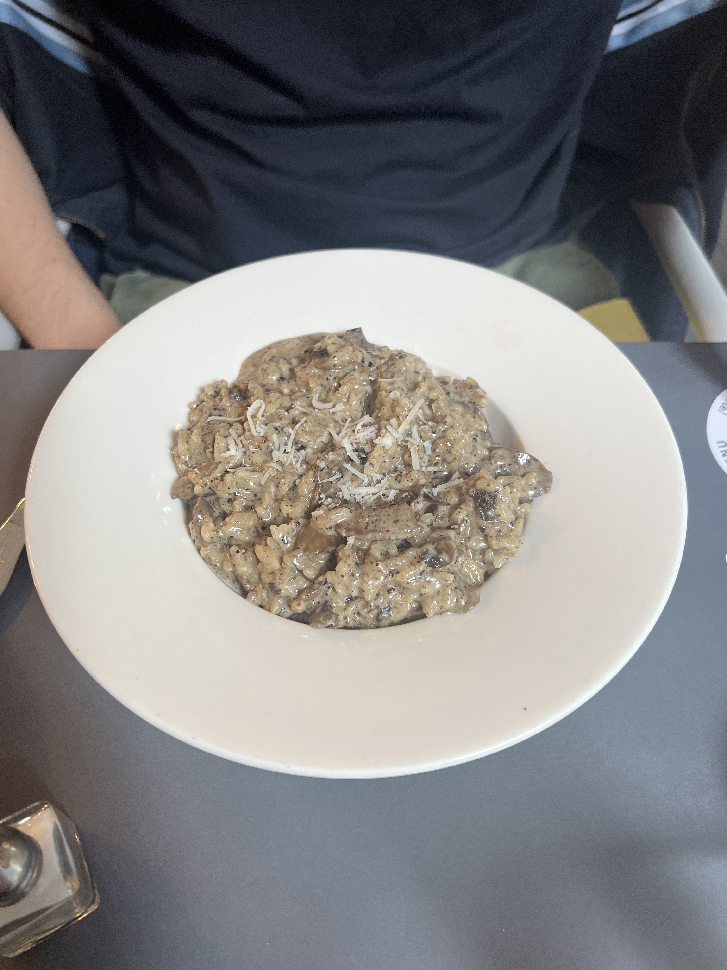 Excellent risotto champignons/ truffes accompagné d'un très bon verre de vin sicilien, je recommande vivement ! Déco très agréable et chef sympa ;-)