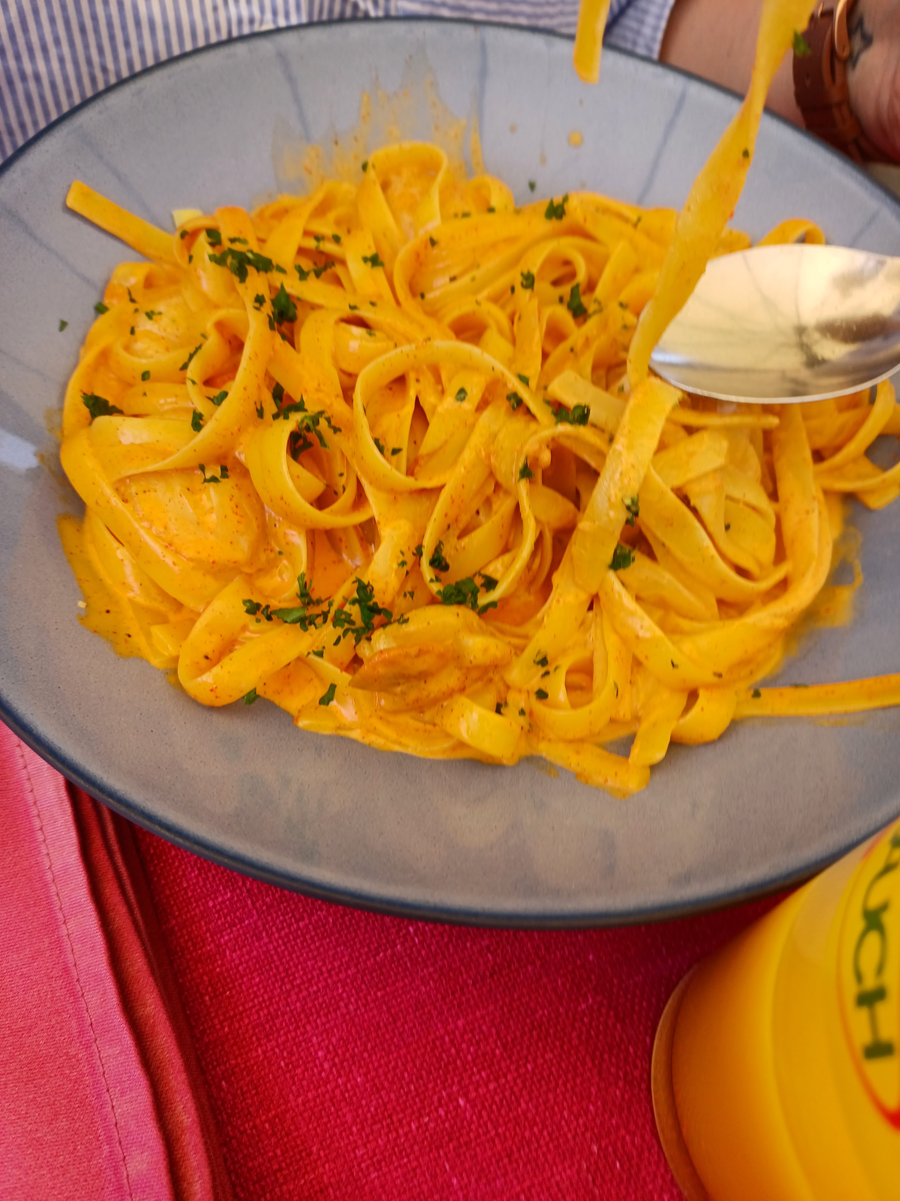 Les pâtes sont indiscutablement fabuleuses, les sauces qui les accompagnes sont au top. Peut être un bémol sur les volumes de l'apéritif, Martini ou Américano, pas d'olives ou de grignotes. Mais les pâtes en font vite oublier cette fausse note. Bon appétit