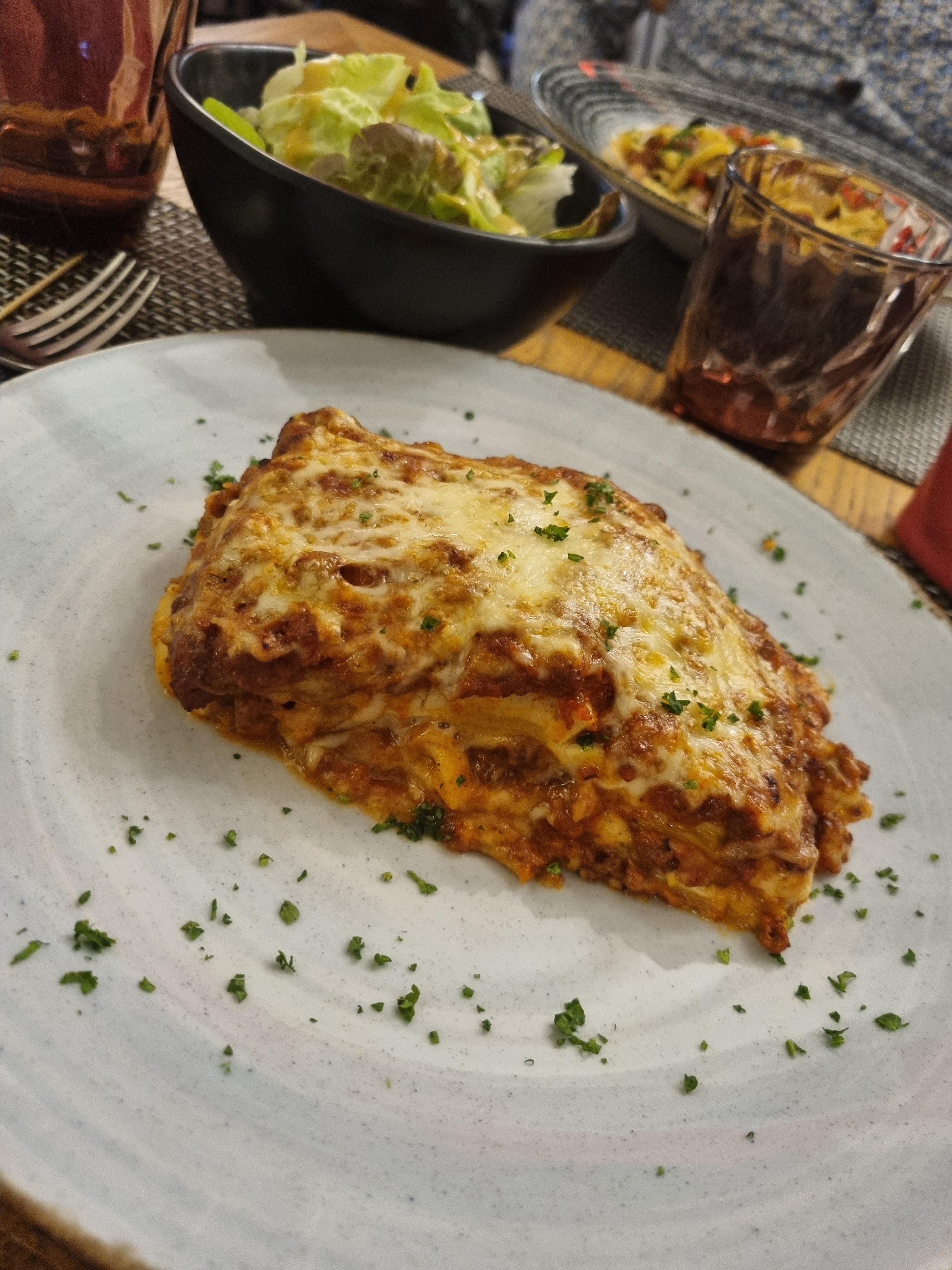 Très bon restaurant pour les pâtes (uniquement) : la viande que nous avons pris n’était pas tendre du tout. Les portions étaient plutôt conséquentes et ça c’est un bon point. Le service était très long, nous avons pris du vin pour patienter et nous avons été servi plus d’une heure après. Pas d’excuses de la part des serveurs pour la lenteur du service (alors que c’était l’heure du 2ème service avec peu de gens attablés). Les serveurs étaient tout de même pro et agréables.