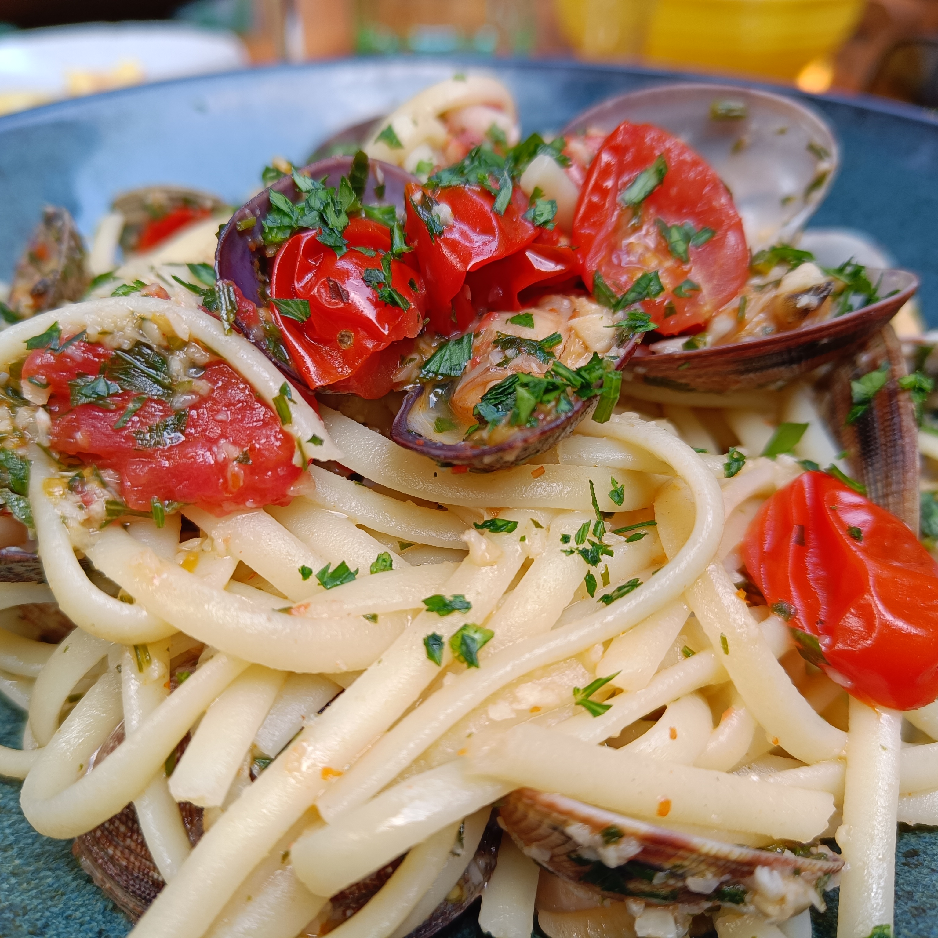 Luguini aux palourdes: pâtes sur cuites et tellement d’ails que l’on ne sent plus le goût des palourdes! Dommages ! Service impeccable mais salle très bruyante. Bof.