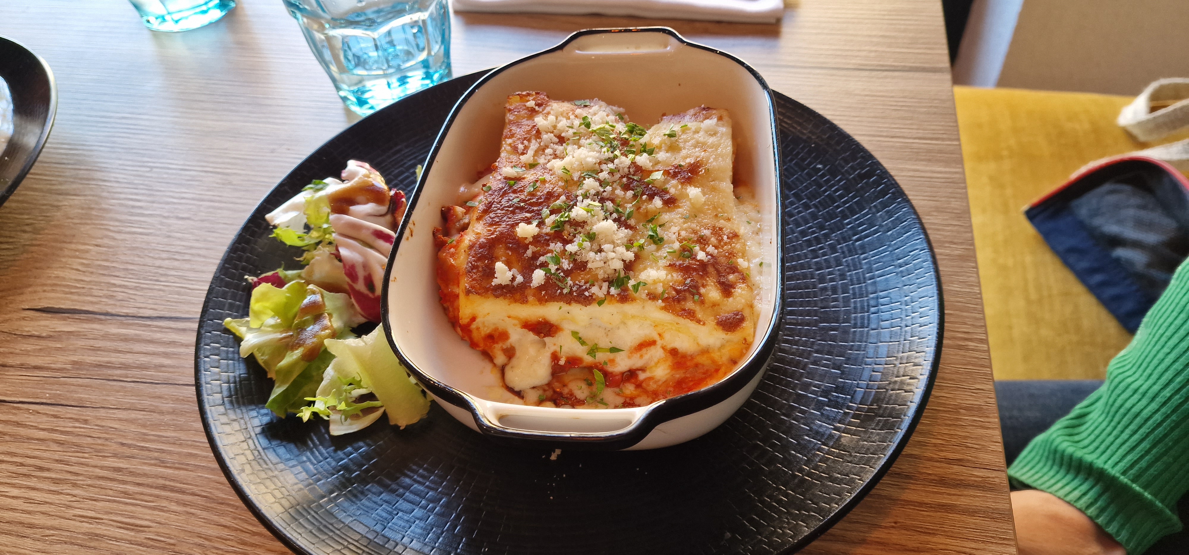 Nous avons pris les pâtes carbonara très bonnes mais vraiment en petites quantités et les lasagnes idem très bonnes mais petite portion. Le cadre est joli et le service sympathique. Rapport qualité quantite/prix trop élevé.