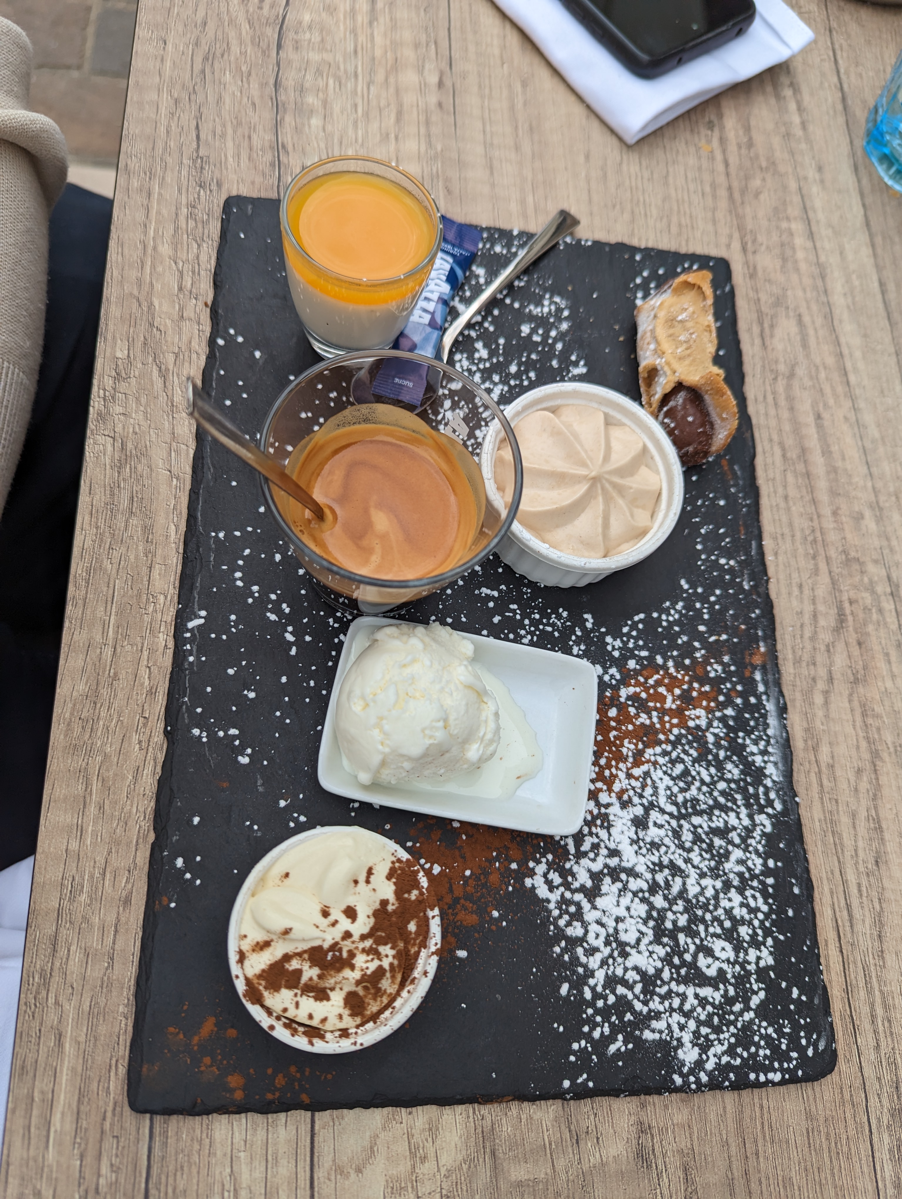 Très bonnes pizzas et douceurs dans le café gourmand ! Tarifs un peu élevés