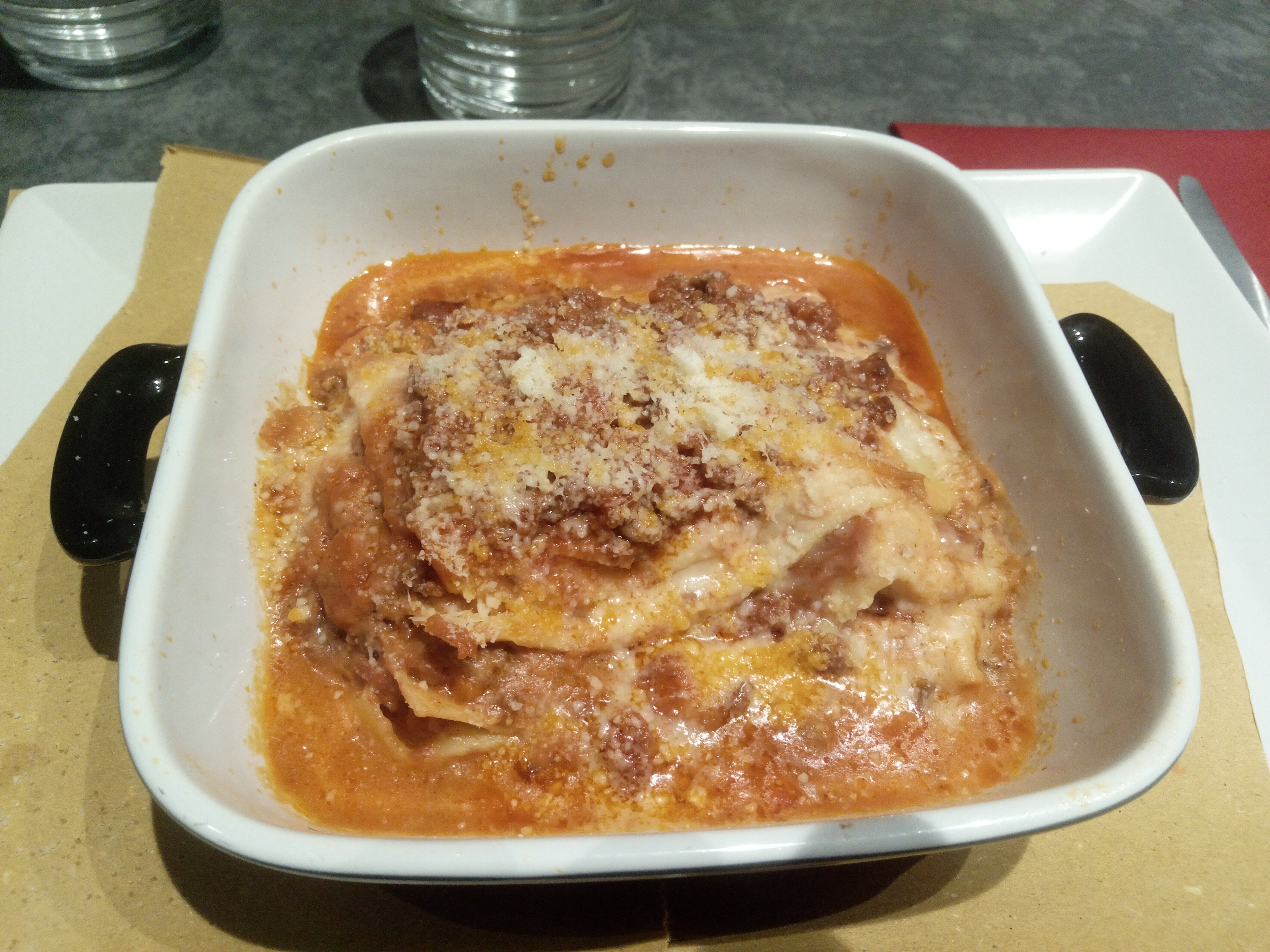 Salade de tomates mozza vraiment peu appétissante. 4 morceaux de tomates de mauvaises qualités coupés très épais avec deux bouts de mozza et 4 olives vert le tout pour 13 euros…. Néanmoins les lasagnes de mon chéri étaient très bonnes C’est dommage