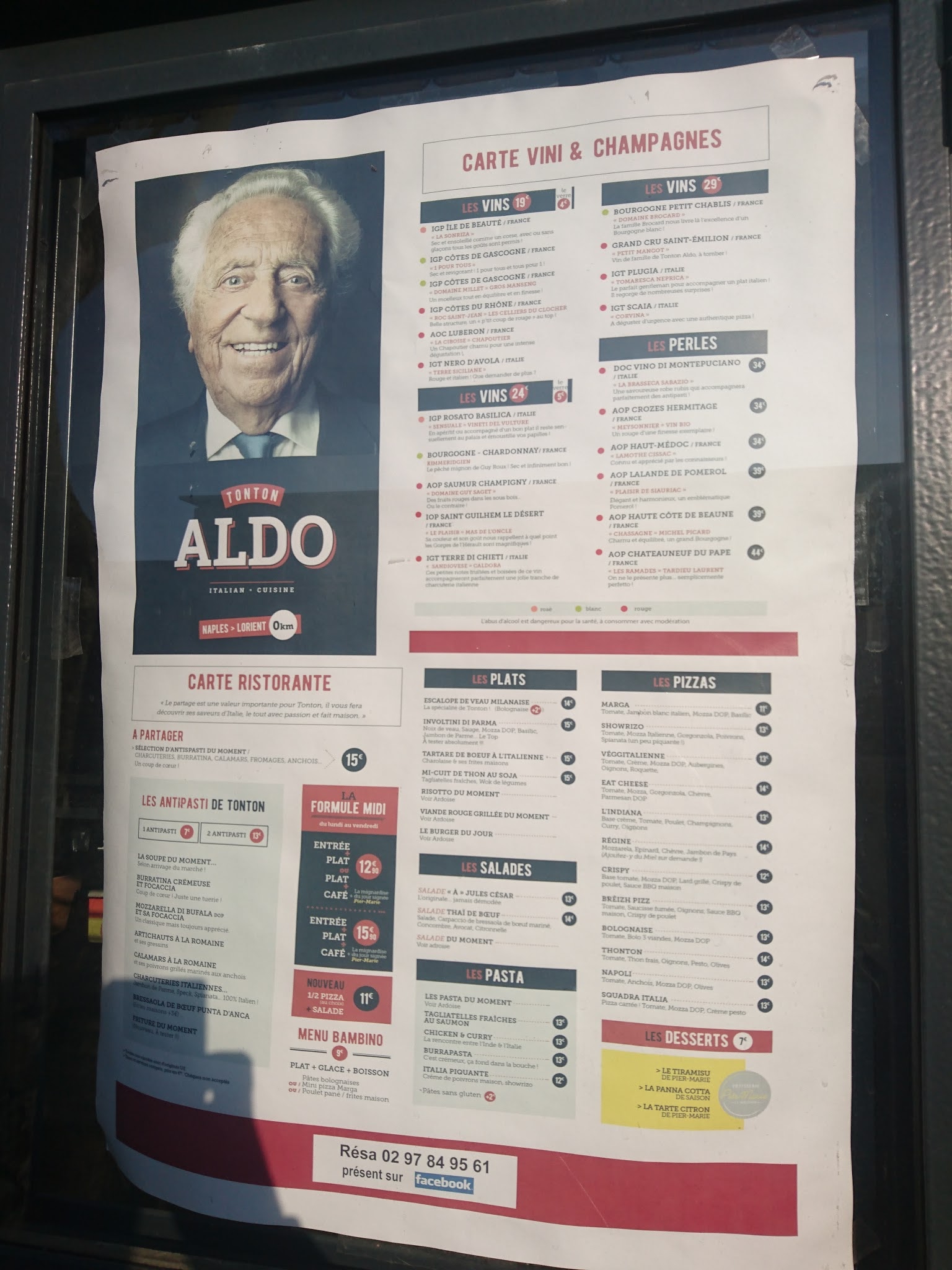Merci a Tonton Aldo et surtout toute son équipe pour ce moment en famille... Les serveurs, très agréables, souriants, à l'écoute, de bons conseils... Une cuisine super, des pizzas excellentes, et des plats au top!! Nous reviendront pour tester d'autres plats :) A bientôt