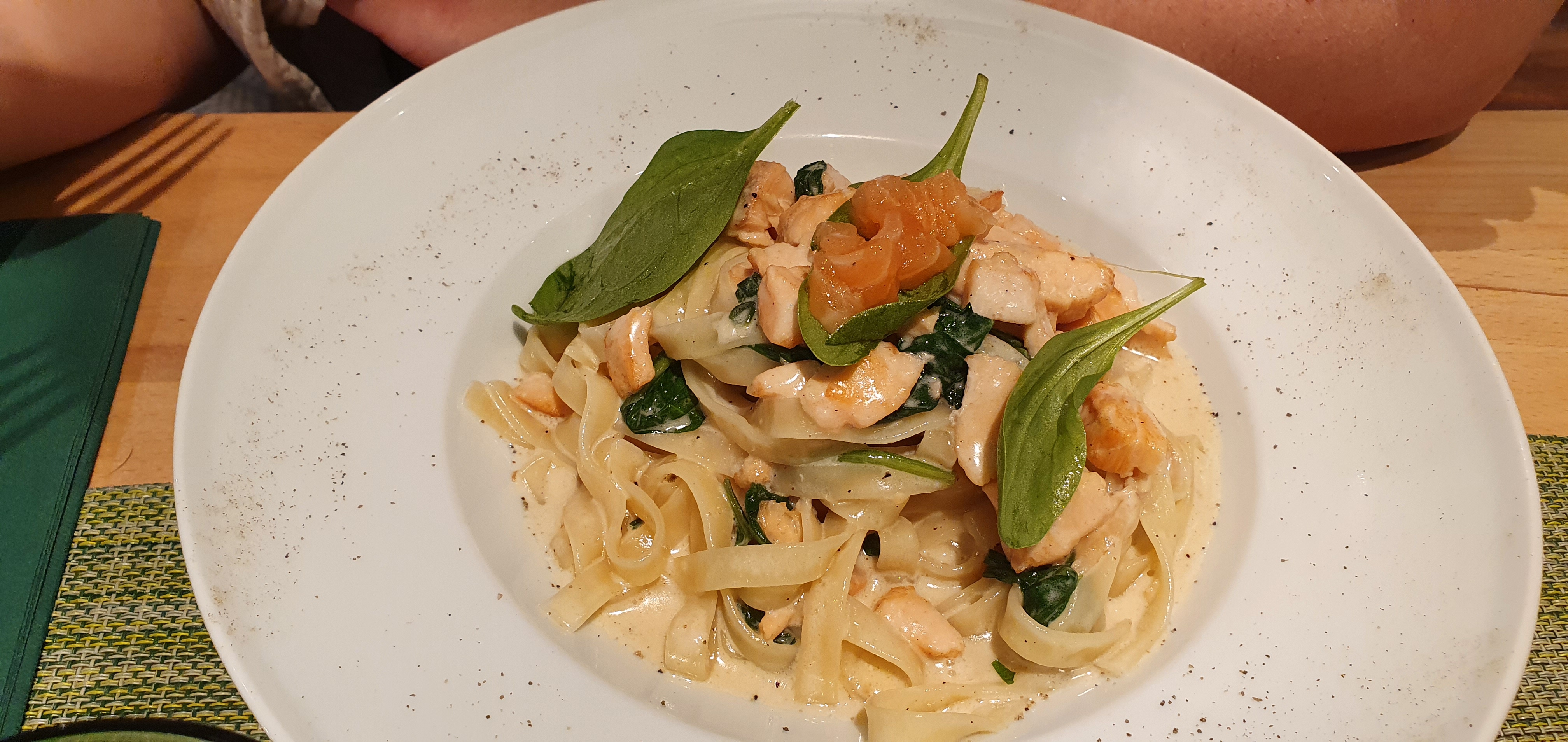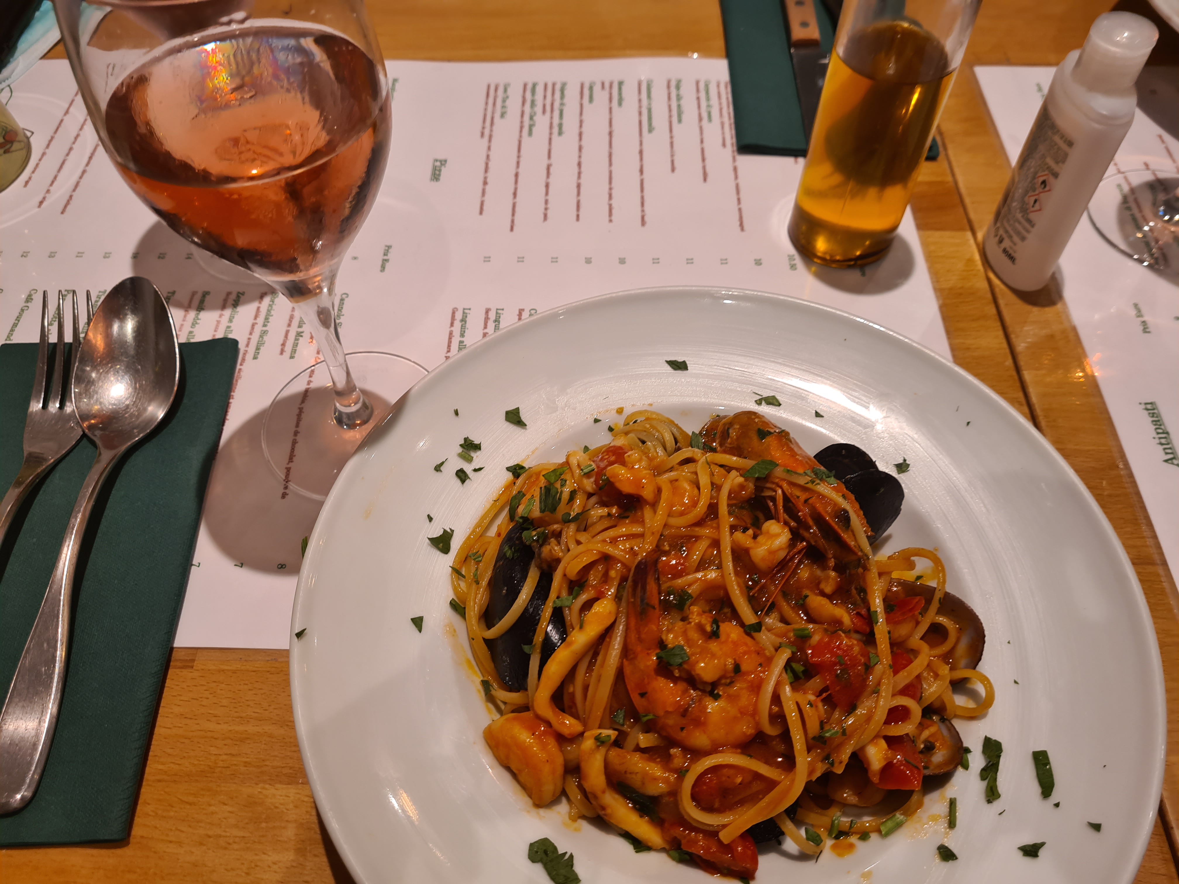 Restaurant très sympa! Cela faisait longtemps que je n’avais pas mangé de pâte et celles à langoustine sont délicieuse! Très copieux. Bémol : la pâte à pizza qui pour le coup n’était pas de notre goût et de la texture que nous aimons (après ça reste bon bien sûr)