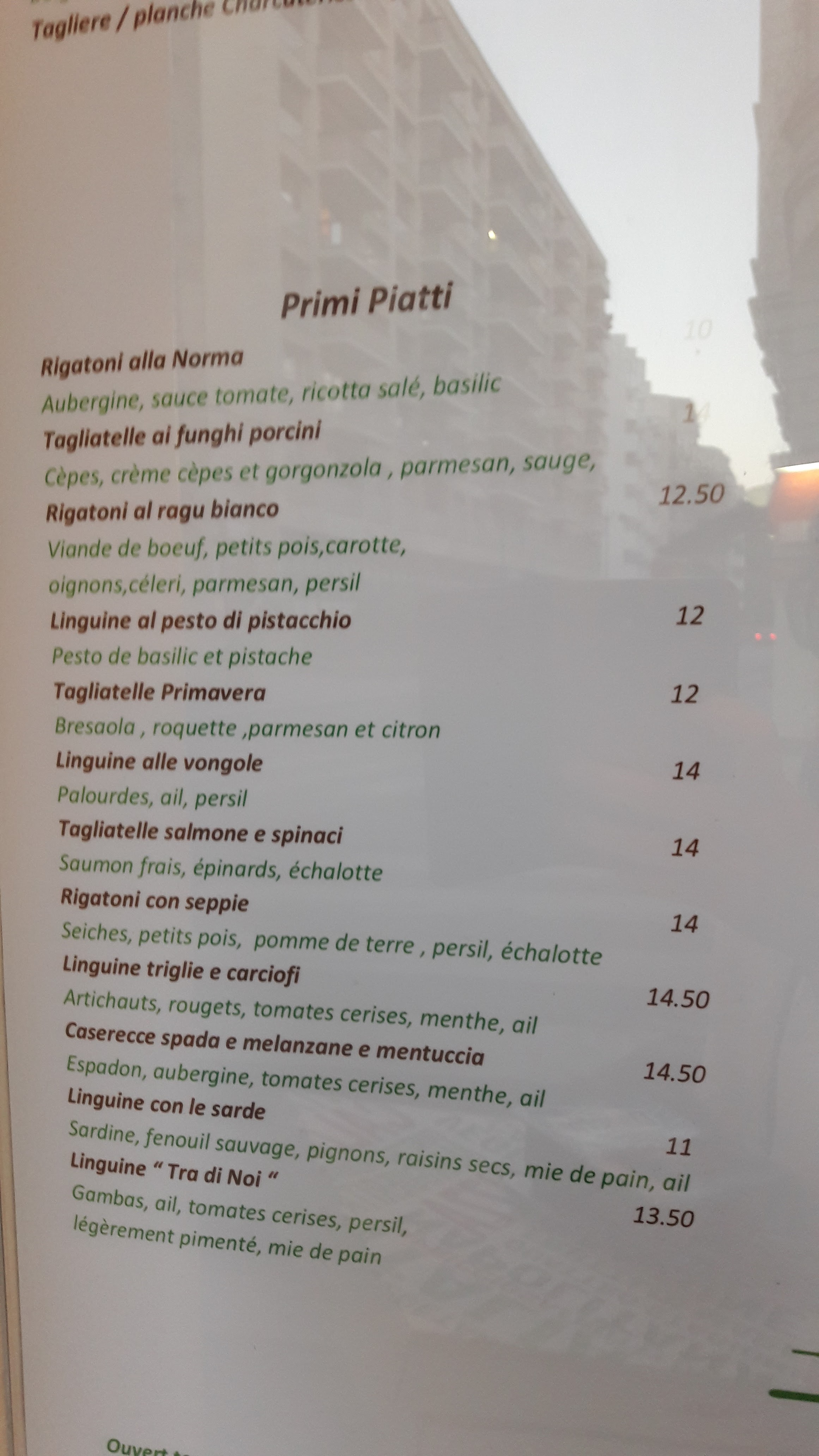 Eh bien après de très nombreux passages chez Tra di Noi depuis l’ouverture il y a maintenant quelques années, la qualité descend dangereusement… Je mets 3 étoiles ce soir parce que je sais que la maison sait faire de la très grande qualité, comme au début. Faut se ressaisir…