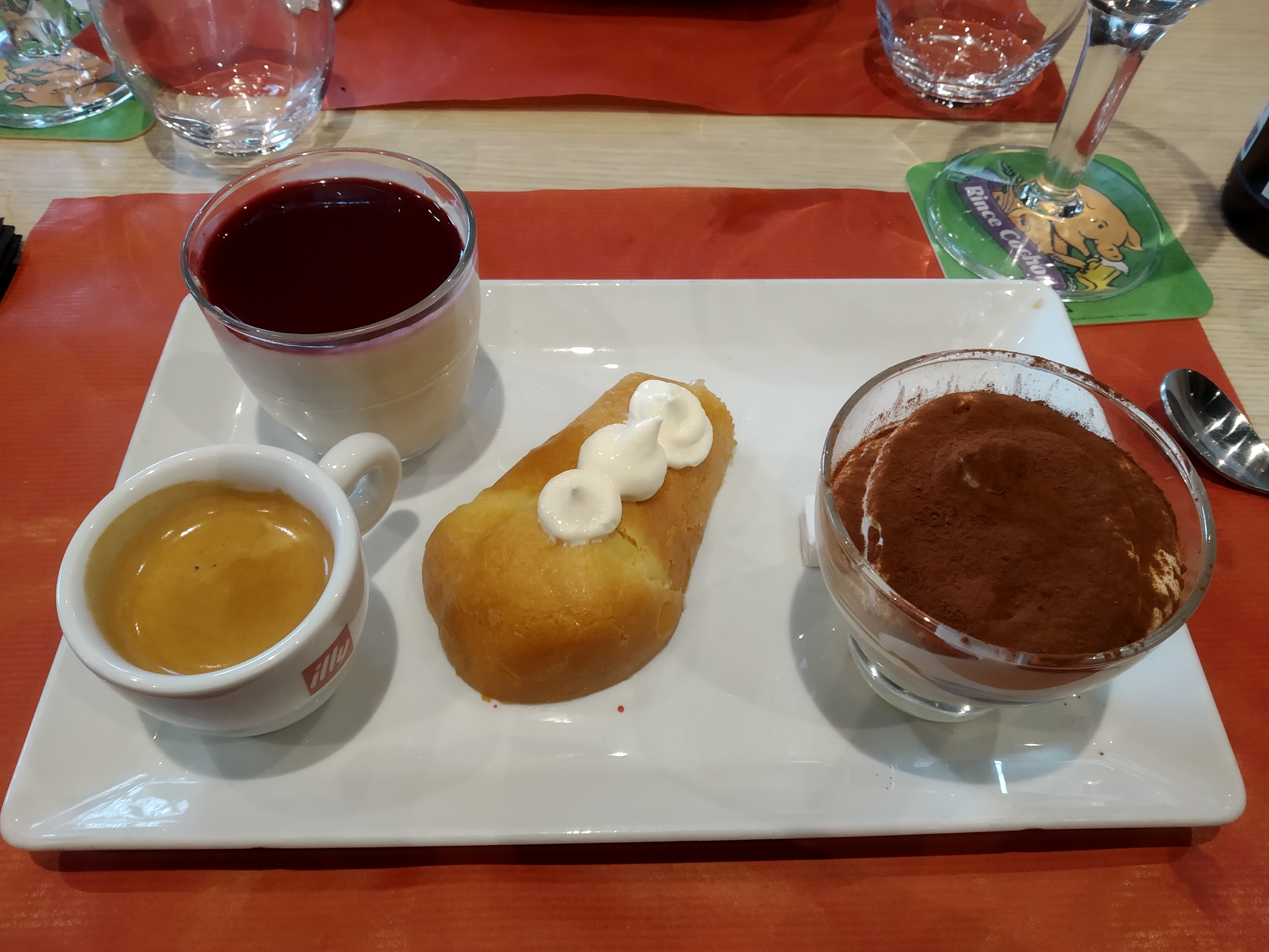 Des plats italiens variés, j'adore la pizza Gamberetti à base de gambas, desserts et vins.... Tout est de qualité