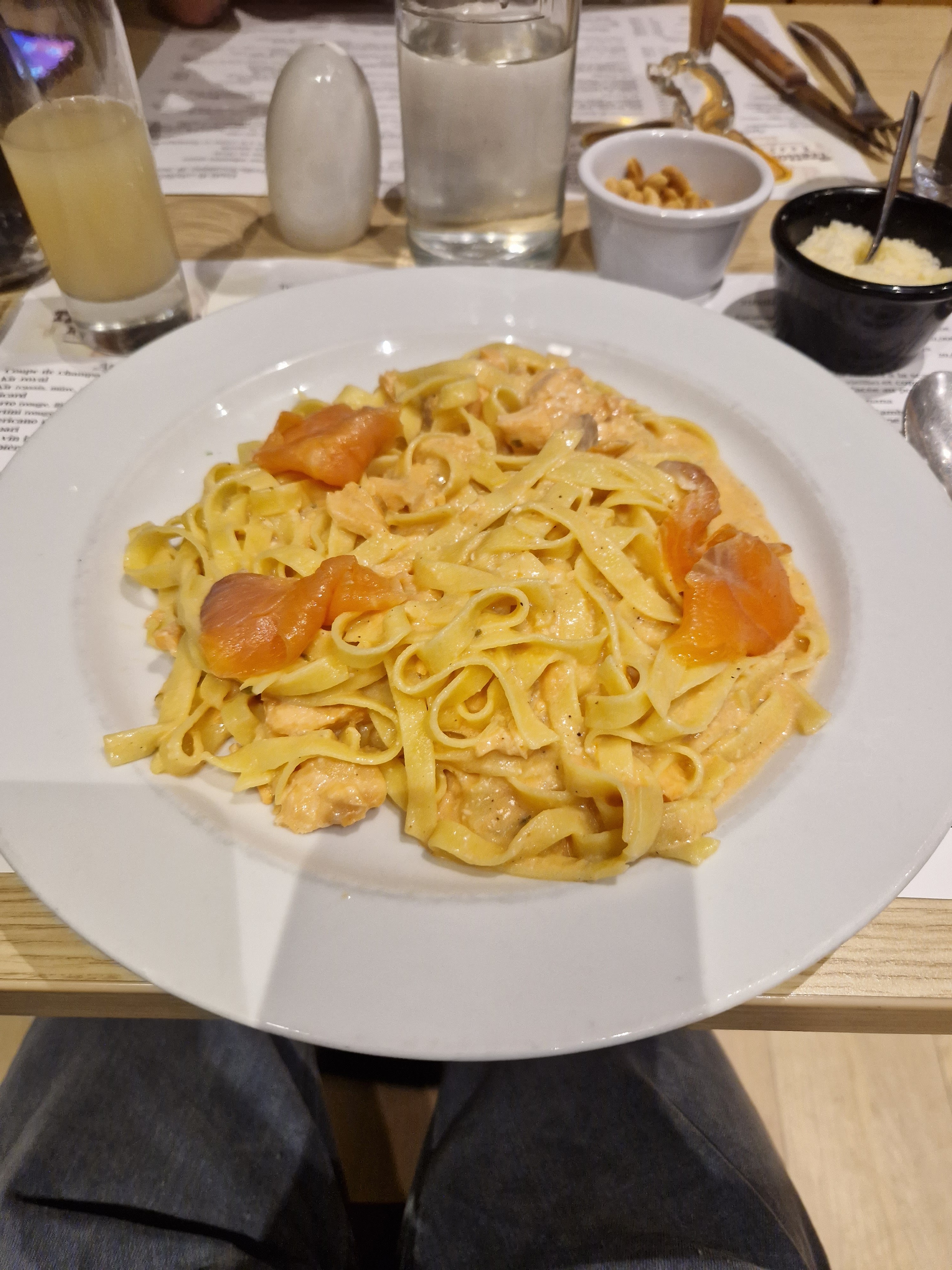 Les pâtes Carbonara à l'italienne sont excellentes. Chapeau bas aux cuistos ! Par contre il aura fallu patienter un peu plus de 40min pour être servi mais ça valait vraiment la peine.