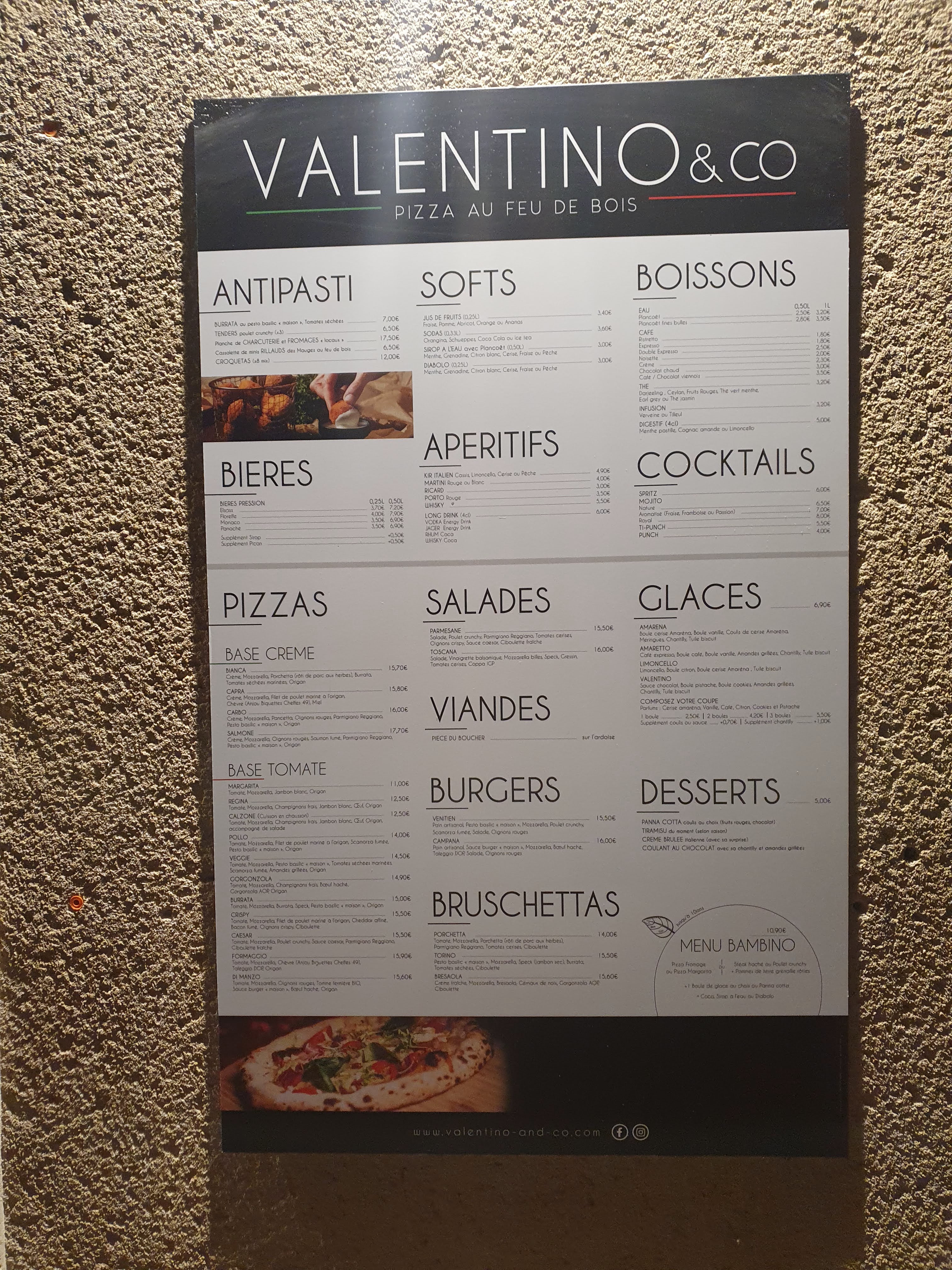 Pizzeria sympathique tarif honnête quelques marques pas de carte des vins donc pas de prix de même pour les plats annexes pas de couteaux spécial pizza dommage