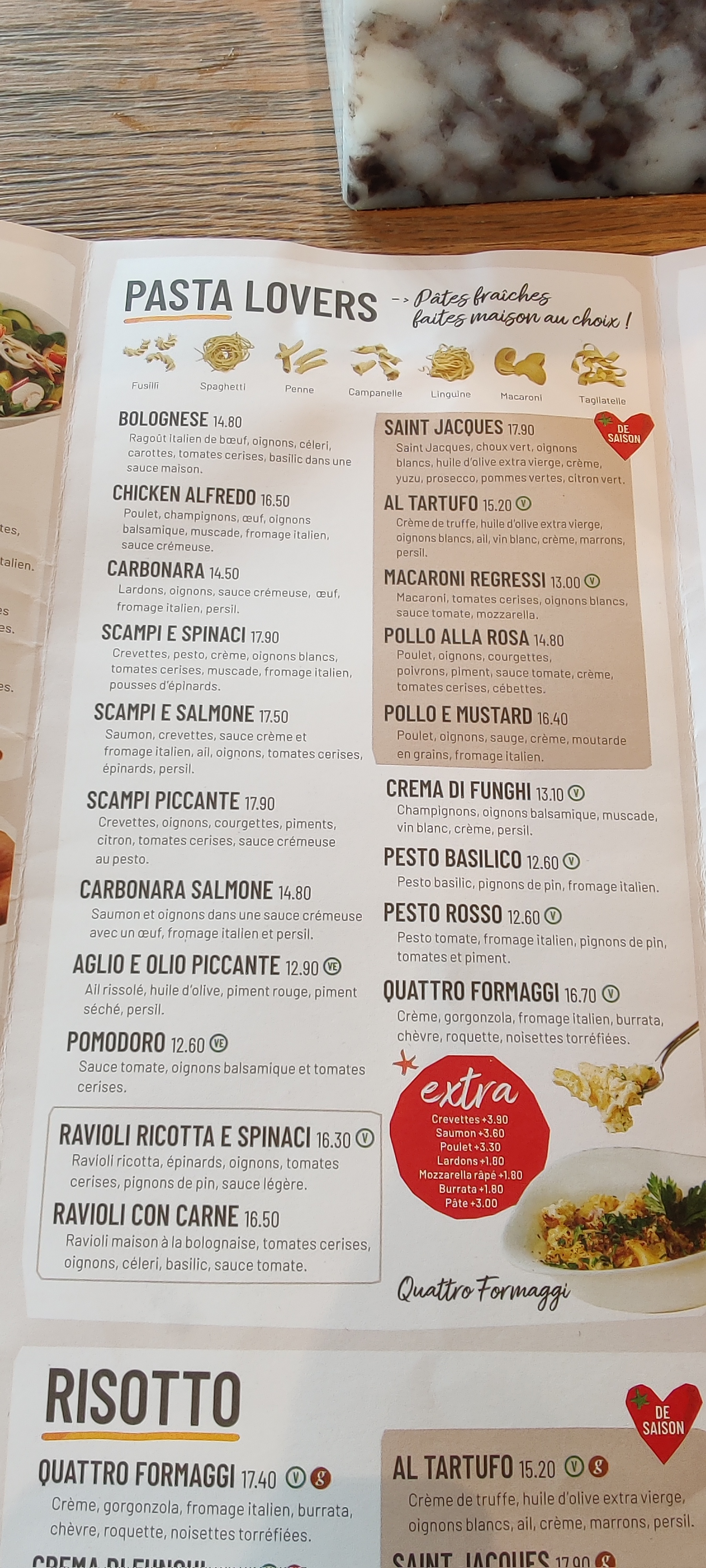 Plats très bons, carte variée prix un peu cher pour des pâtes et quantité du menu enfant trop légère.